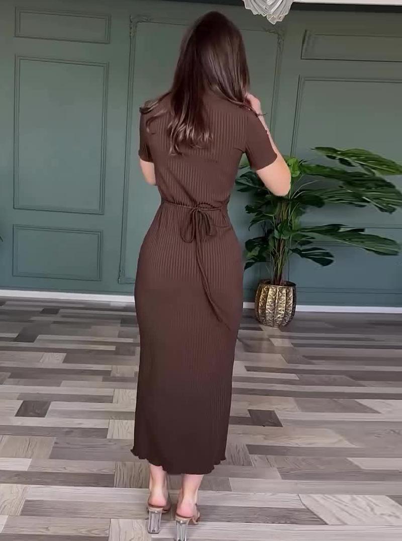 Otoño 2024 Nuevo jersey de punto de cuello redondo transfronterizo de Amazon europeo y americano para mujer, jersey de manga corta ajustado para mujer