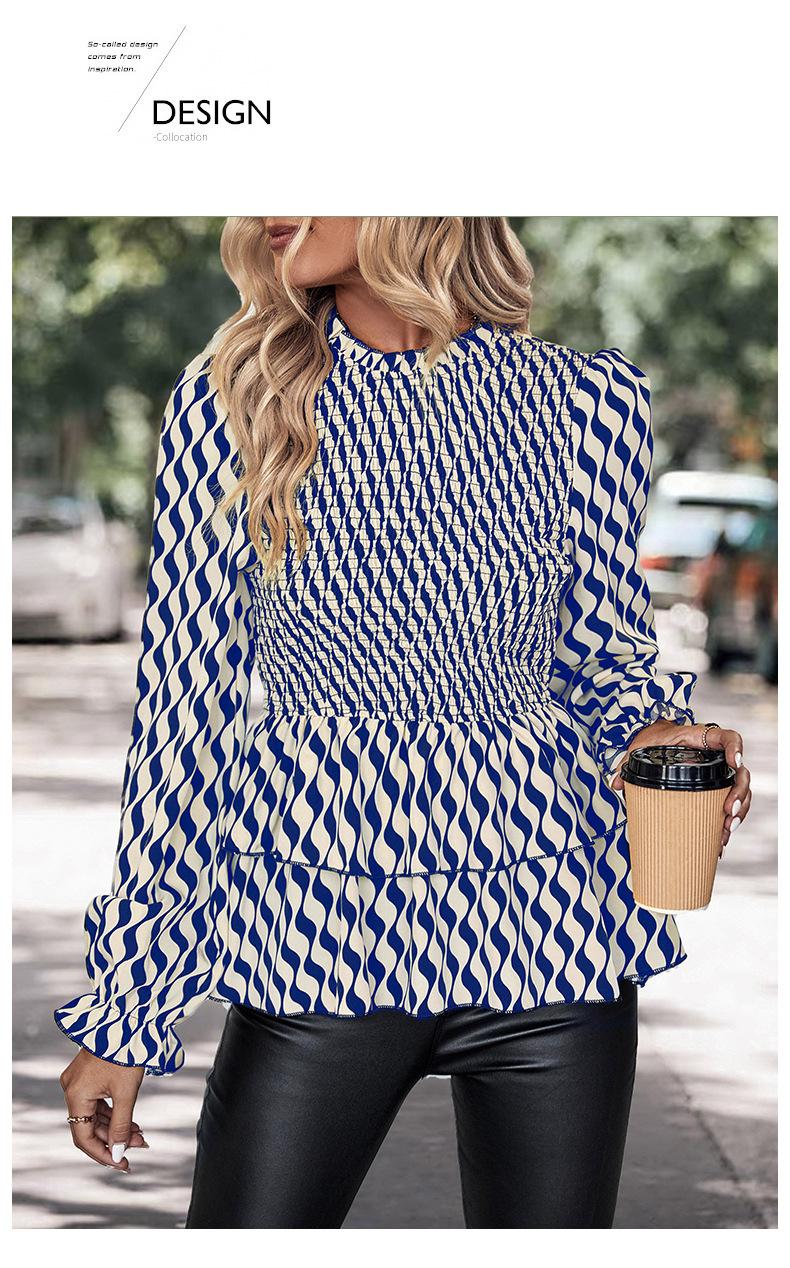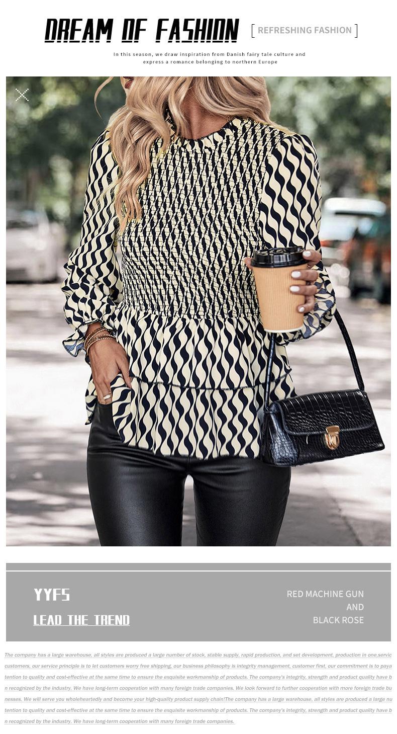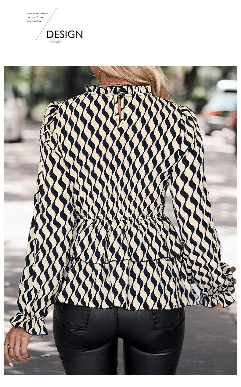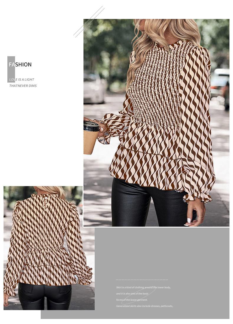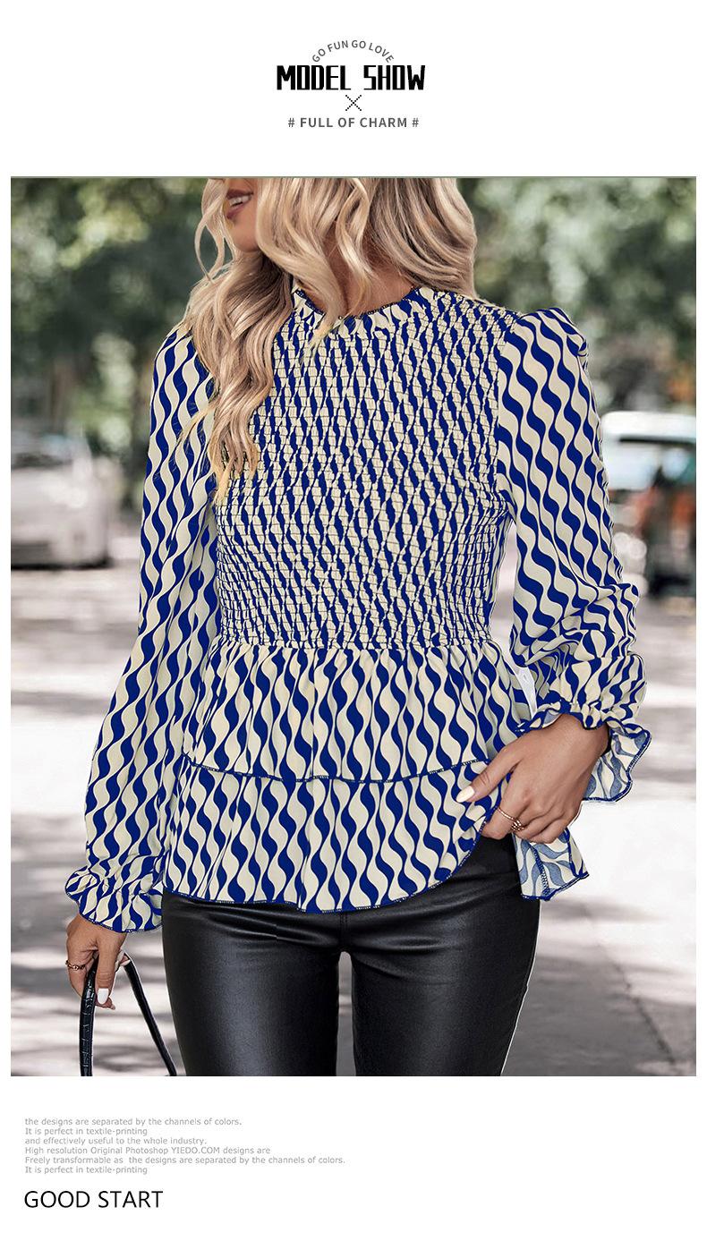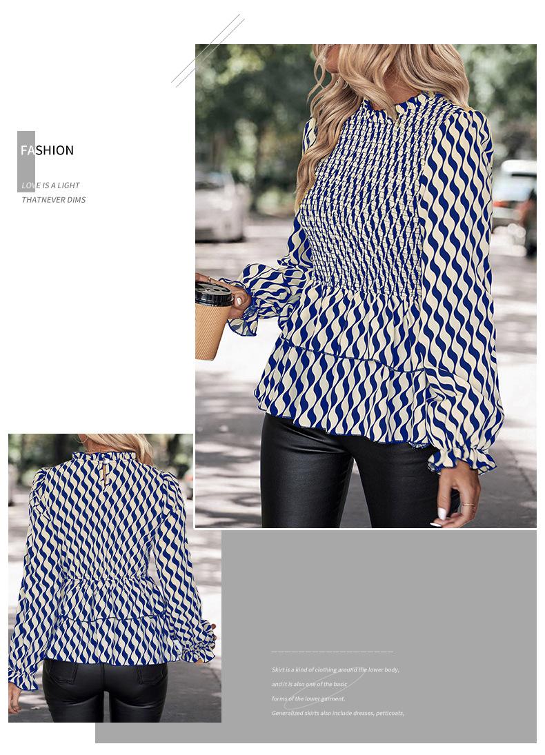 Camisa de manga larga con estampado de ondas transfronterizo para mujer, nueva camisa de otoño europea y americana de Amazon Independent Station 2024