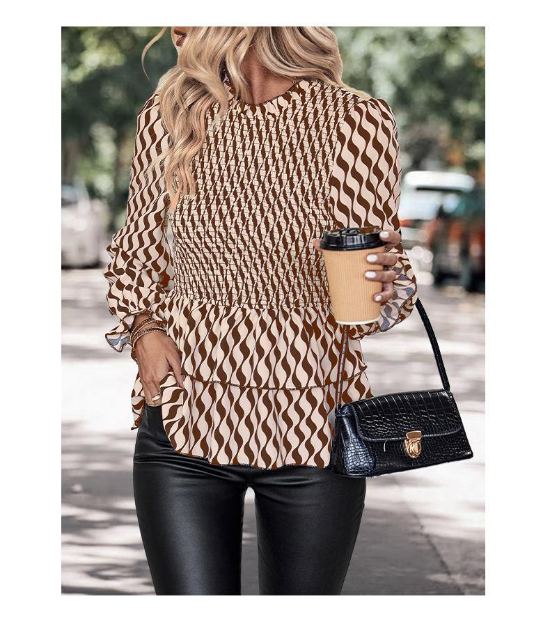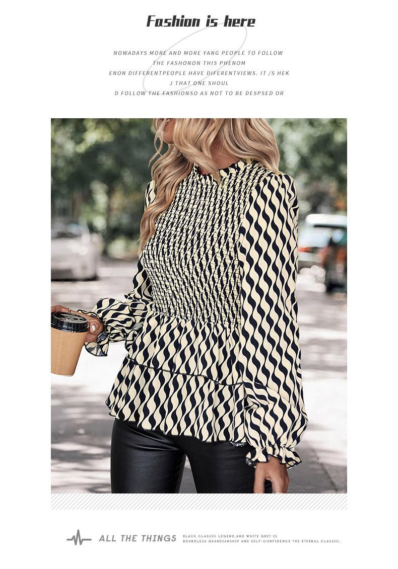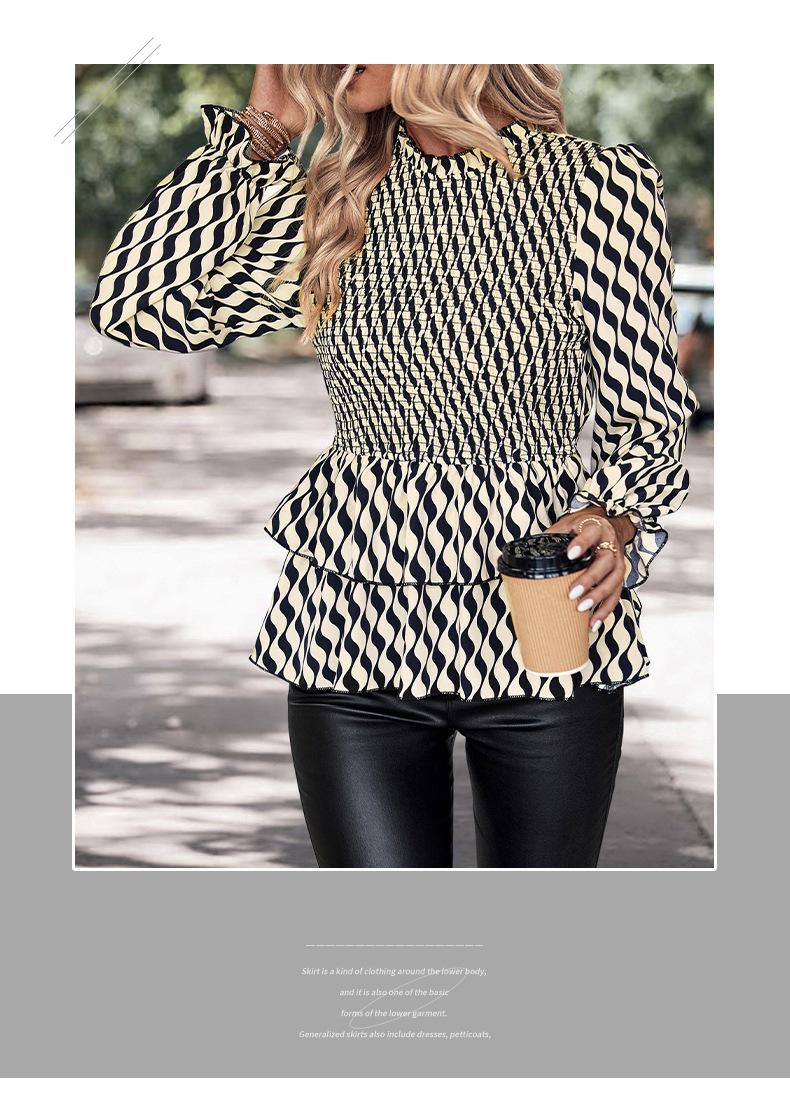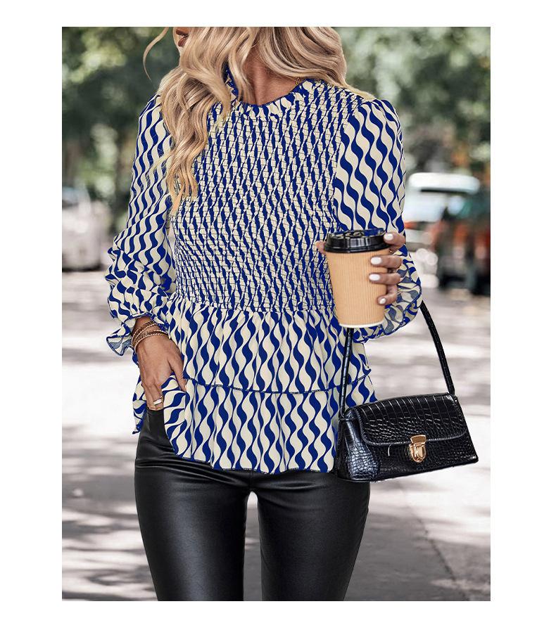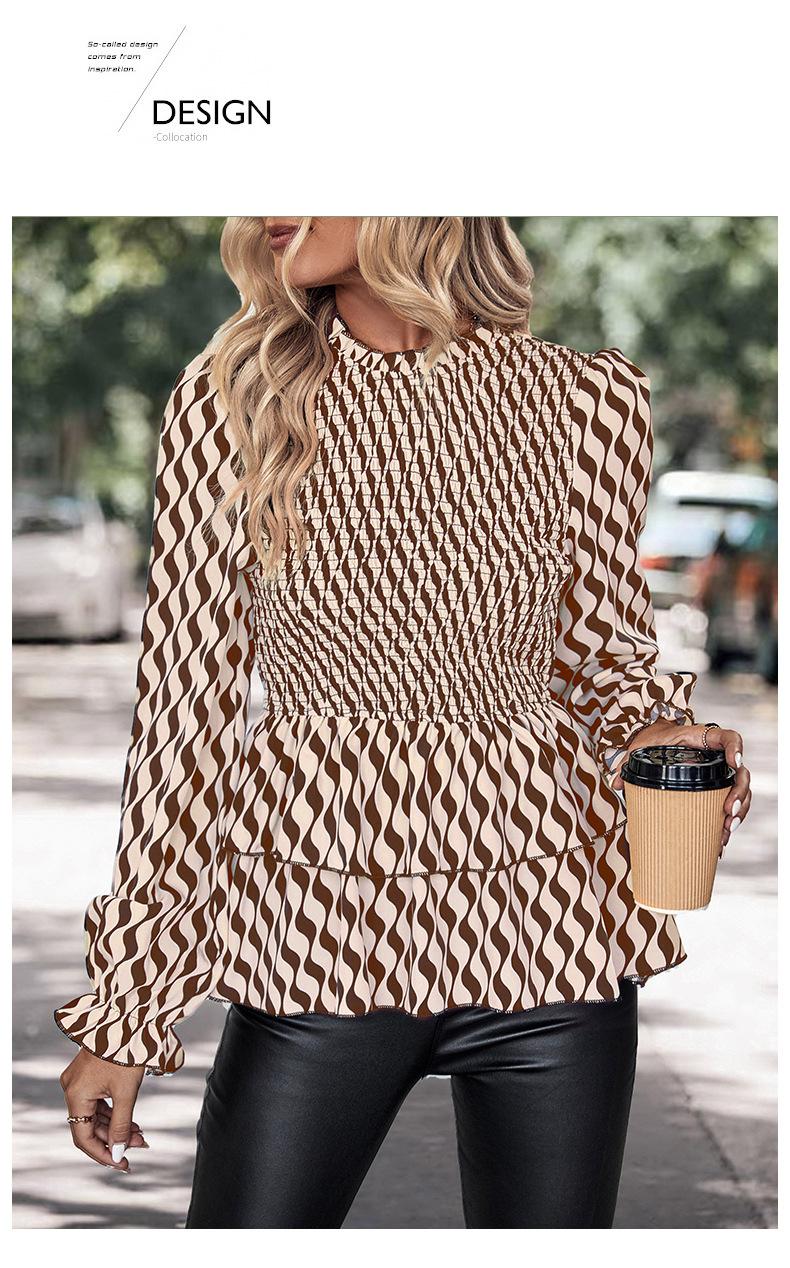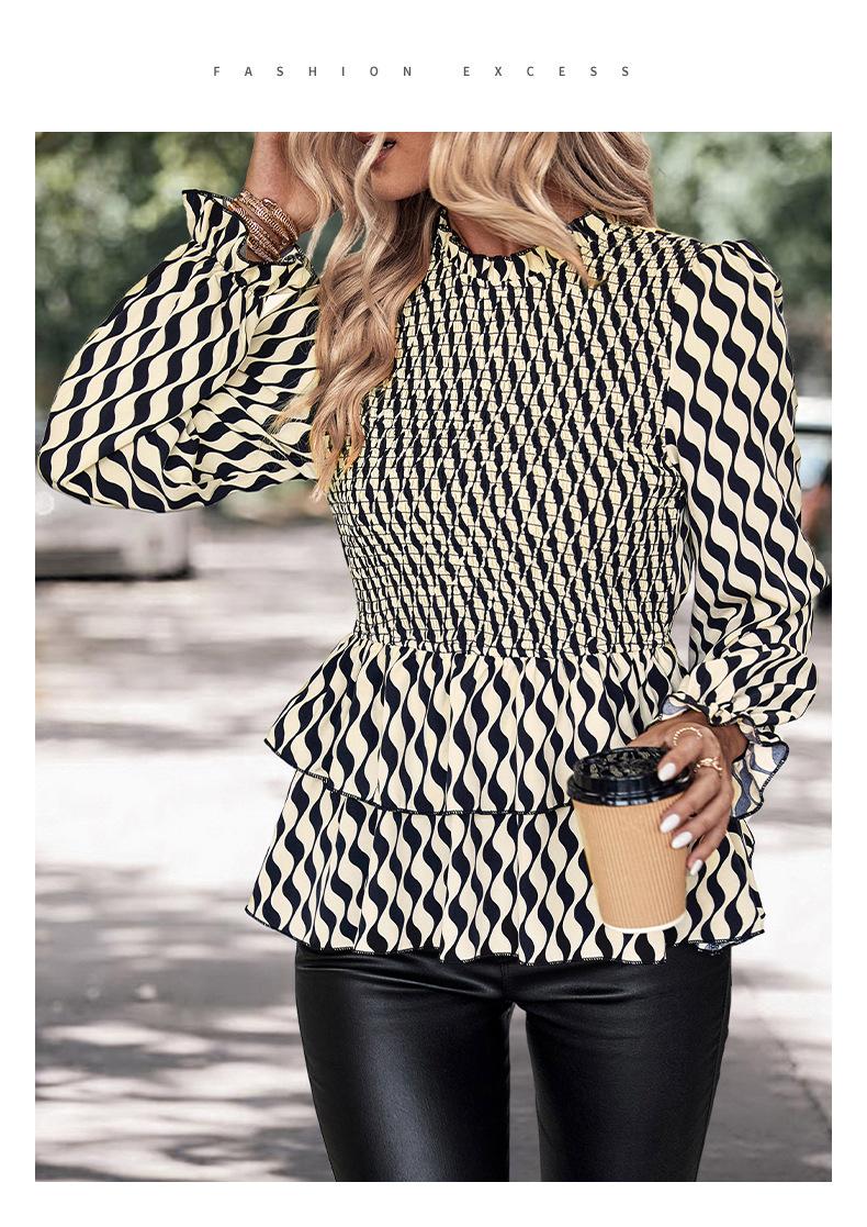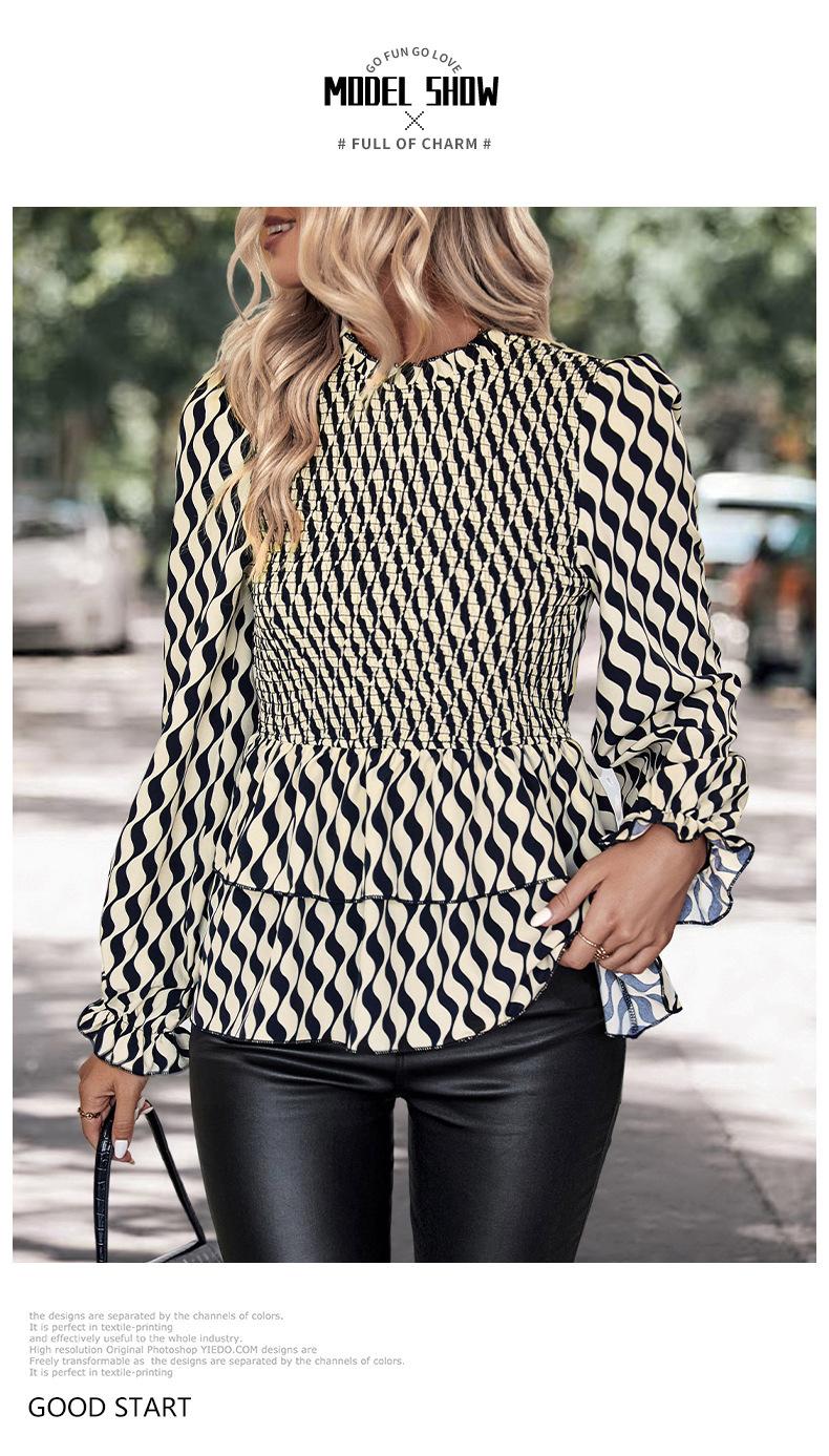 Camisa de manga larga con estampado de ondas transfronterizo para mujer, nueva camisa de otoño europea y americana de Amazon Independent Station 2024