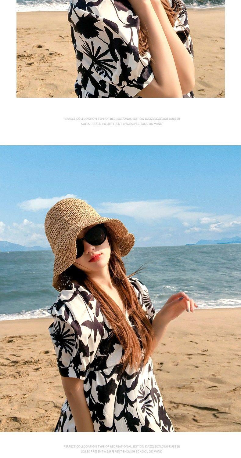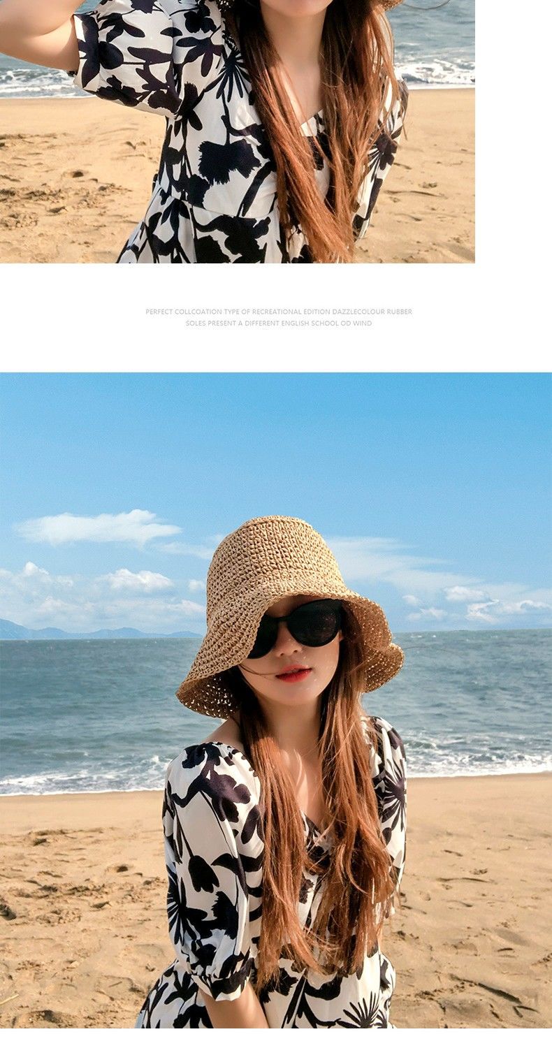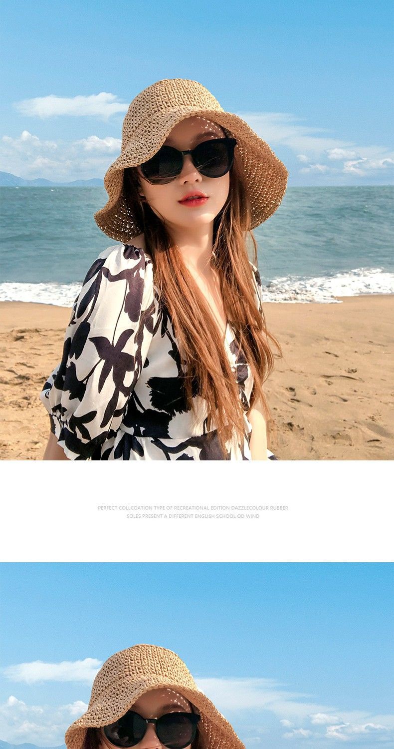 BOW ~ Sombrero de pescador hecho a mano de estilo coreano, sombrero de paja de ala grande para mujer, sombrero versátil de verano para playa y playa, sombrero para el sol con protección solar.
