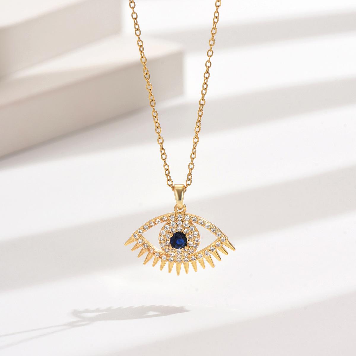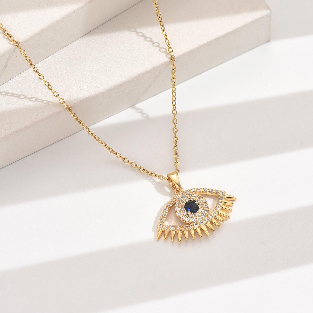 Colgante de cobre y circonita transfronteriza, collar de cobre con ojo malvado para mujer, cadena de clavícula, joyería