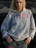 Sudadera con capucha de otoño e invierno para mujer, con estampado de letras, moderna, versátil, casual, talla grande, holgada, con forro polar.