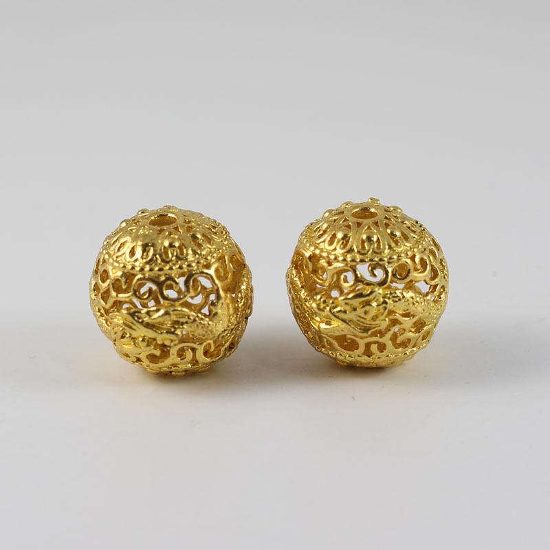 [Nombre] Bola de dragón hueca de latón 18 mm cobre pan dragón cuenta redonda grande accesorios para pulsera Bodhi Vajra
