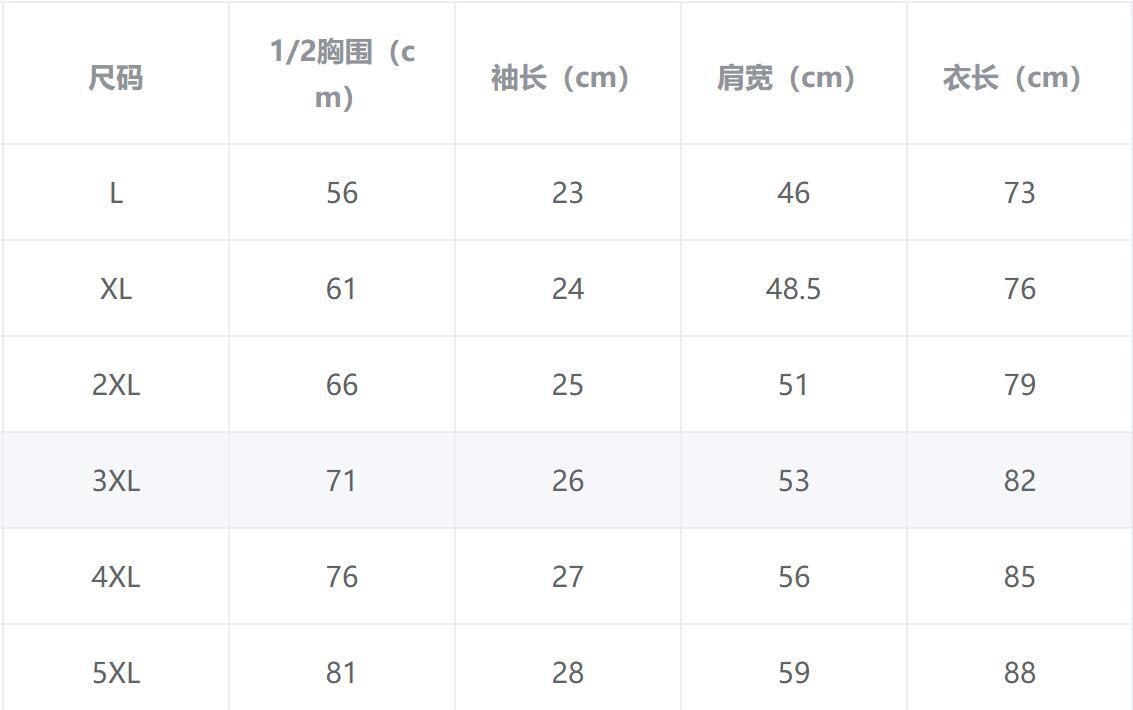 L, XL, 2XL, 3XL, 4XL, 5XL