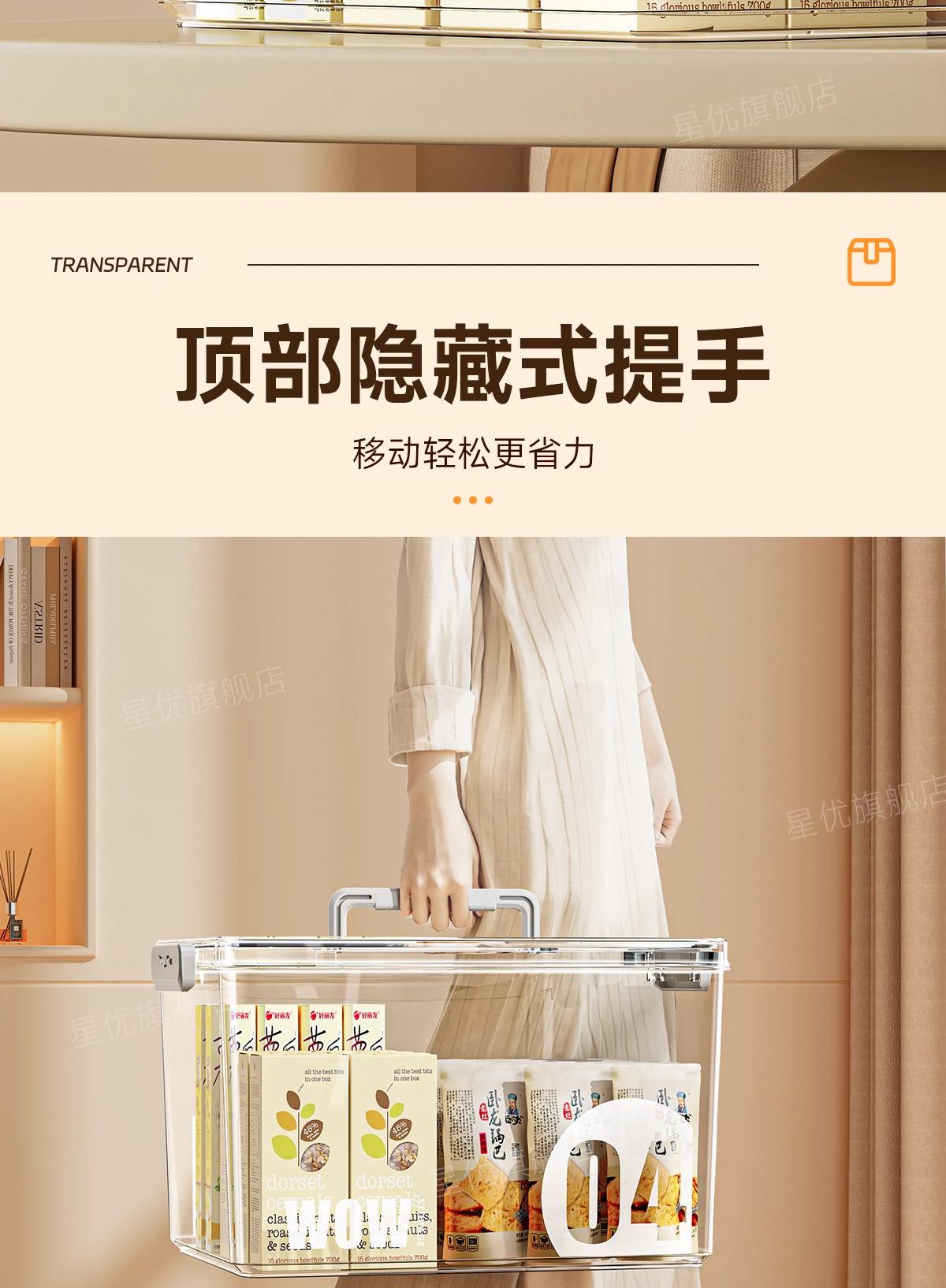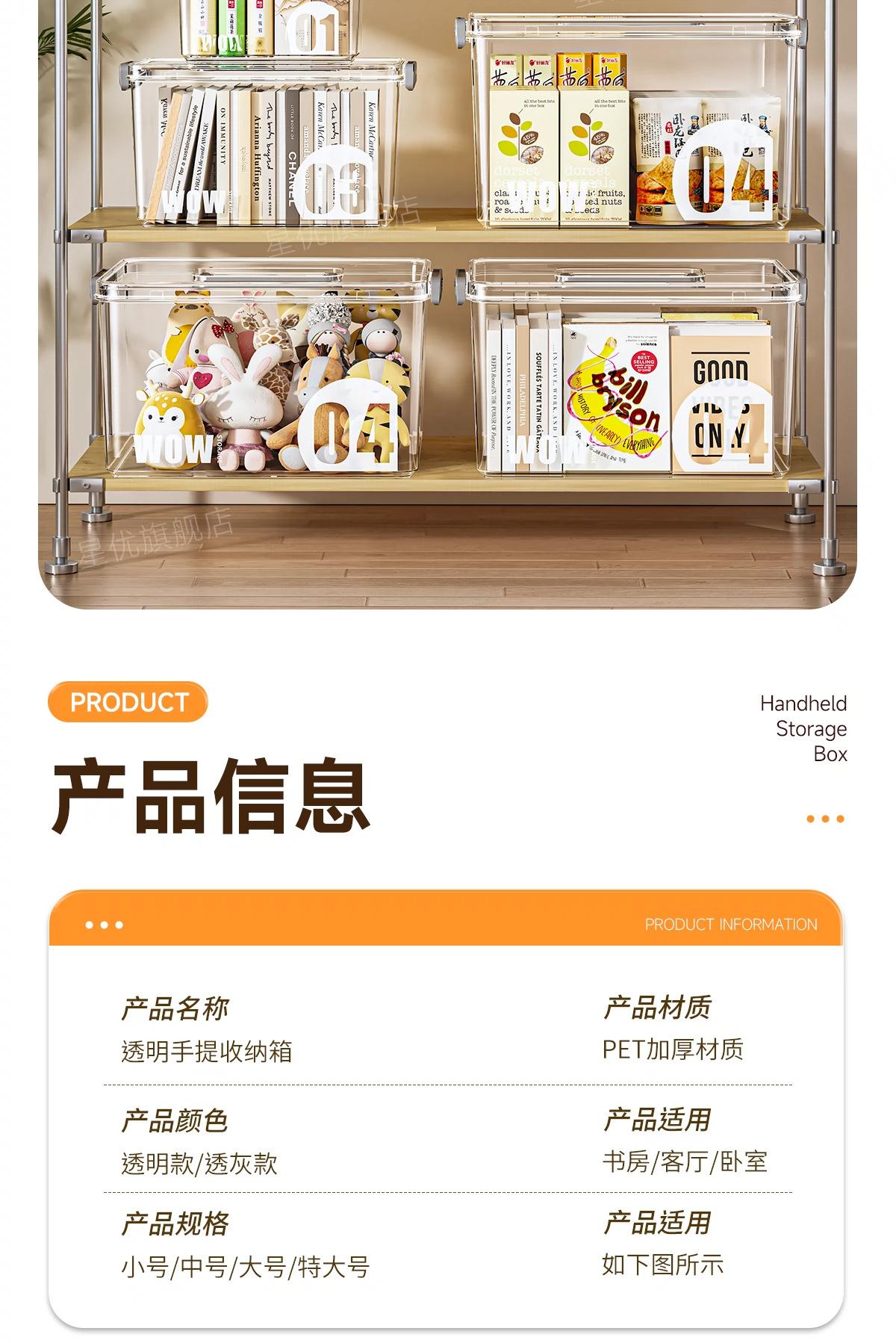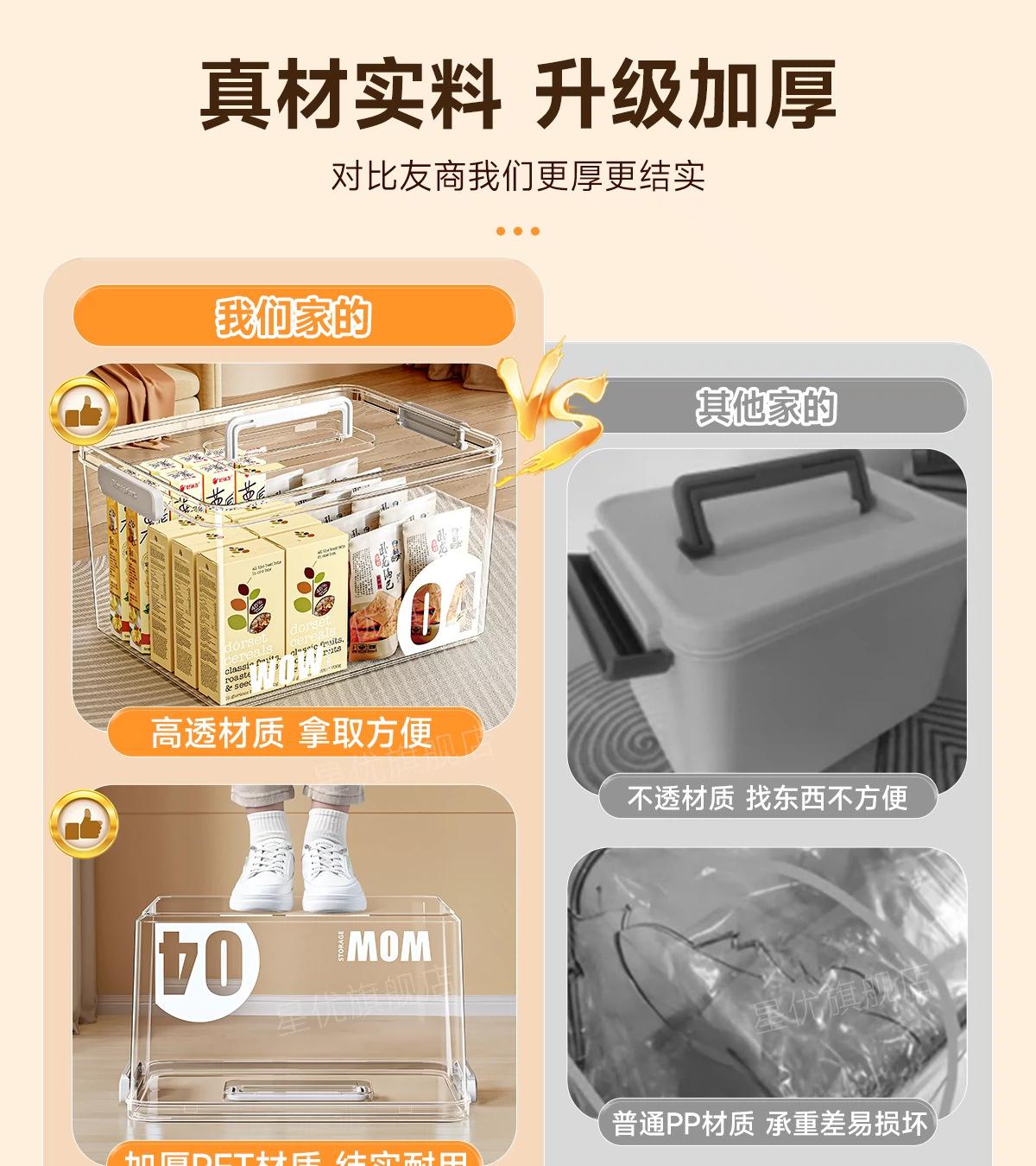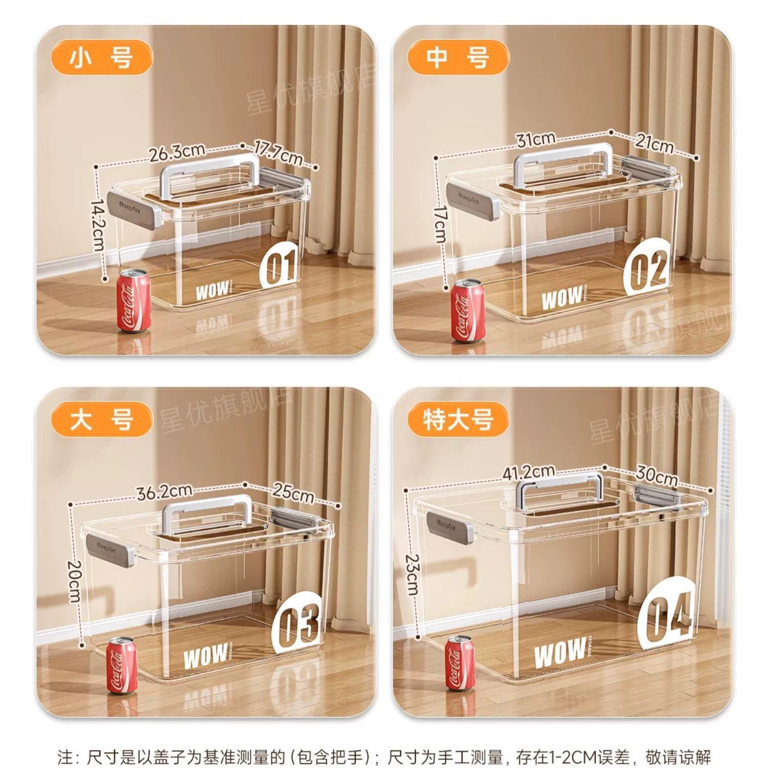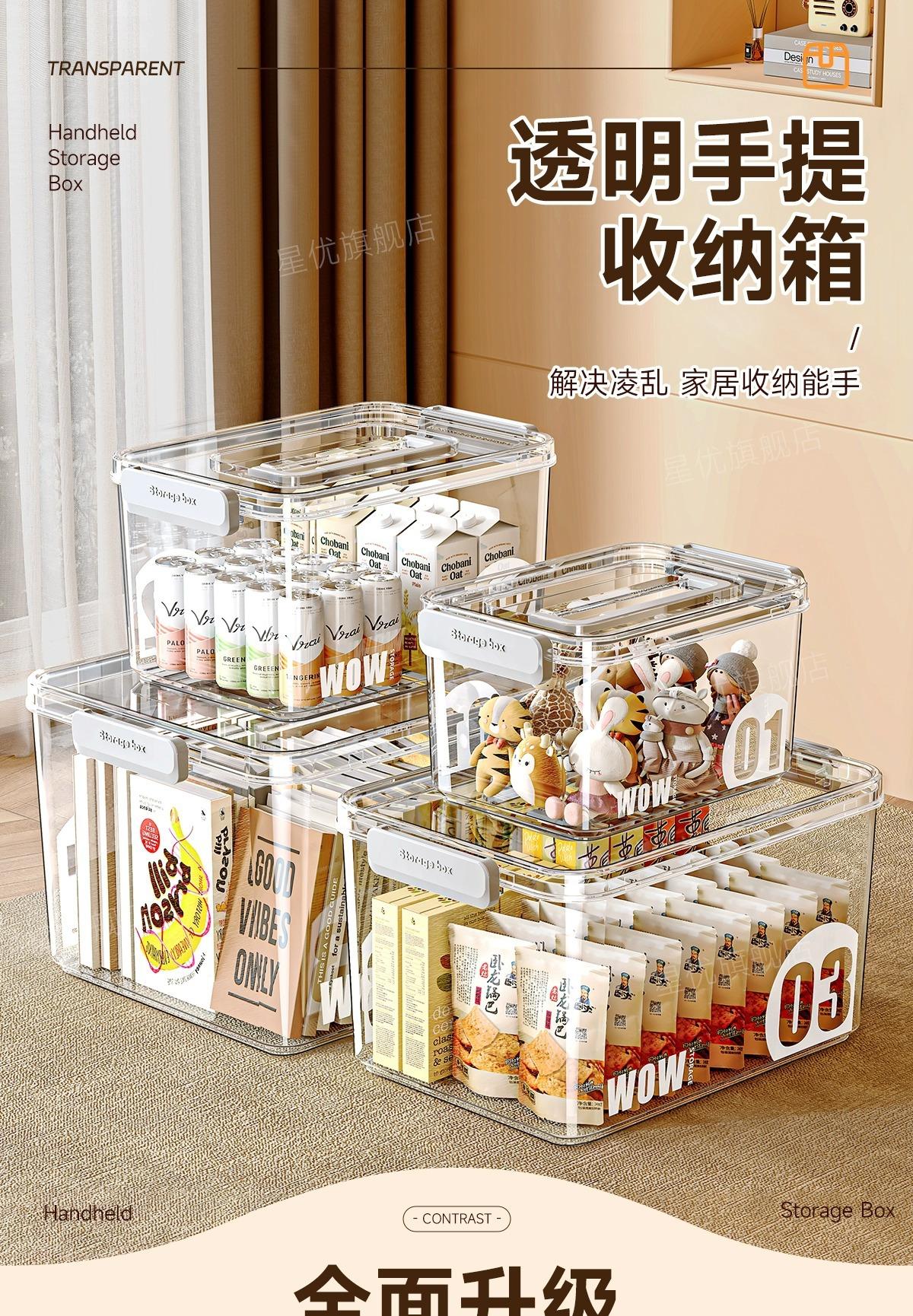 Caja de almacenamiento portátil transparente de gran capacidad, gruesa, para refrigerios, juguetes y artículos diversos, con tapa a prueba de polvo.