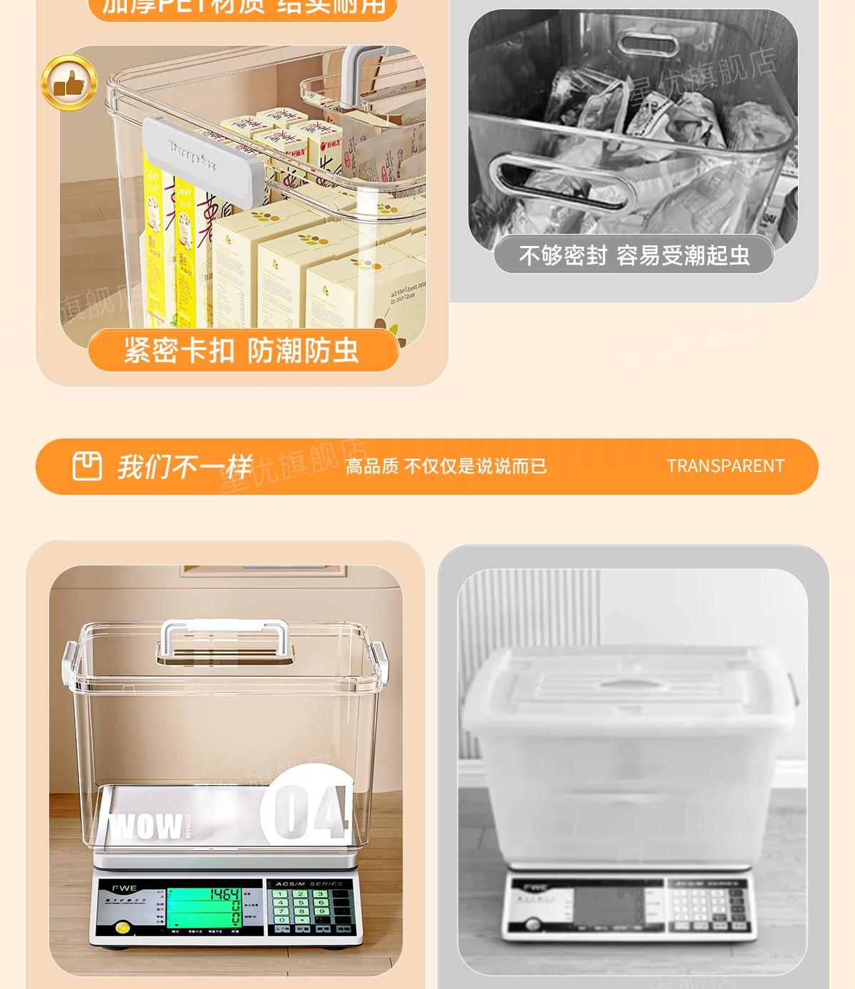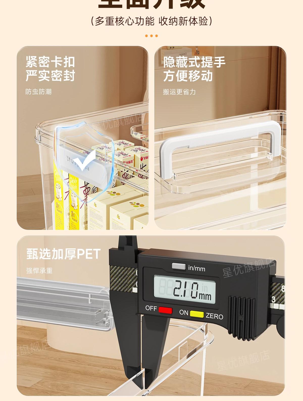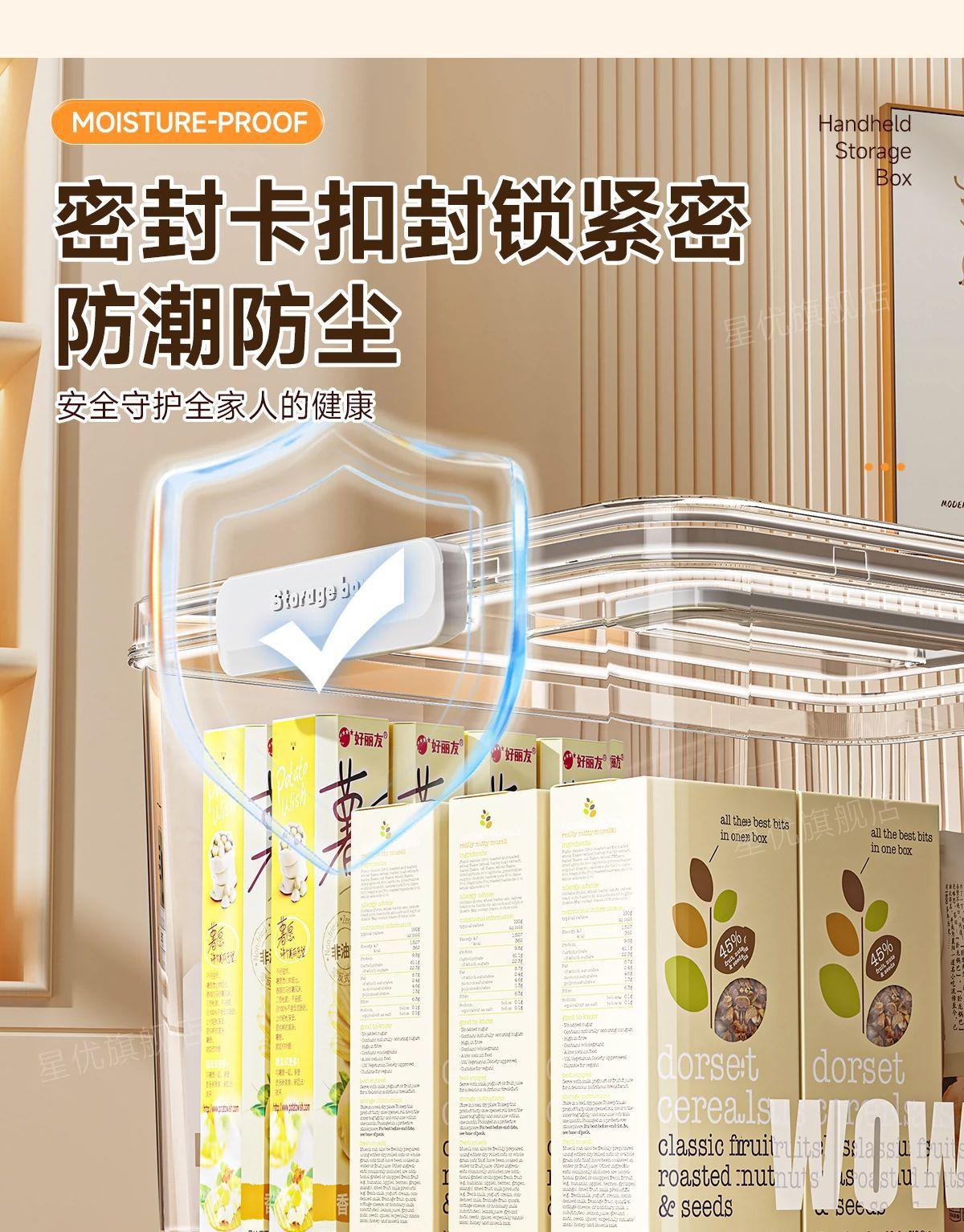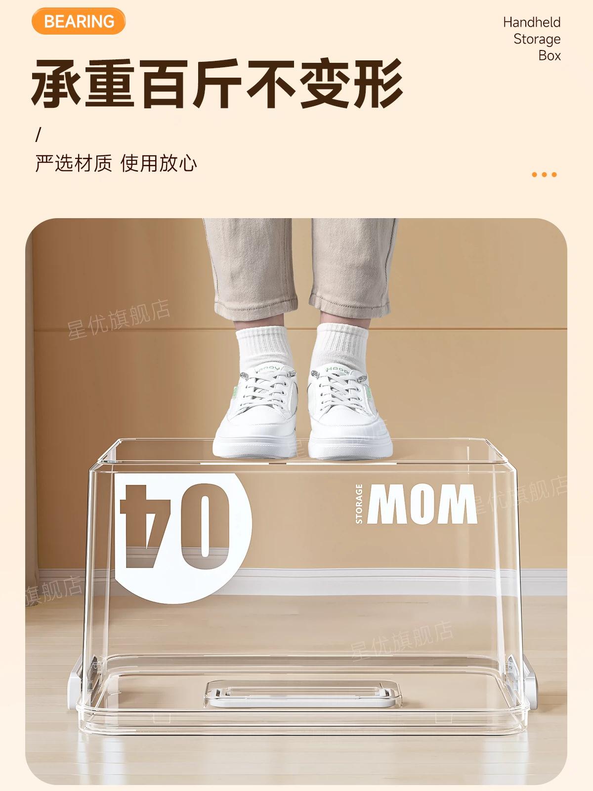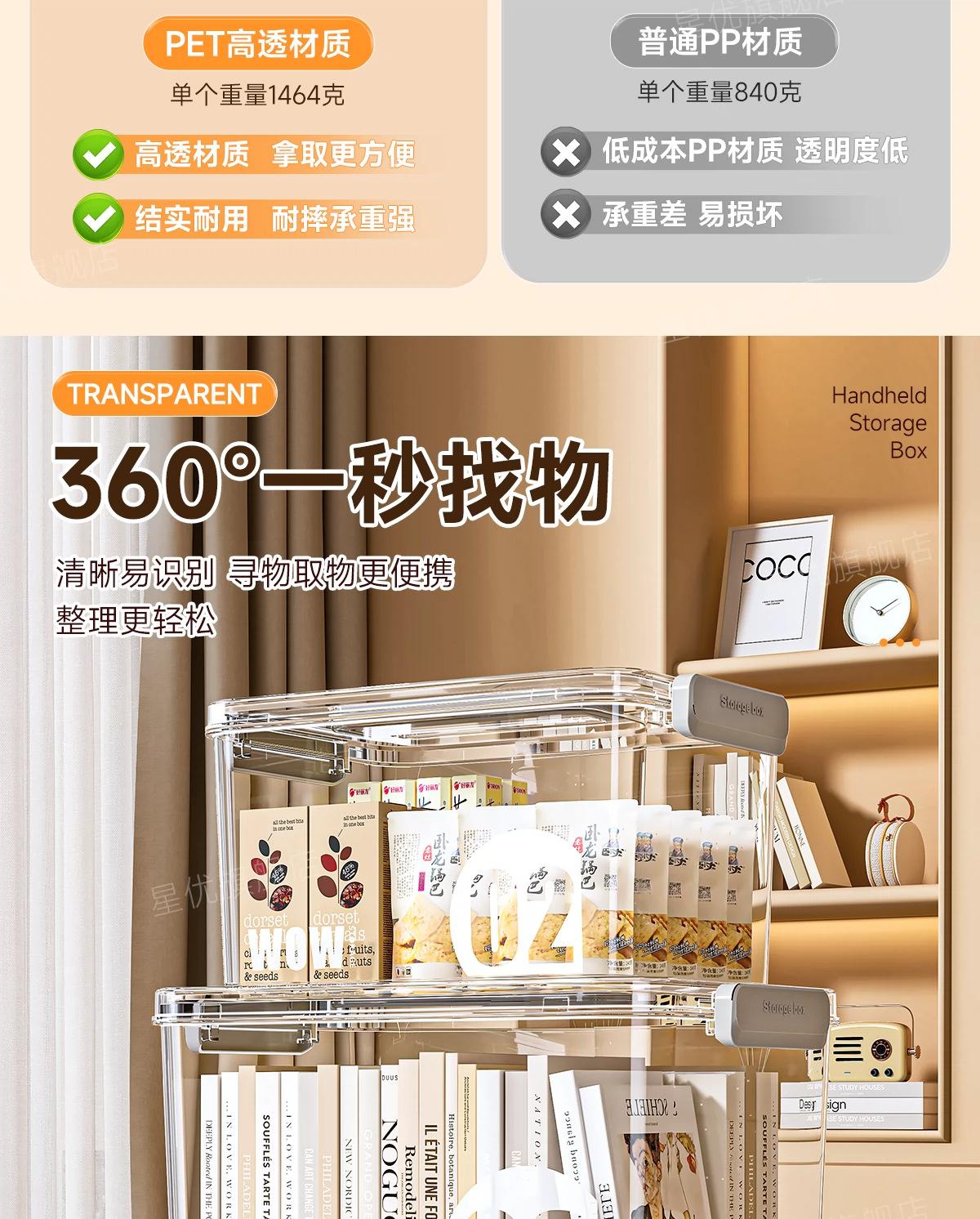 Caja de almacenamiento portátil transparente de gran capacidad, gruesa, para refrigerios, juguetes y artículos diversos, con tapa a prueba de polvo.