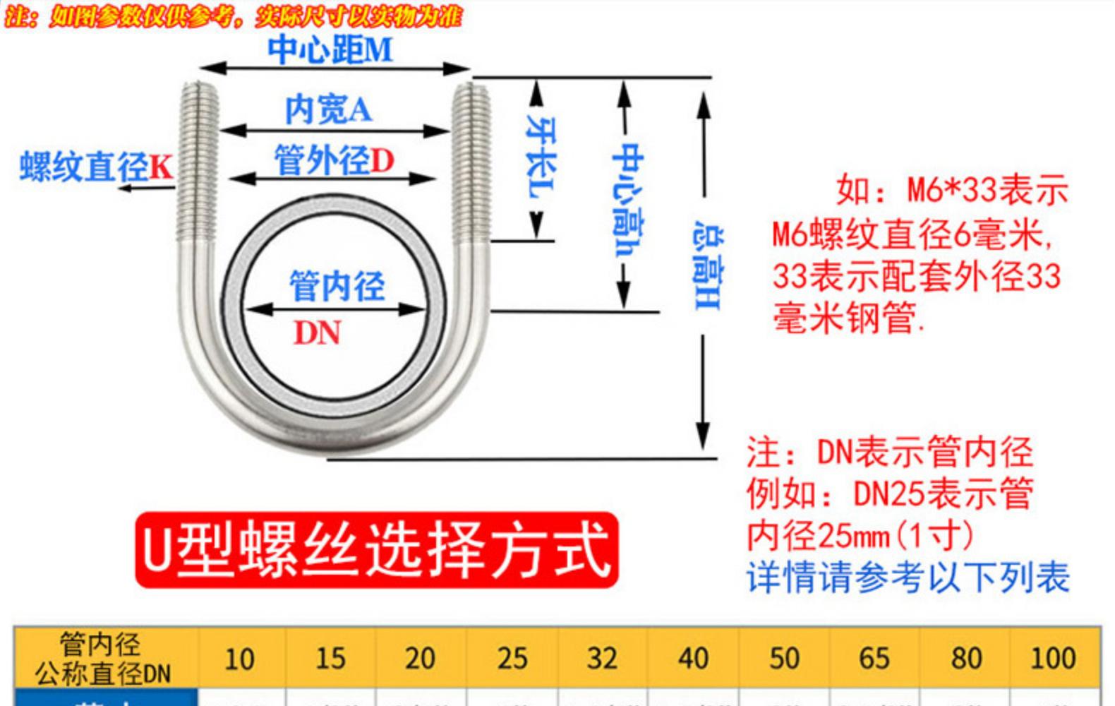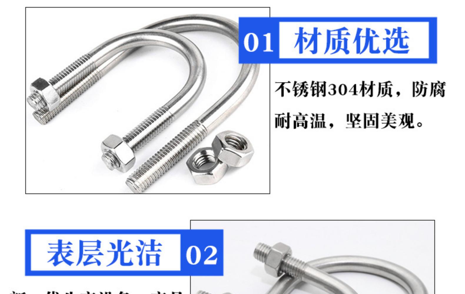 [M6M8M10M12] Tornillo en forma de U de acero inoxidable 304 Perno en forma de U Abrazadera de tubería en forma de U serie completa con tuerca