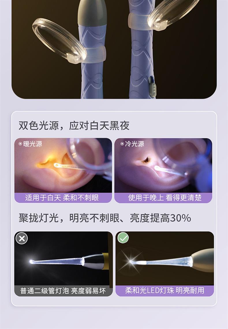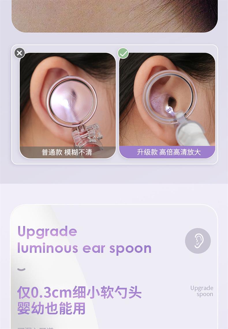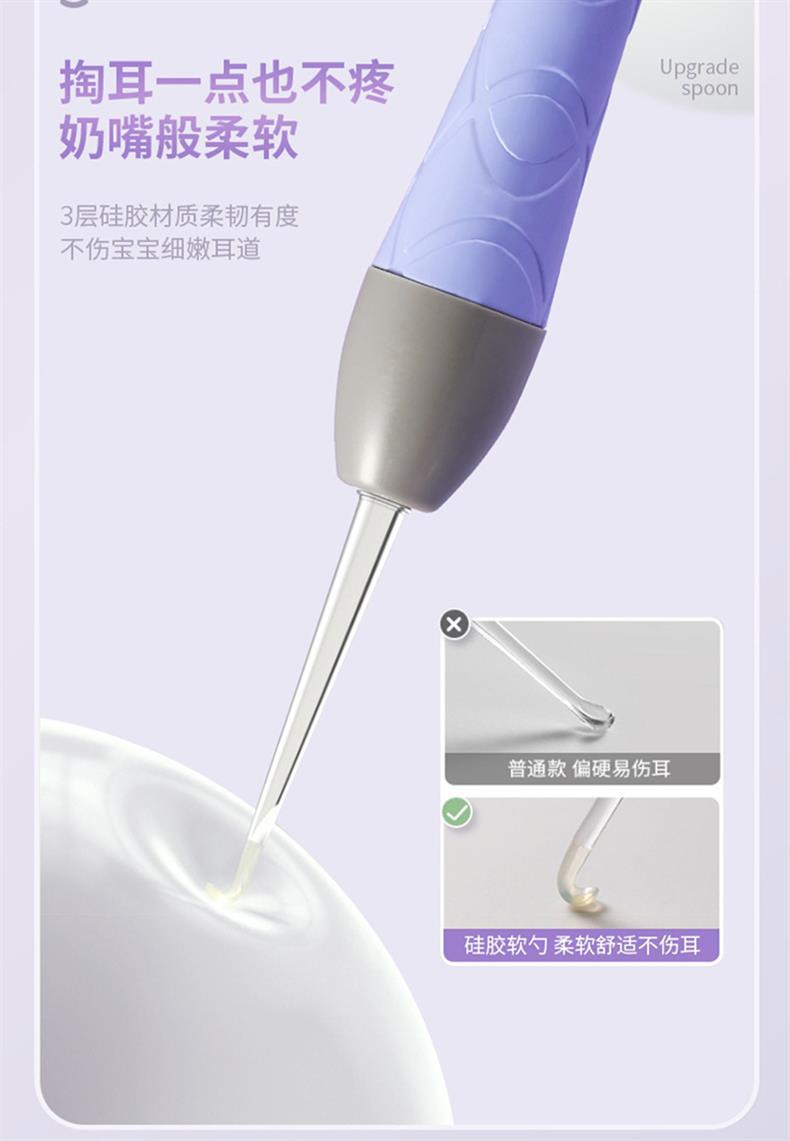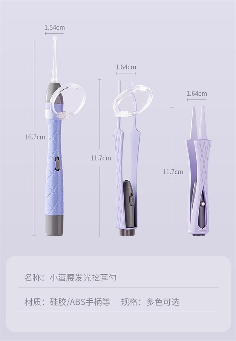 Artefacto para excavar oídos de bebé que brilla con luz. Cuchara para excavar oídos con cabeza suave especial para niños. Pinzas para cerumen. Hebilla para cuchara para excavar oídos.
