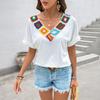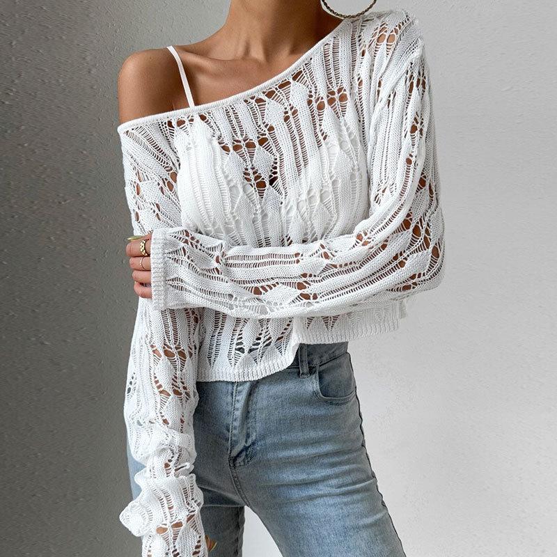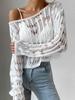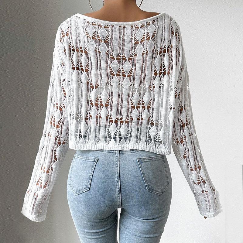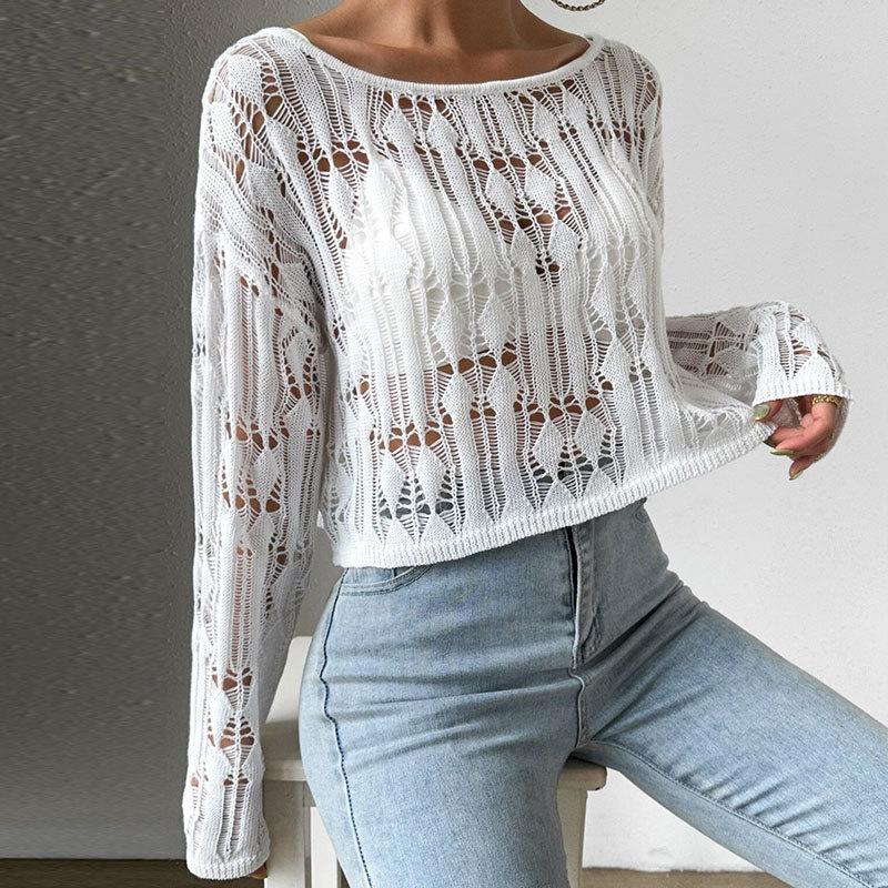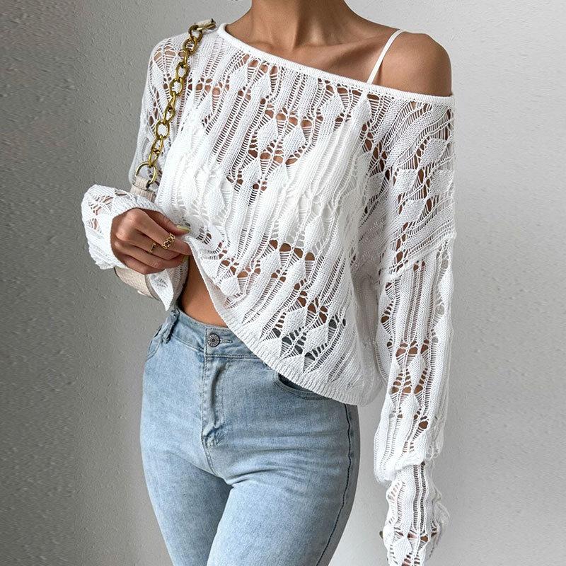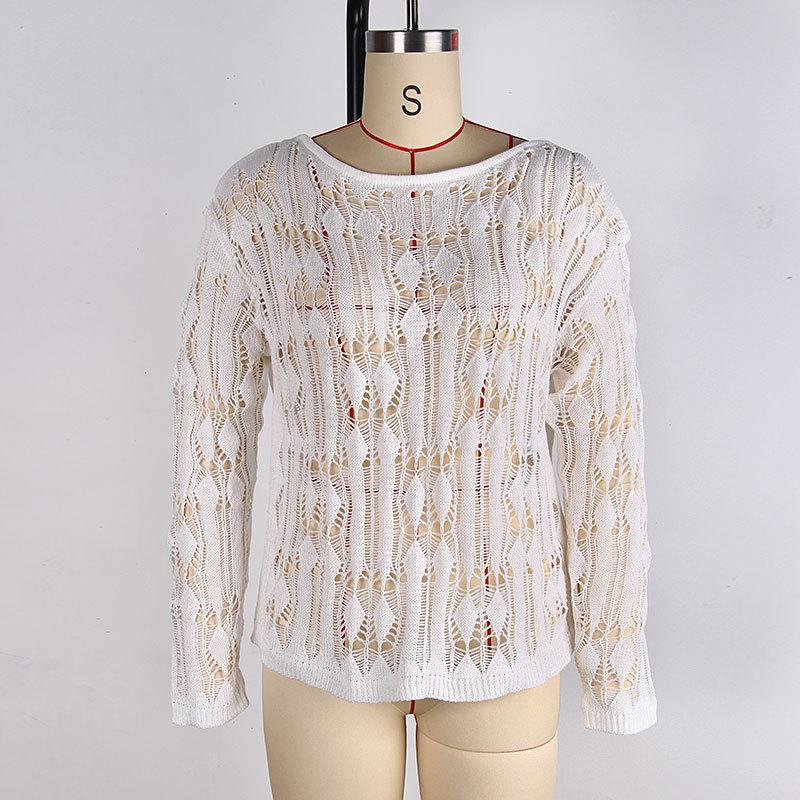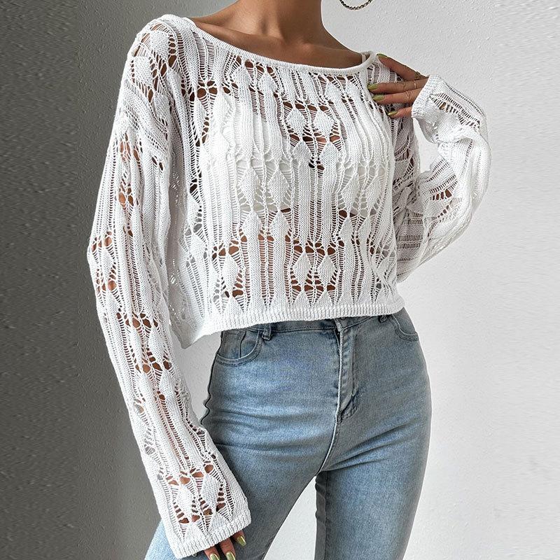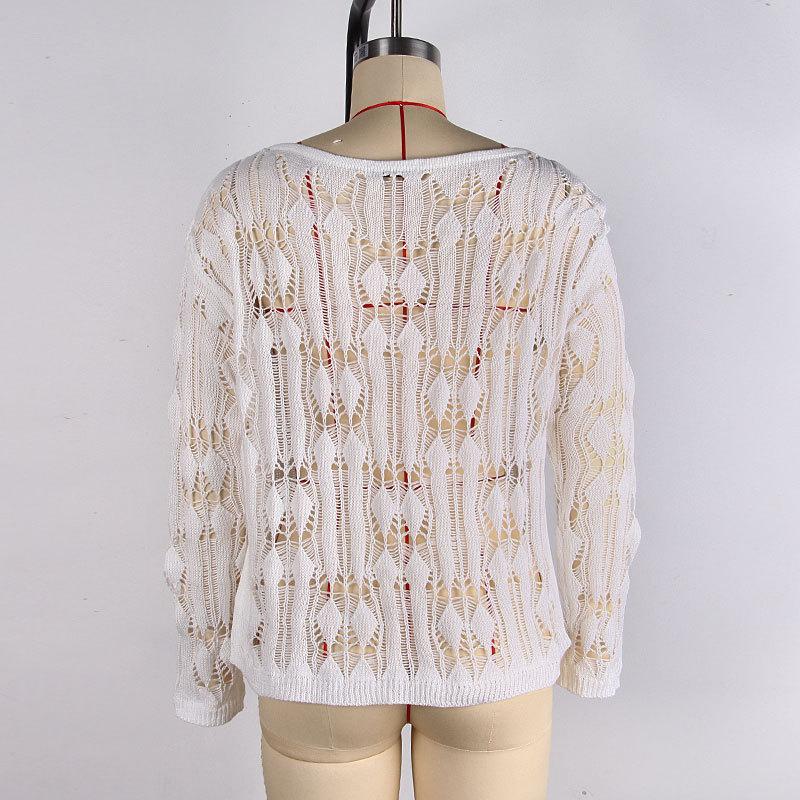 Yangyang Comercio Exterior Blusa de Playa Europea y Americana Amazon Transfronterizo Ganchillo Calado de Manga Larga Camisa de Punto para Vacaciones en la Playa