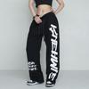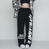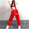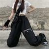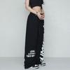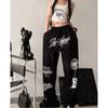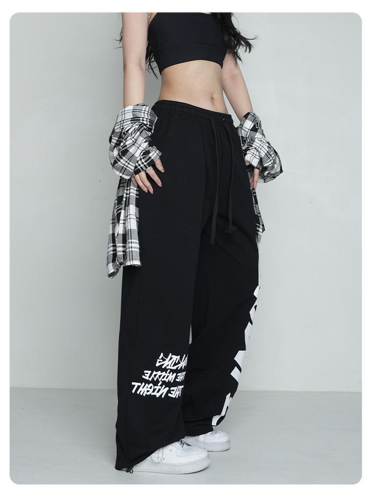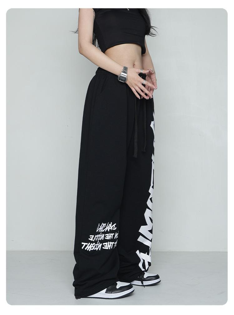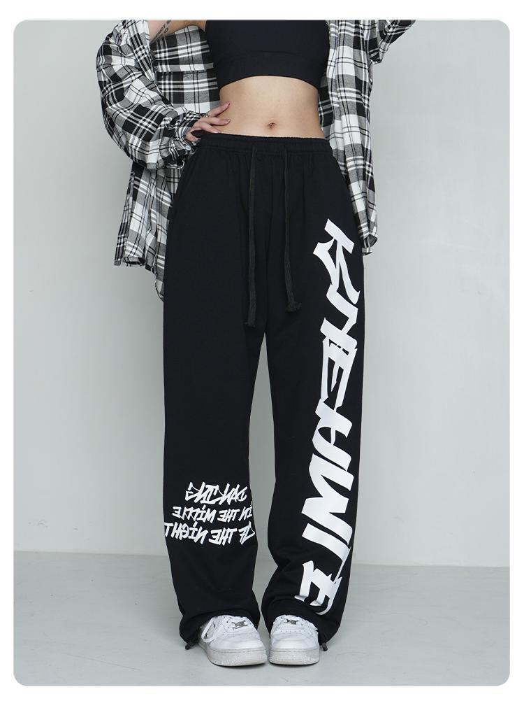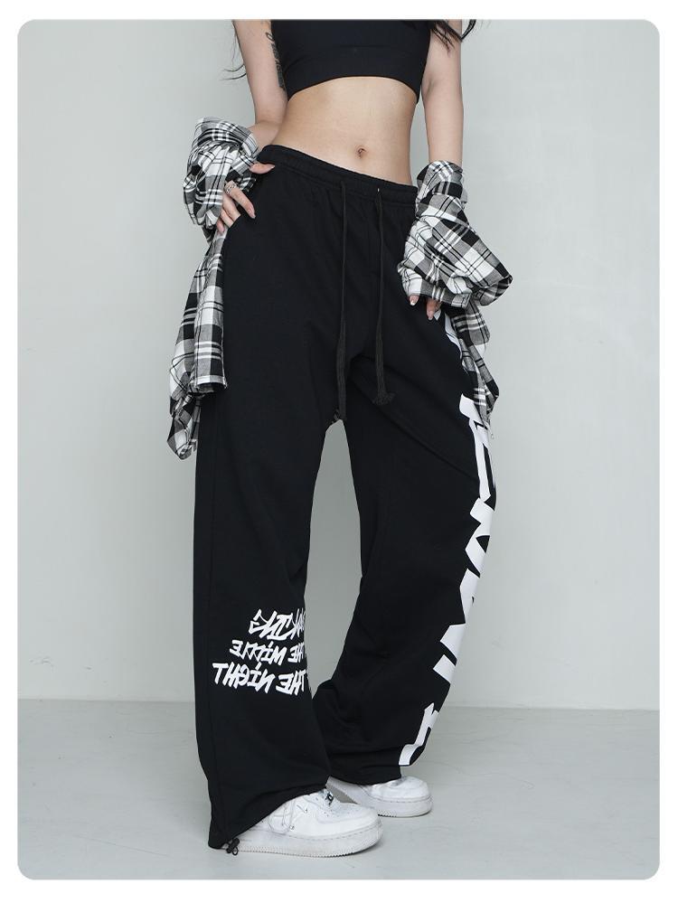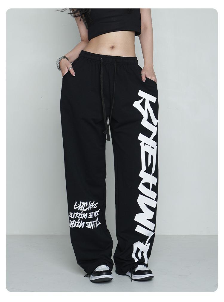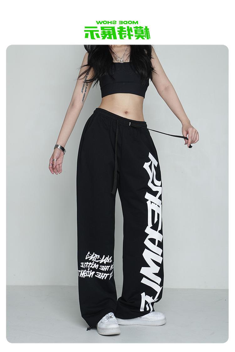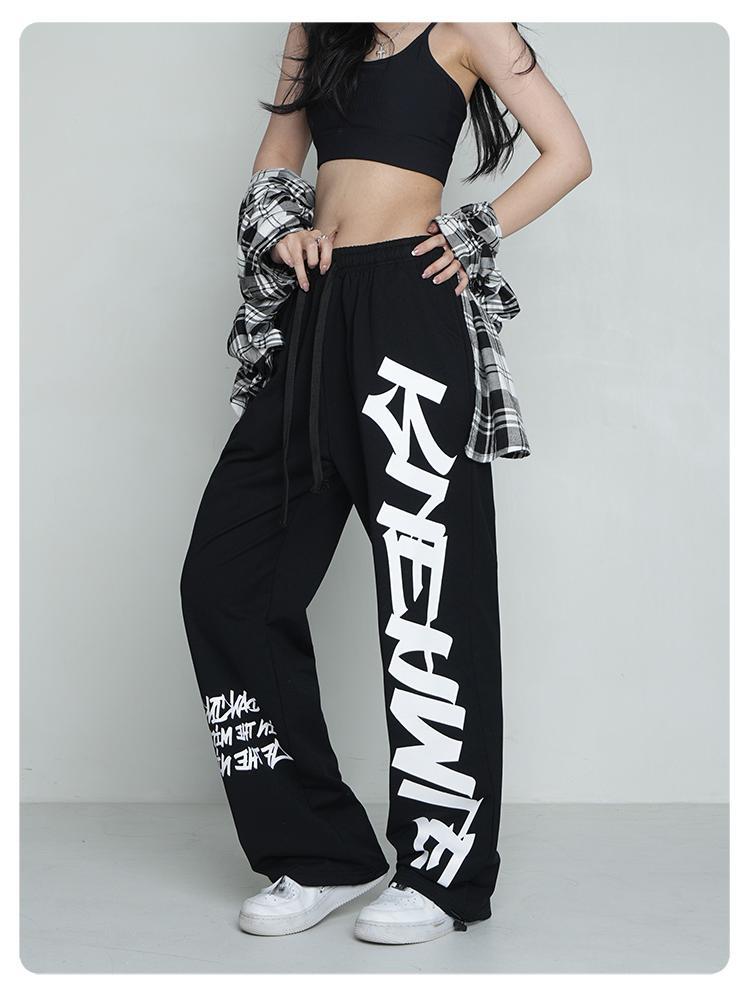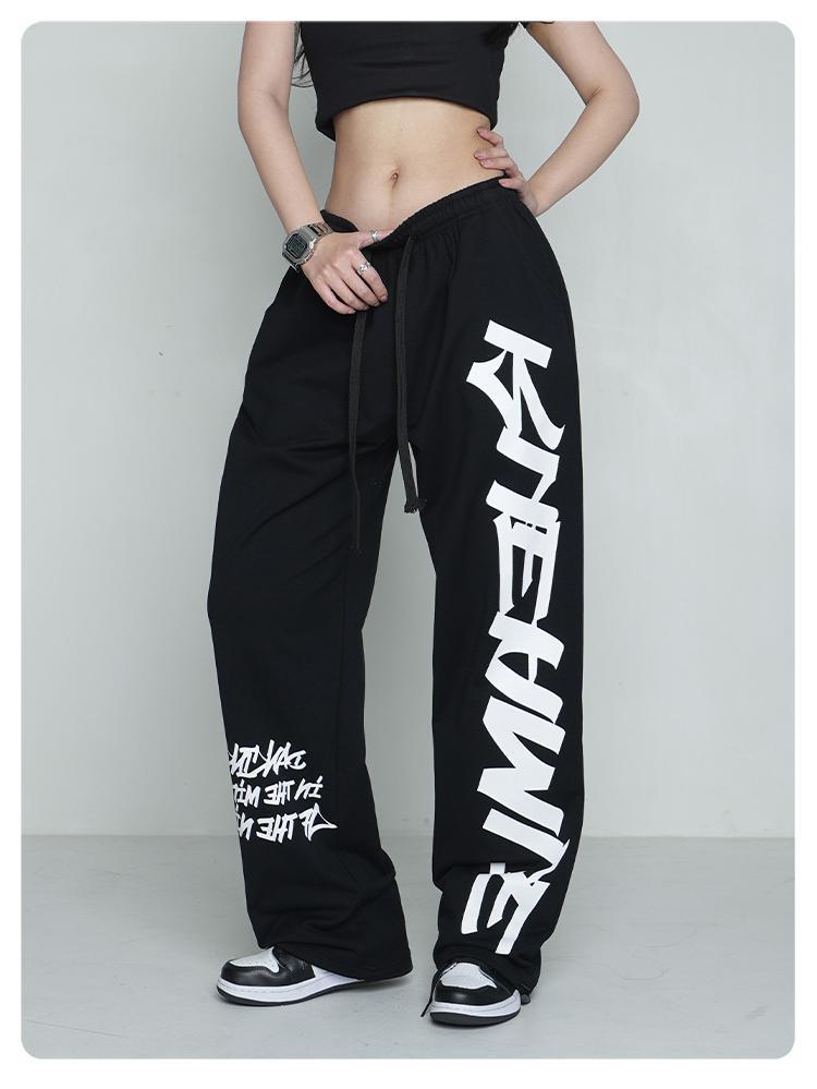 Pantalones casuales de hip hop con cordón, estilo hip hop callejero, deportivos, holgados, con drapeado y estampados grandes, de pierna ancha
