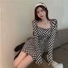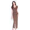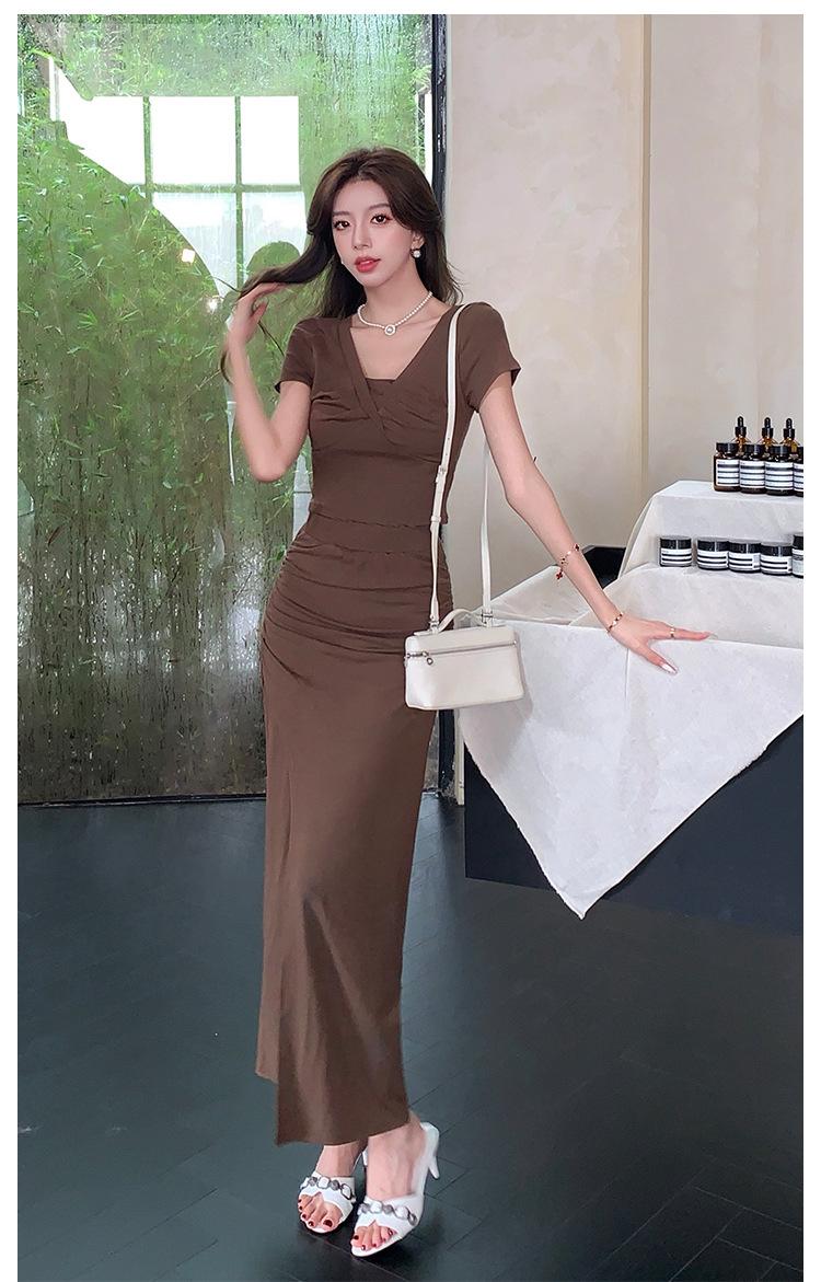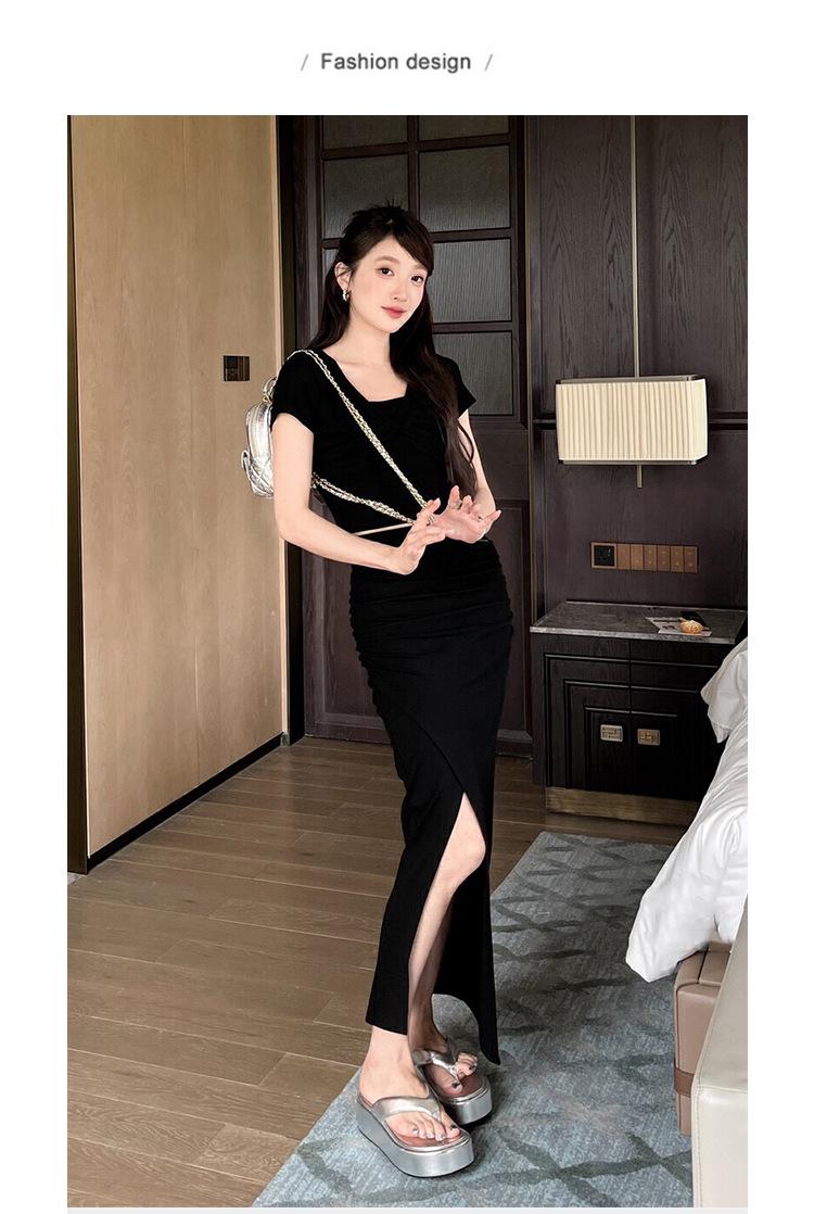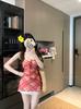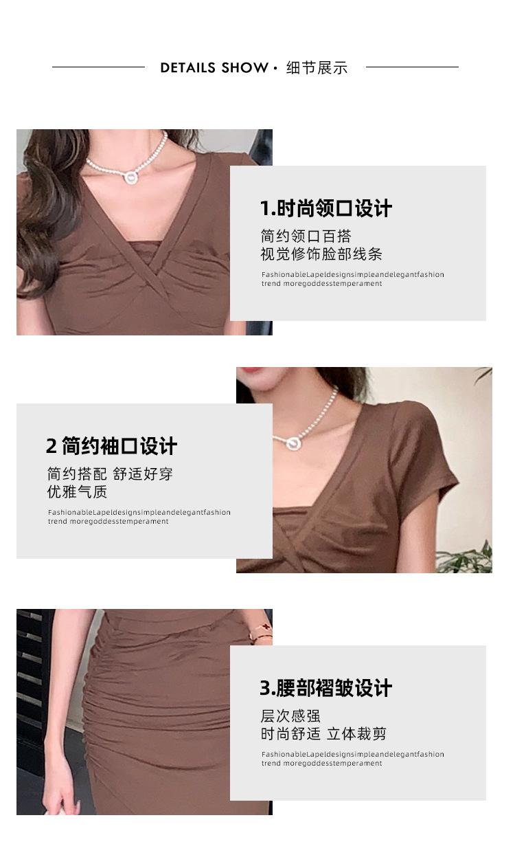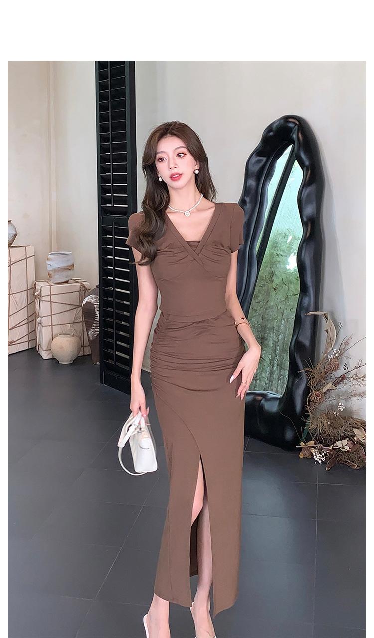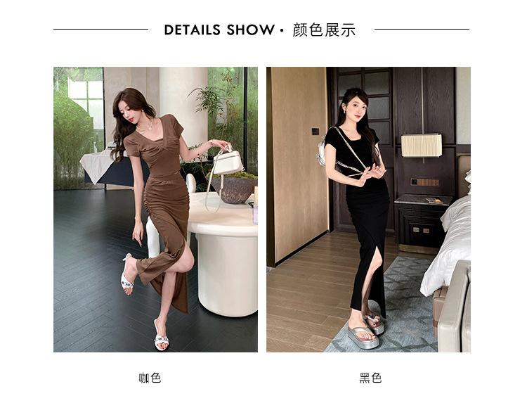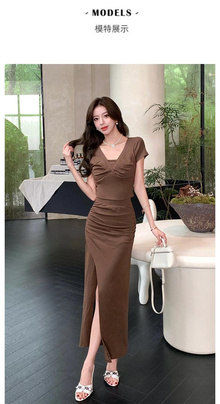 Foto real dulce genial chica sexy viento de deseo puro camiseta manga corta abertura lateral plisada cadera falda larga conjunto de dos piezas ropa de mujer