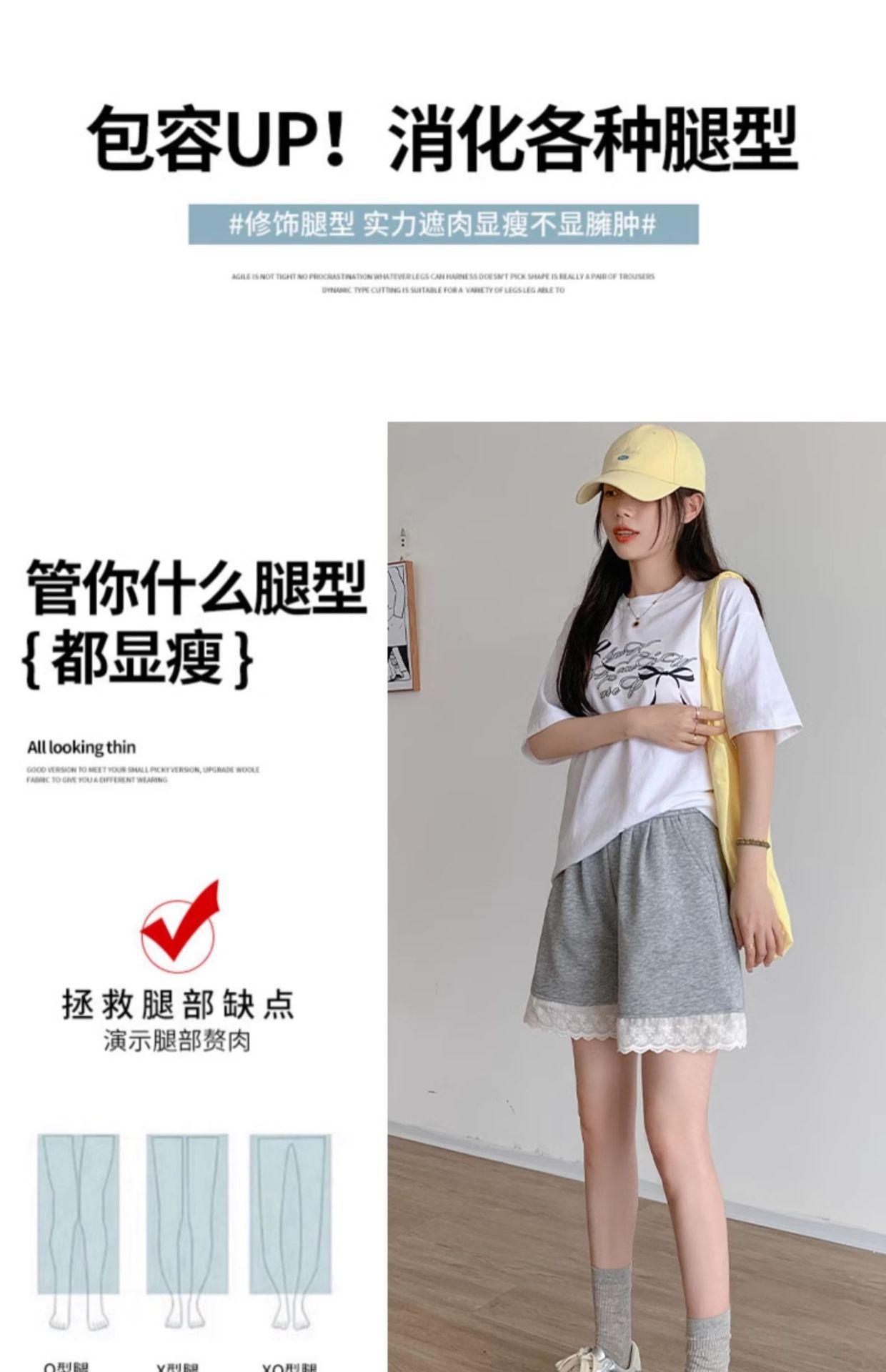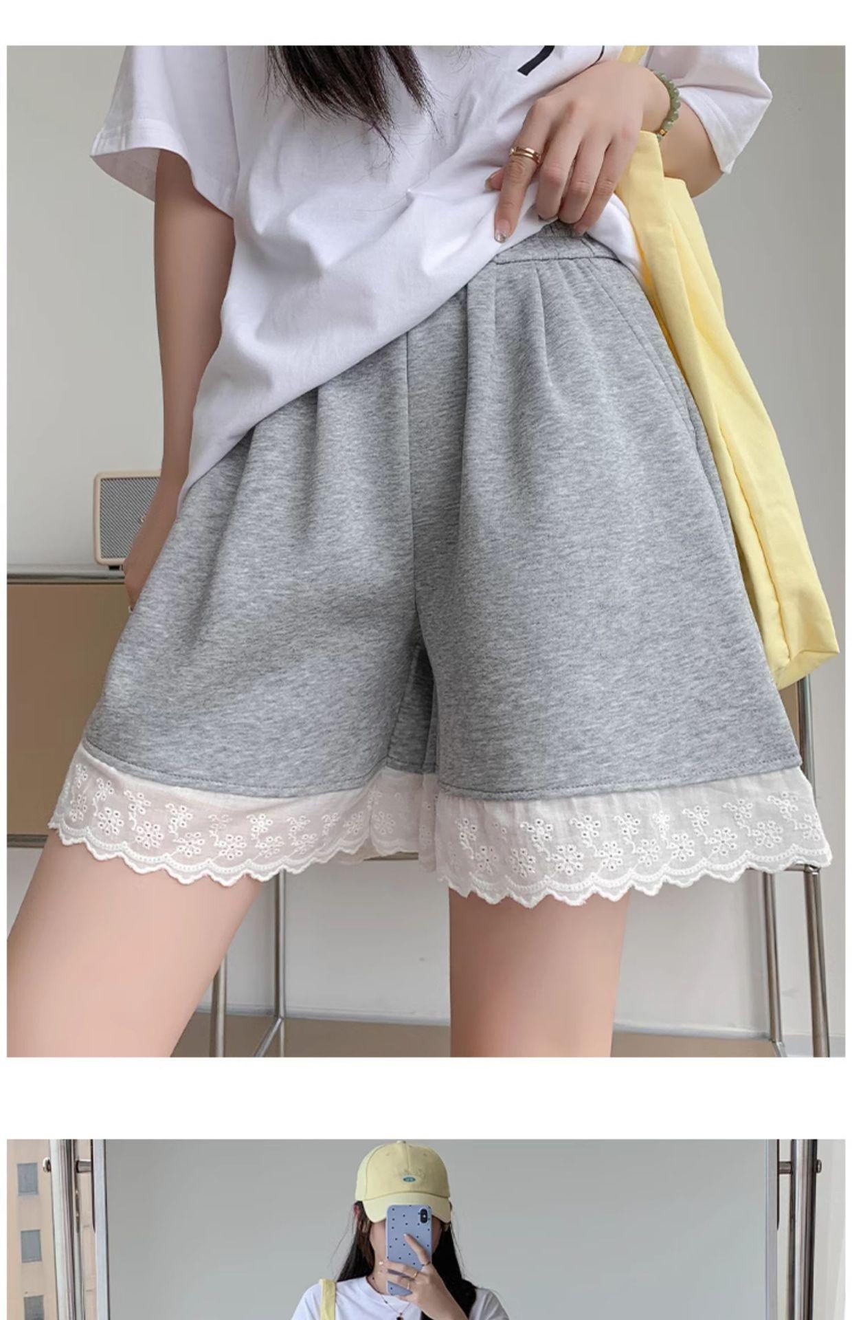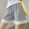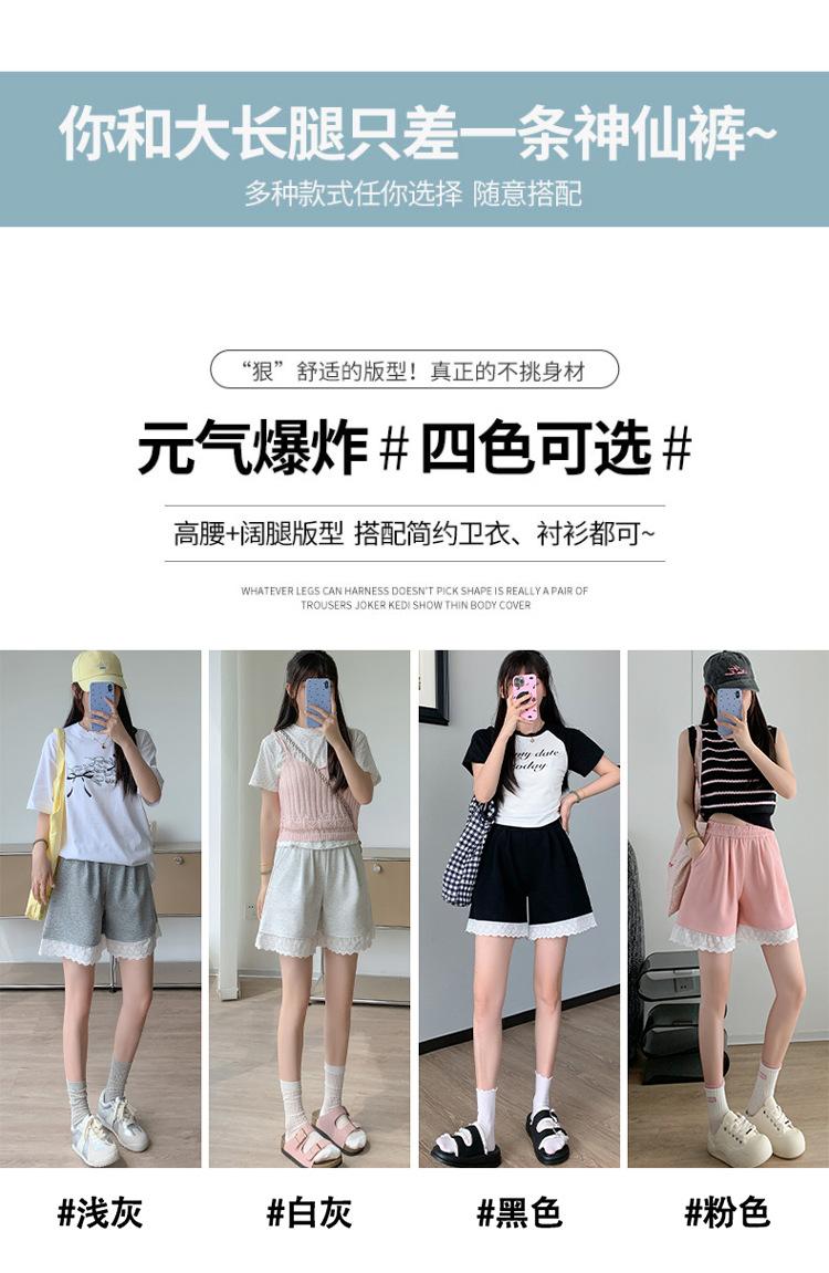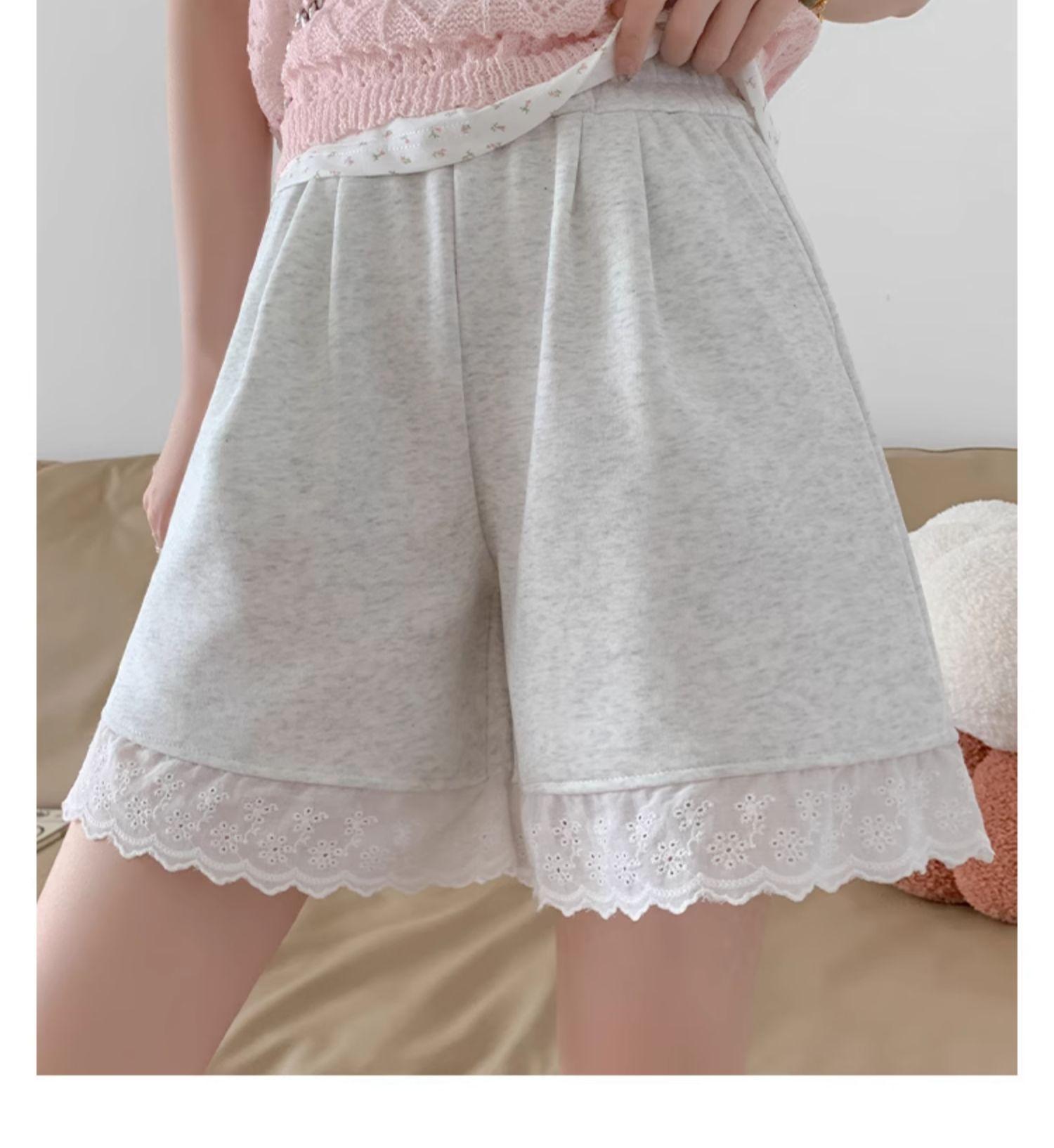 Pantalones cortos grises con ribete de encaje para mujer, estilo nuevo de verano 2024, finos, de cintura alta, deportivos informales, de pierna ancha.