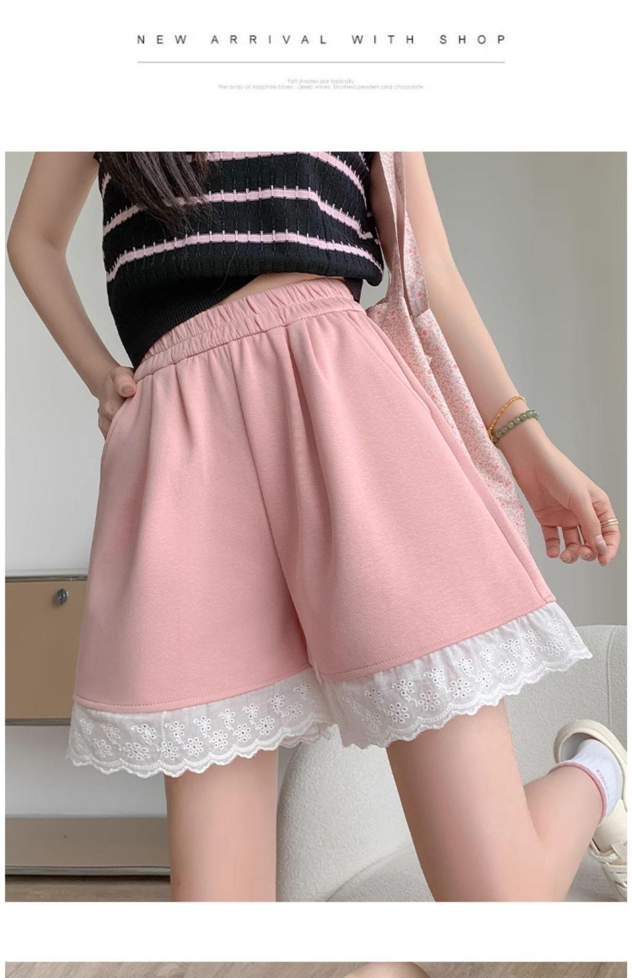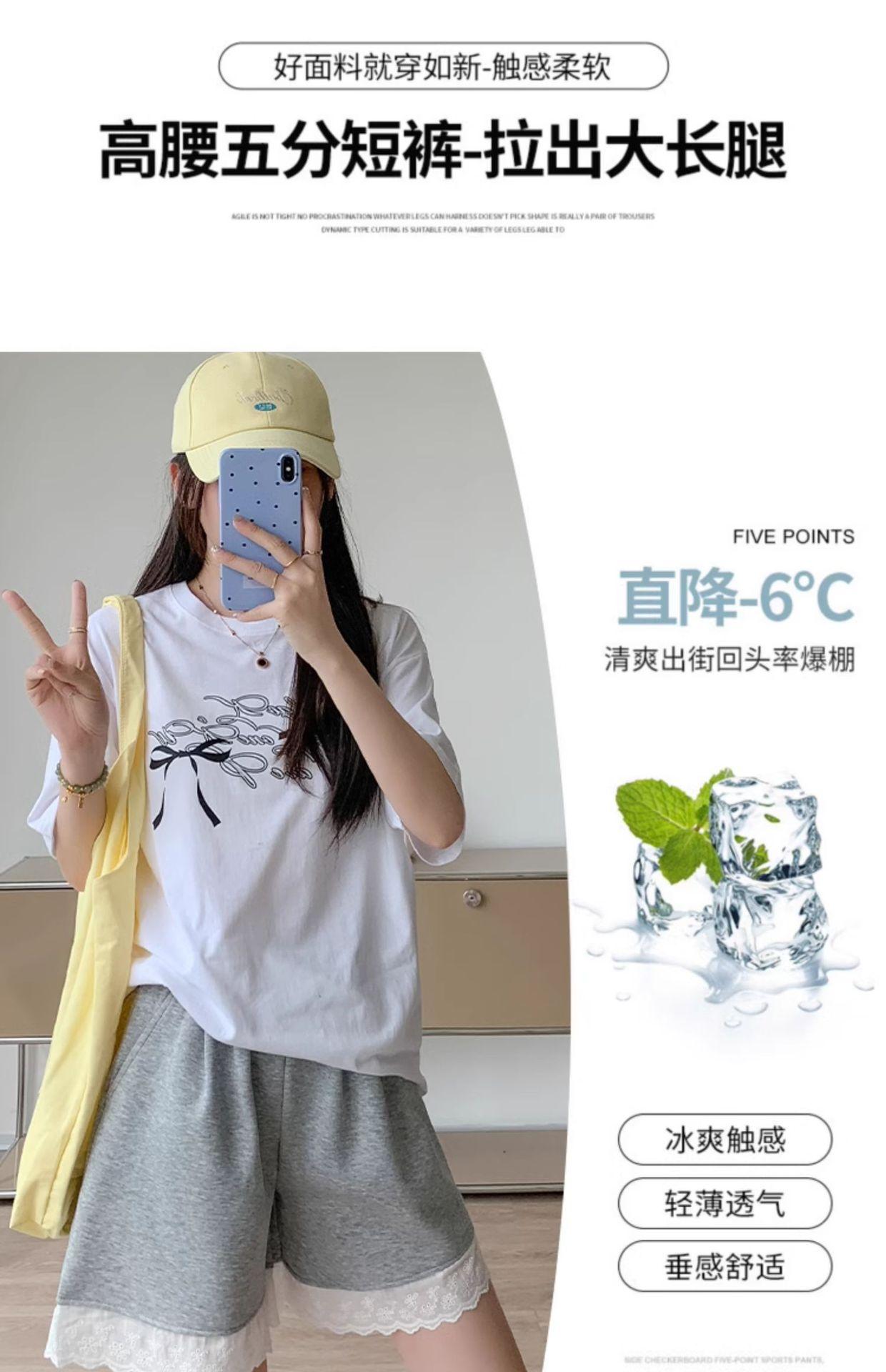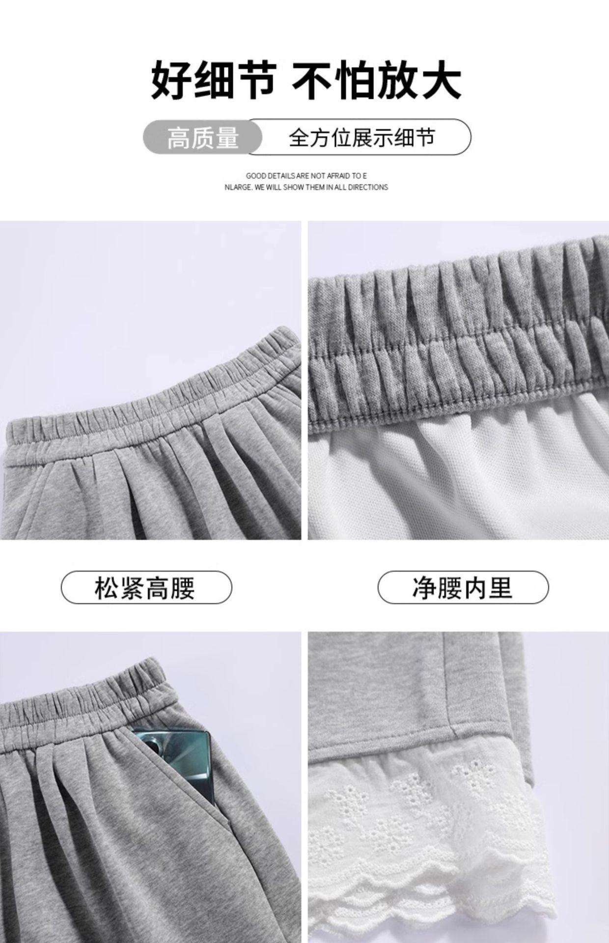 Pantalones cortos grises con ribete de encaje para mujer, estilo nuevo de verano 2024, finos, de cintura alta, deportivos informales, de pierna ancha.
