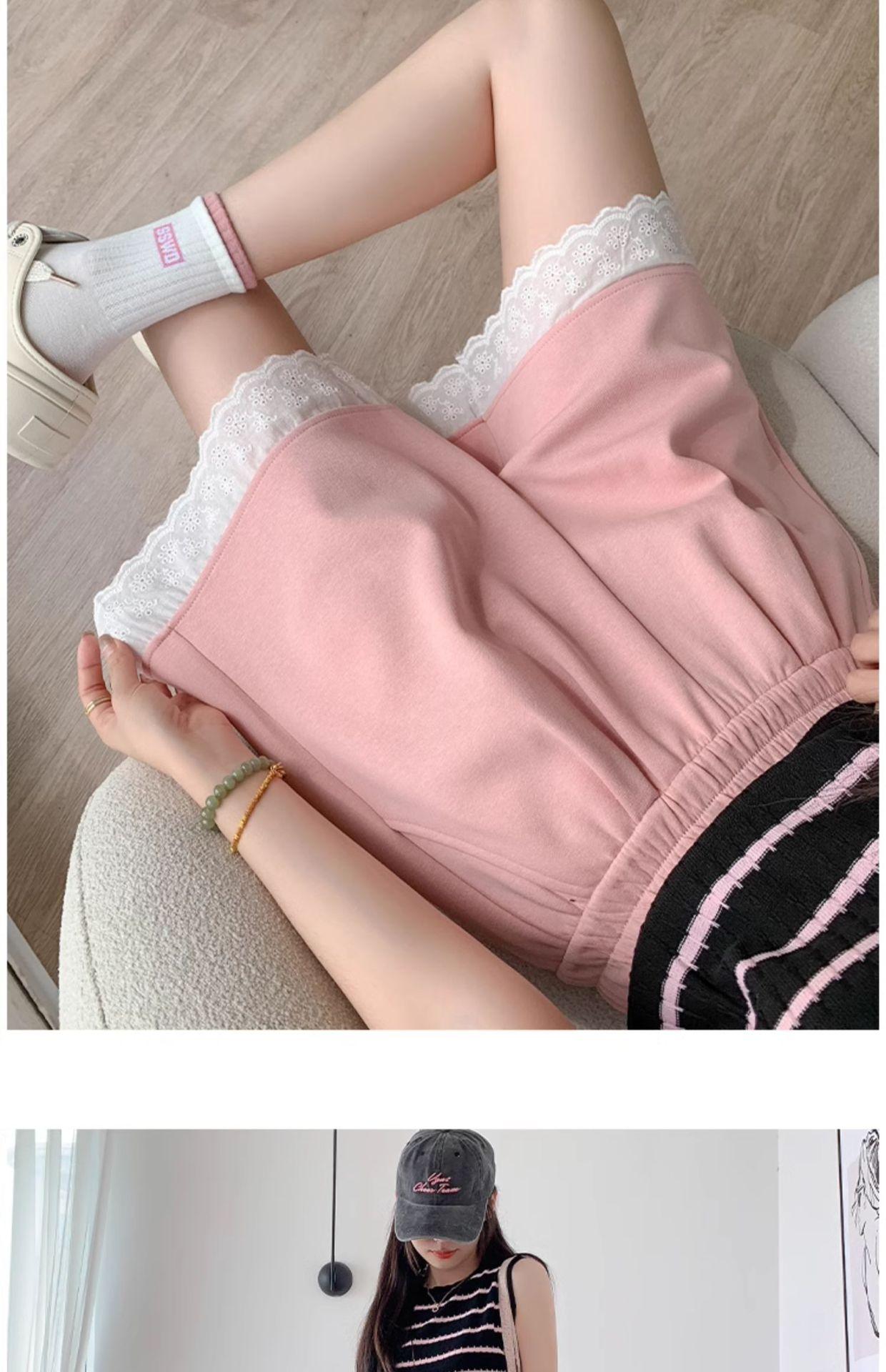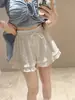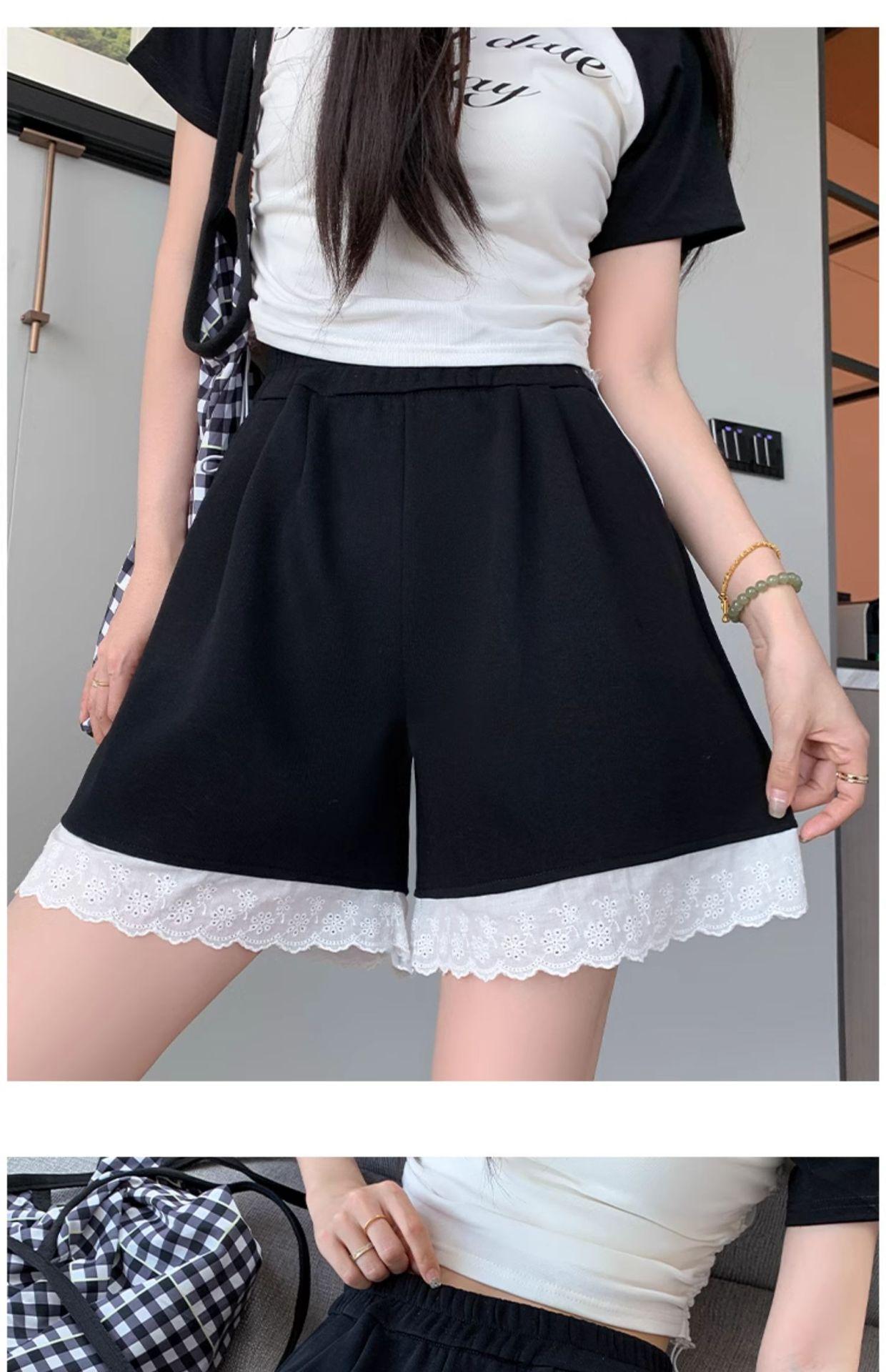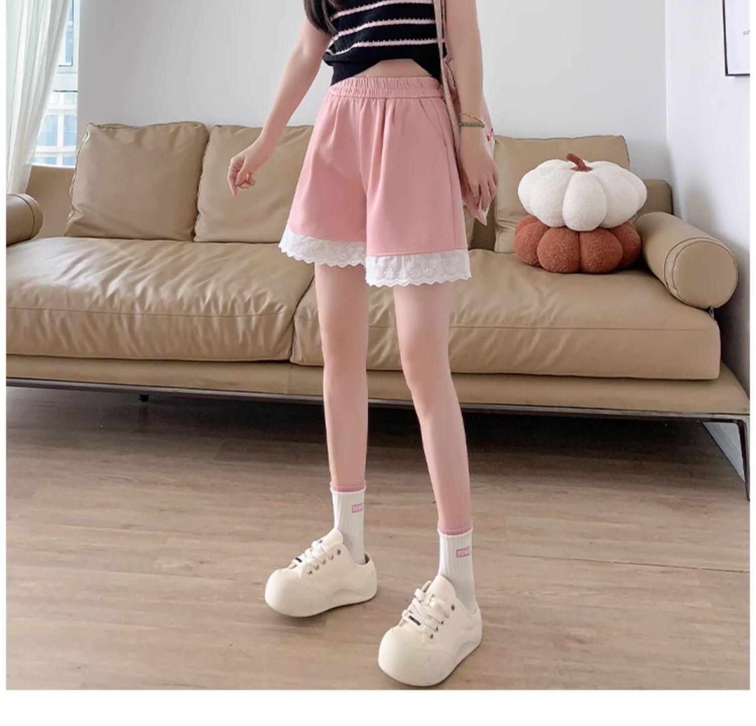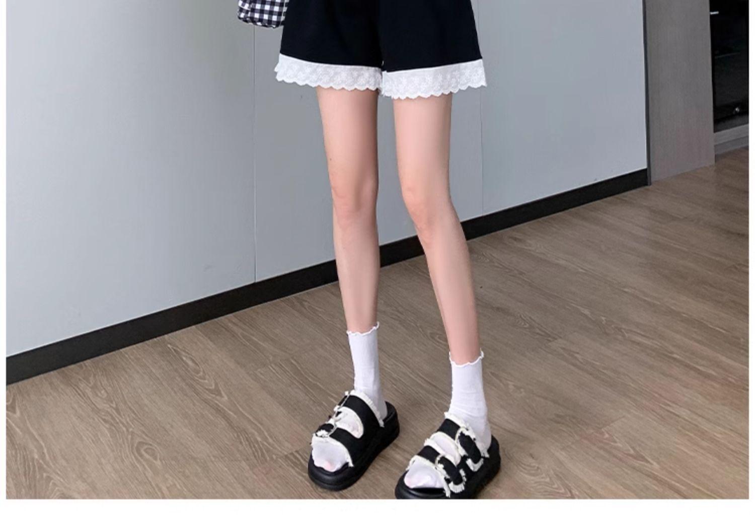 Pantalones cortos grises con ribete de encaje para mujer, estilo nuevo de verano 2024, finos, de cintura alta, deportivos informales, de pierna ancha.