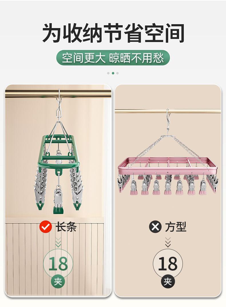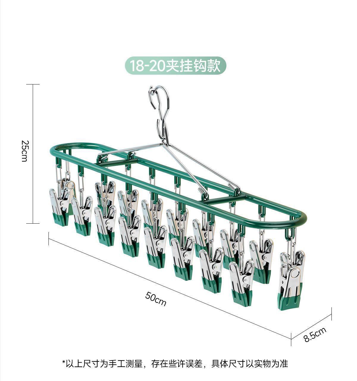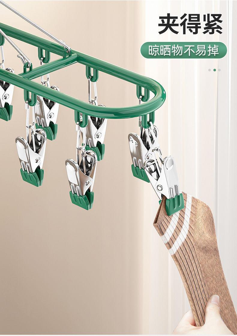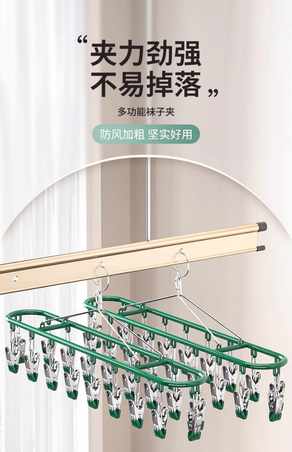 Tendedero de acero inoxidable con múltiples pinzas, sin costuras, para calcetines, para el hogar, multifuncional, resistente al viento