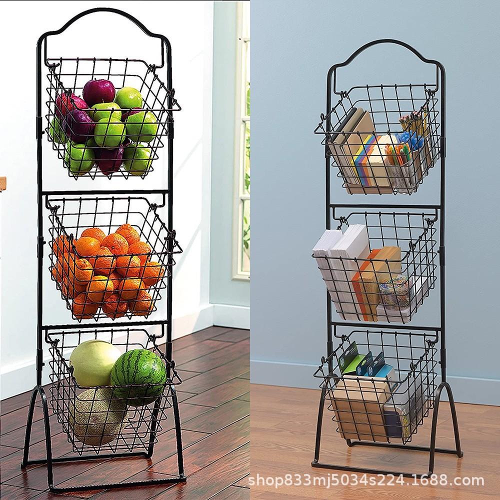 Estante de almacenamiento de cocina de hierro para piso de dormitorio, estante móvil multicapa para el hogar, cesta de almacenamiento para verduras y frutas