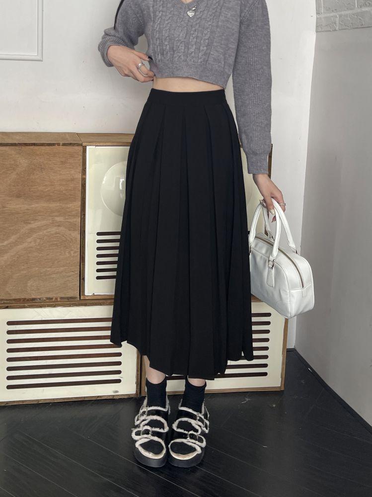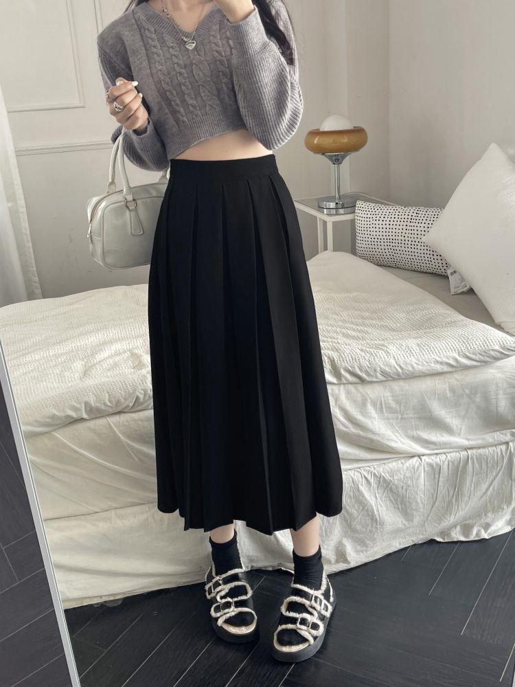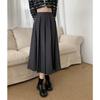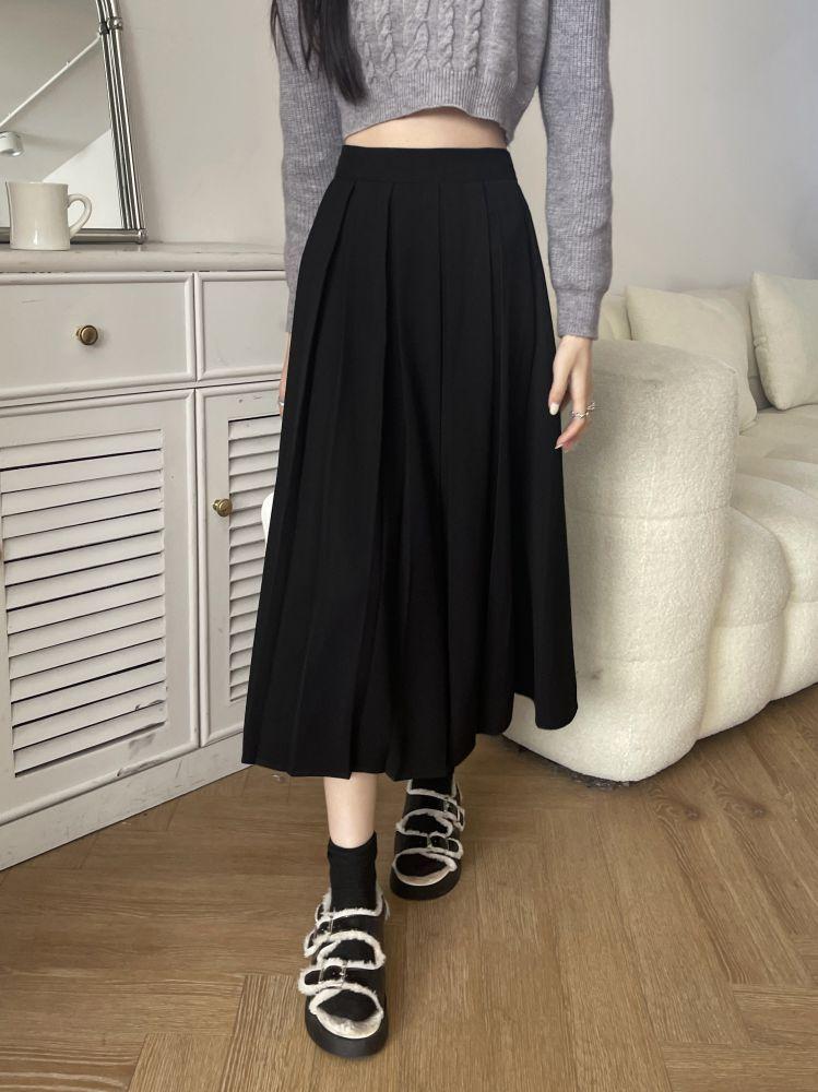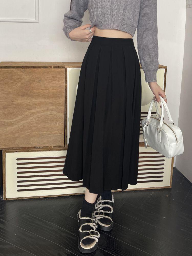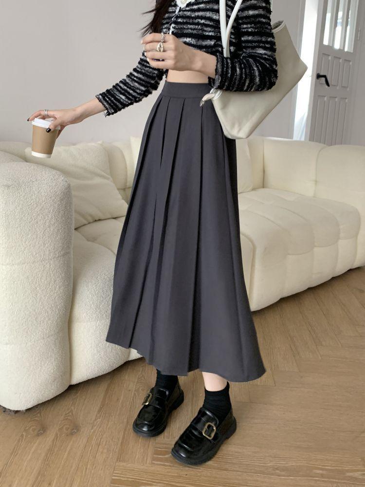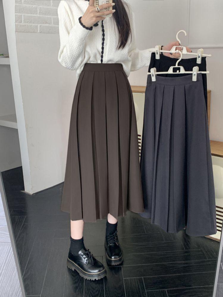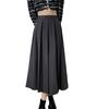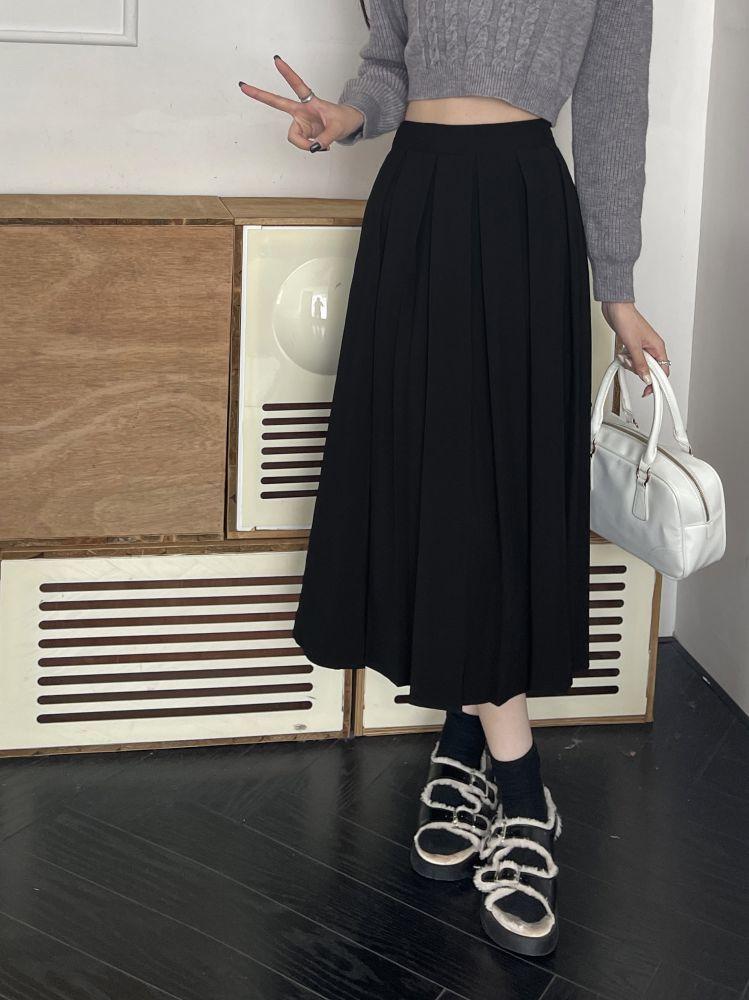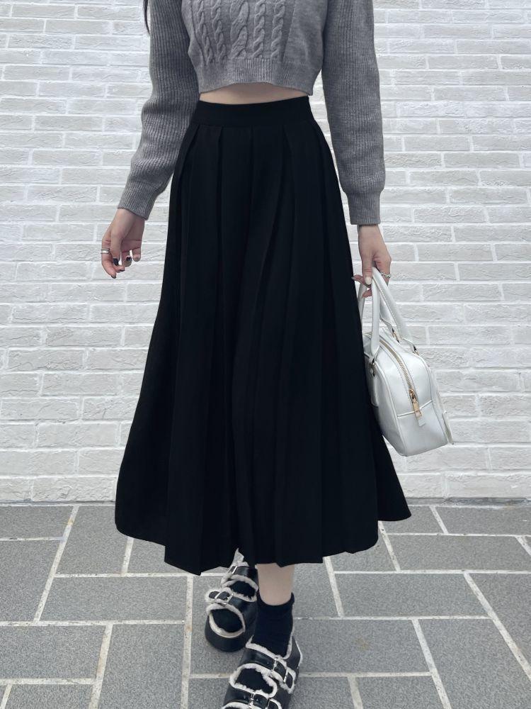 Falda plisada negra elegante de cintura alta para otoño e invierno de 2023, falda de corte A de longitud media para mujer