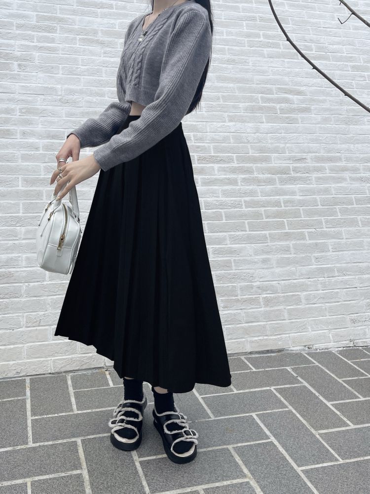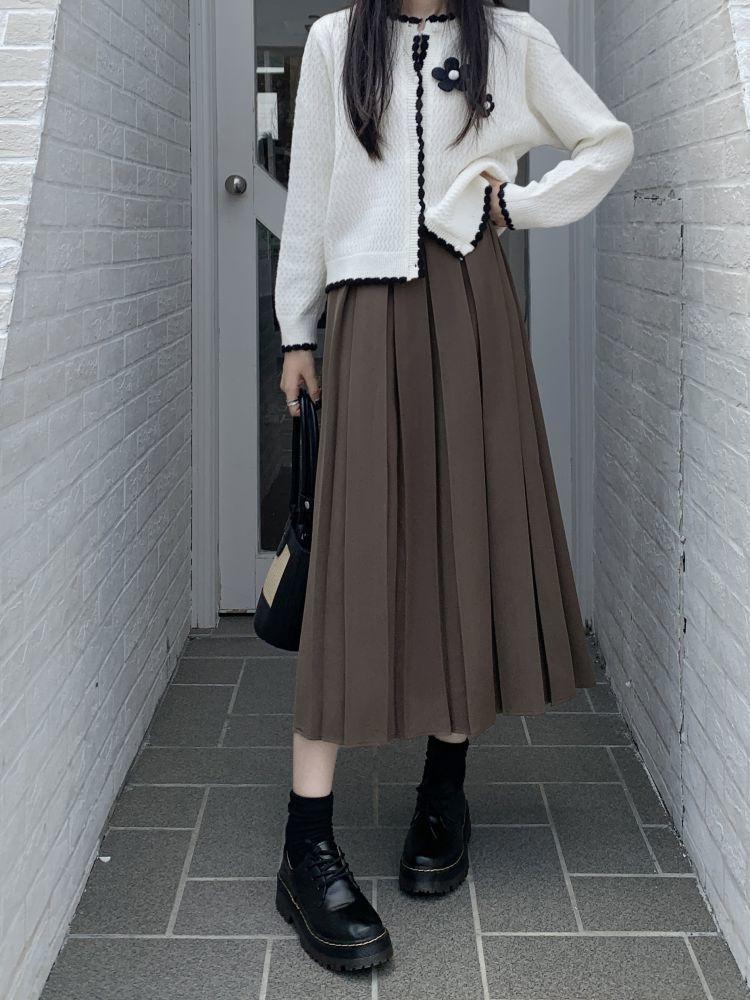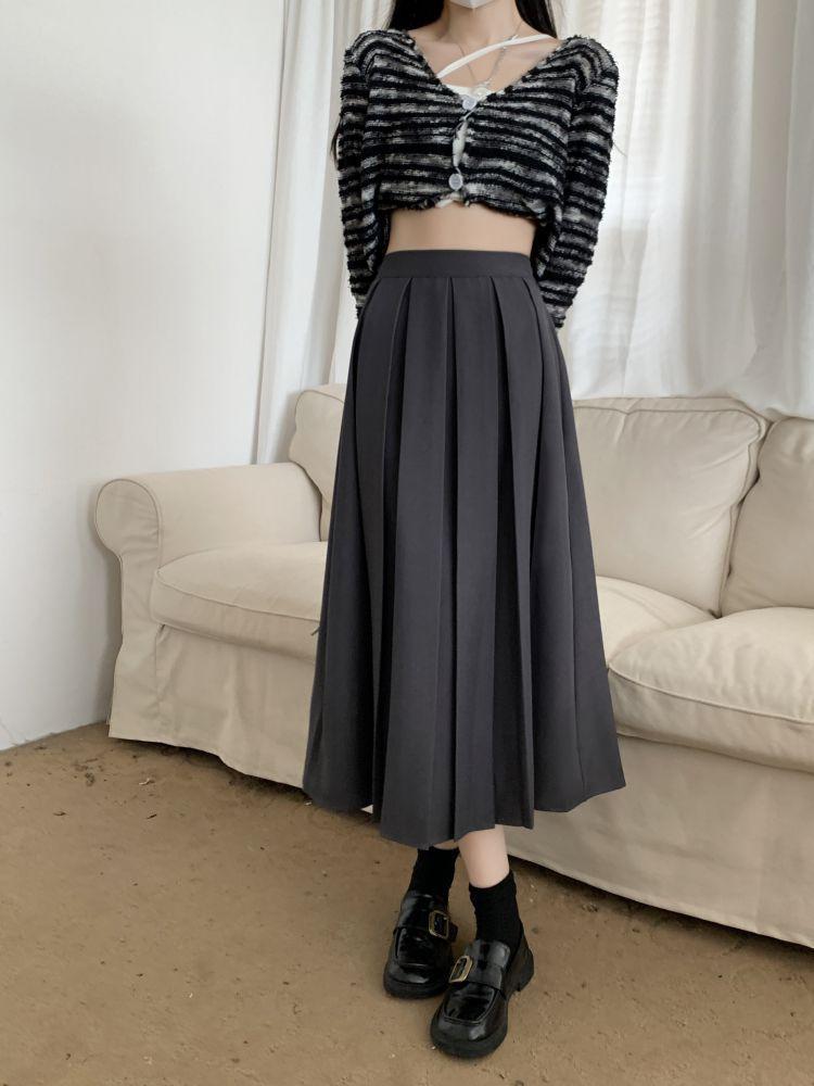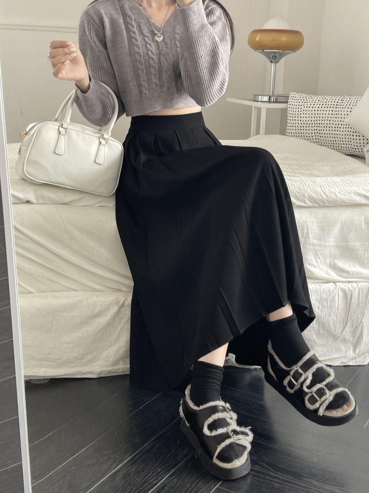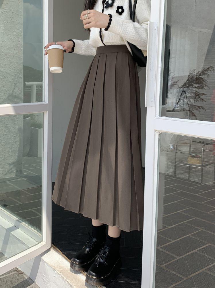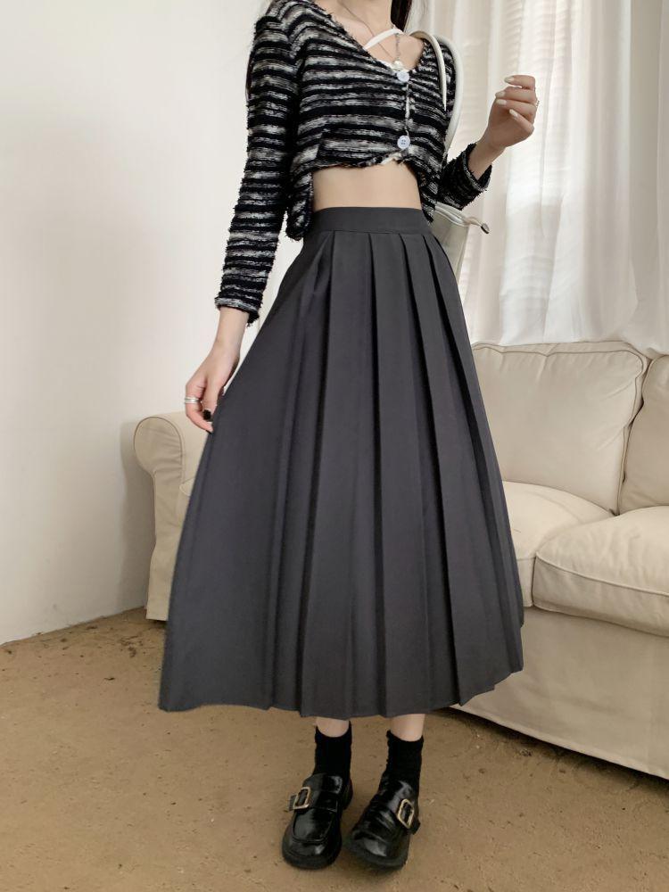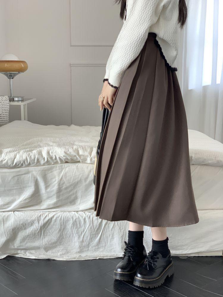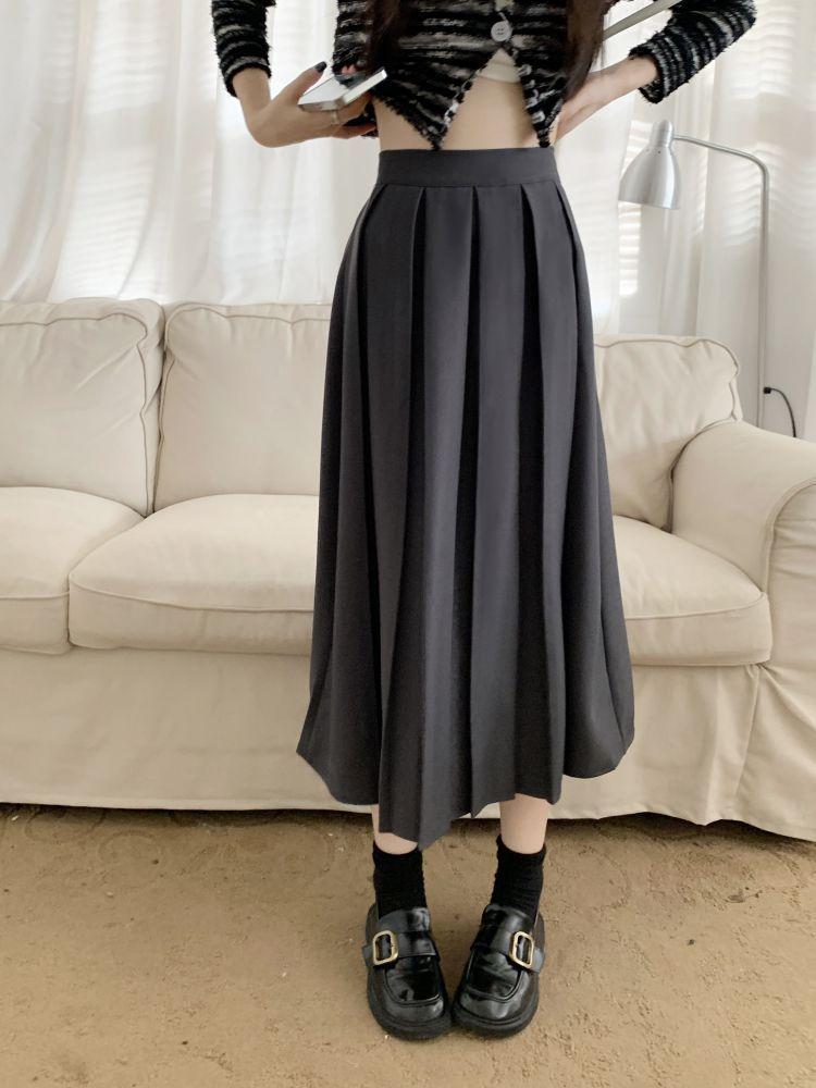Falda plisada negra elegante de cintura alta para otoño e invierno de 2023, falda de corte A de longitud media para mujer