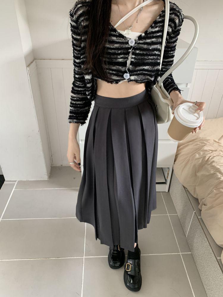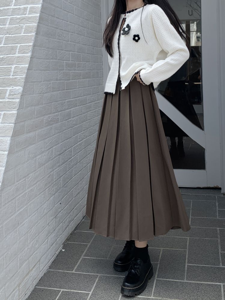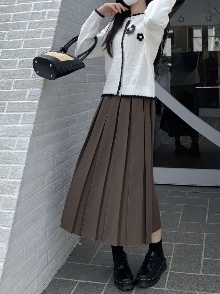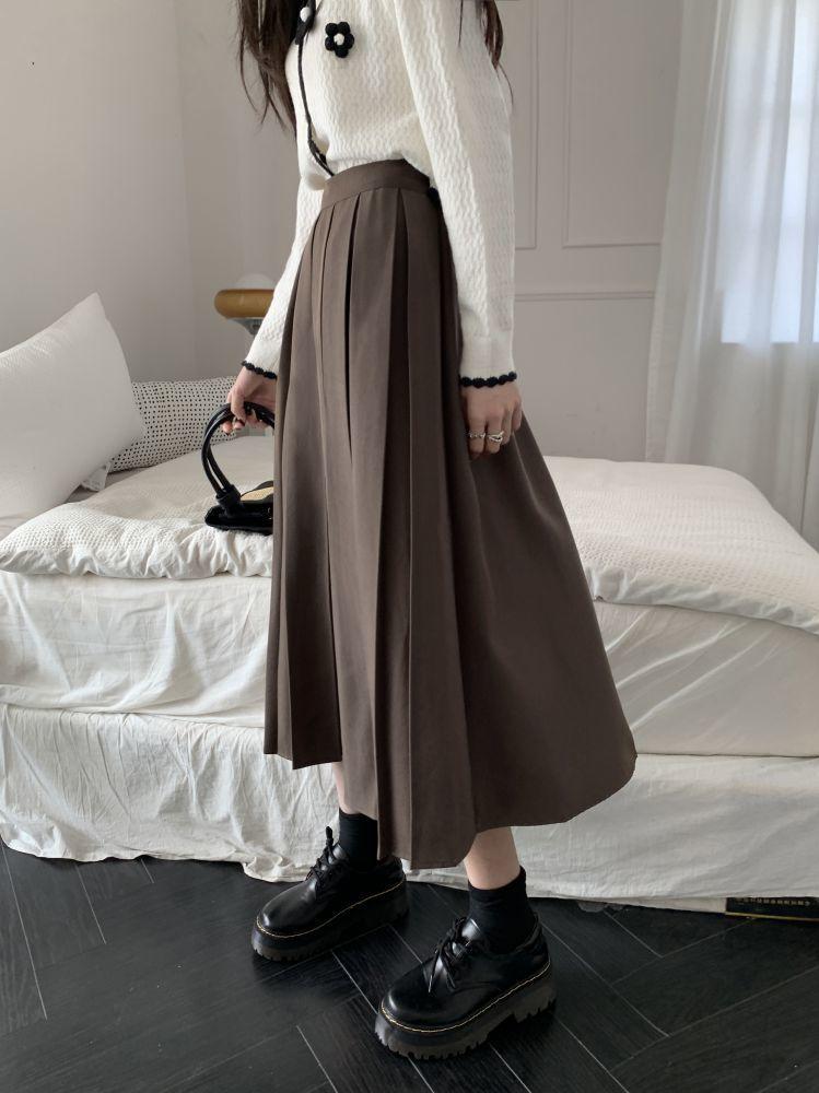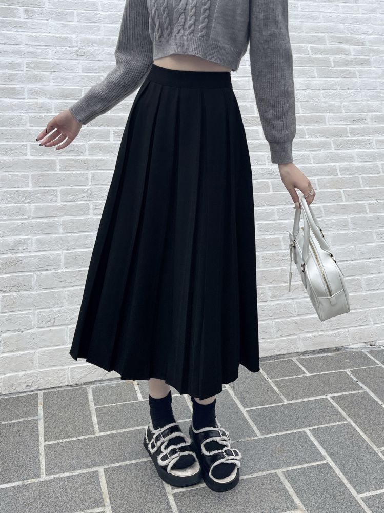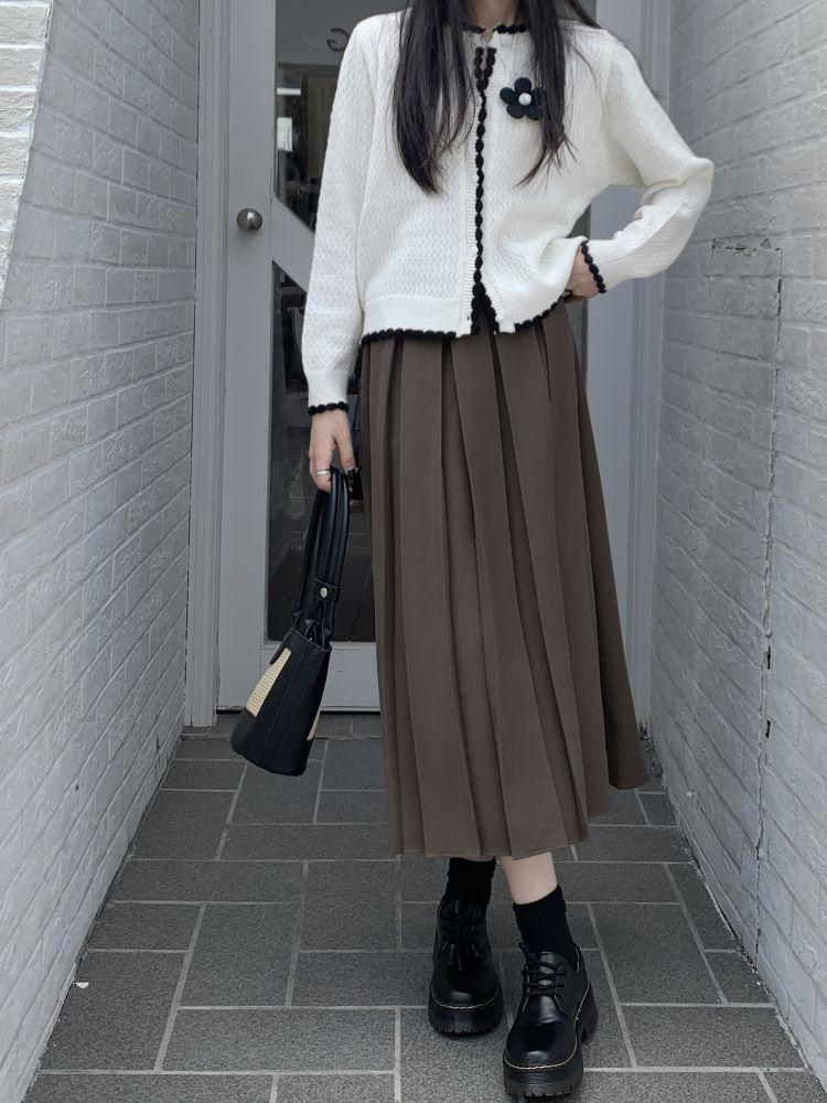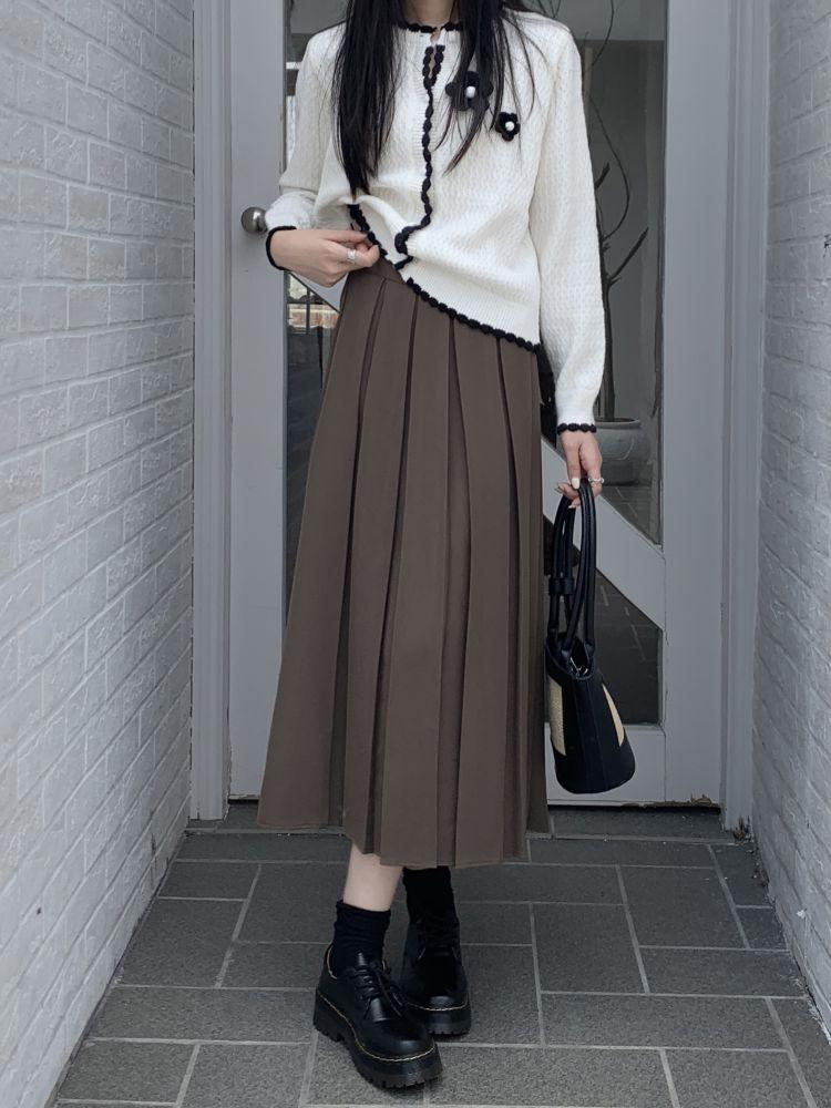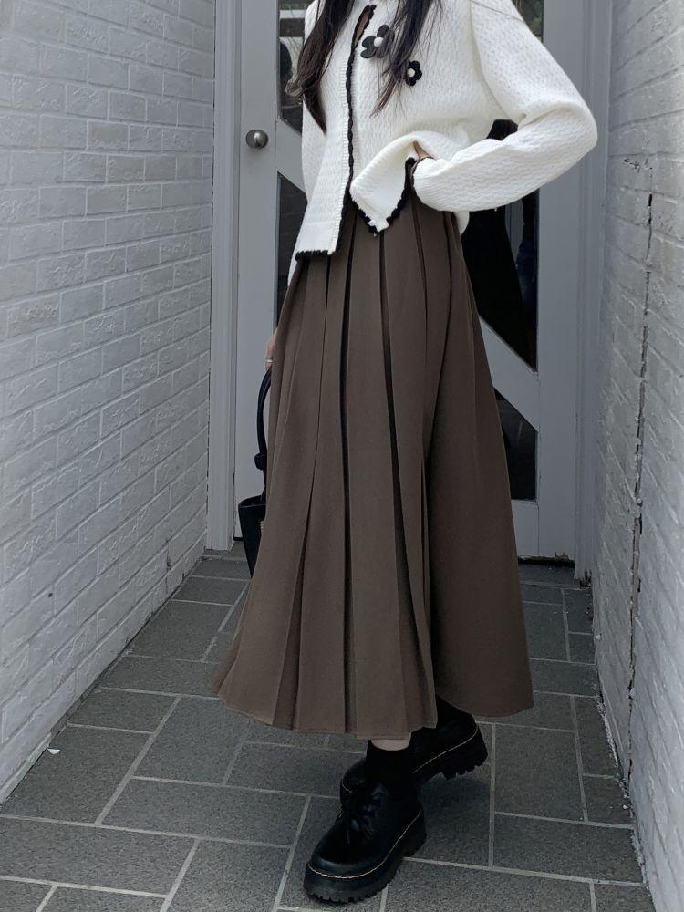 Falda plisada negra elegante de cintura alta para otoño e invierno de 2023, falda de corte A de longitud media para mujer