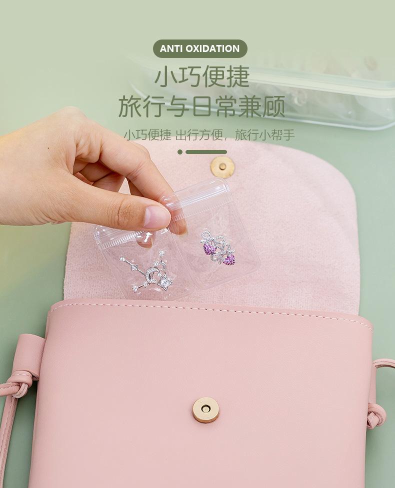 Joyero antioxidante, aretes, collares, joyero de mano, portátil, bolsa de almacenamiento para aretes y anillos, artefacto transparente