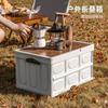 Caja de almacenamiento plegable de estilo industrial para exteriores, puerta lateral, maletero de coche, estilo camping, cubierta de madera, almacenamiento de plástico