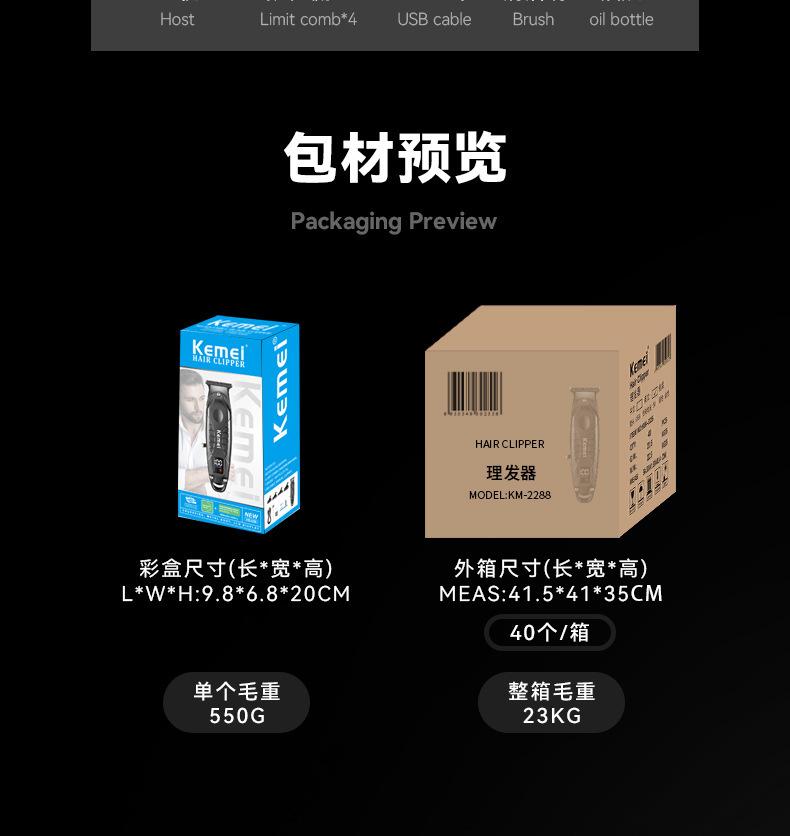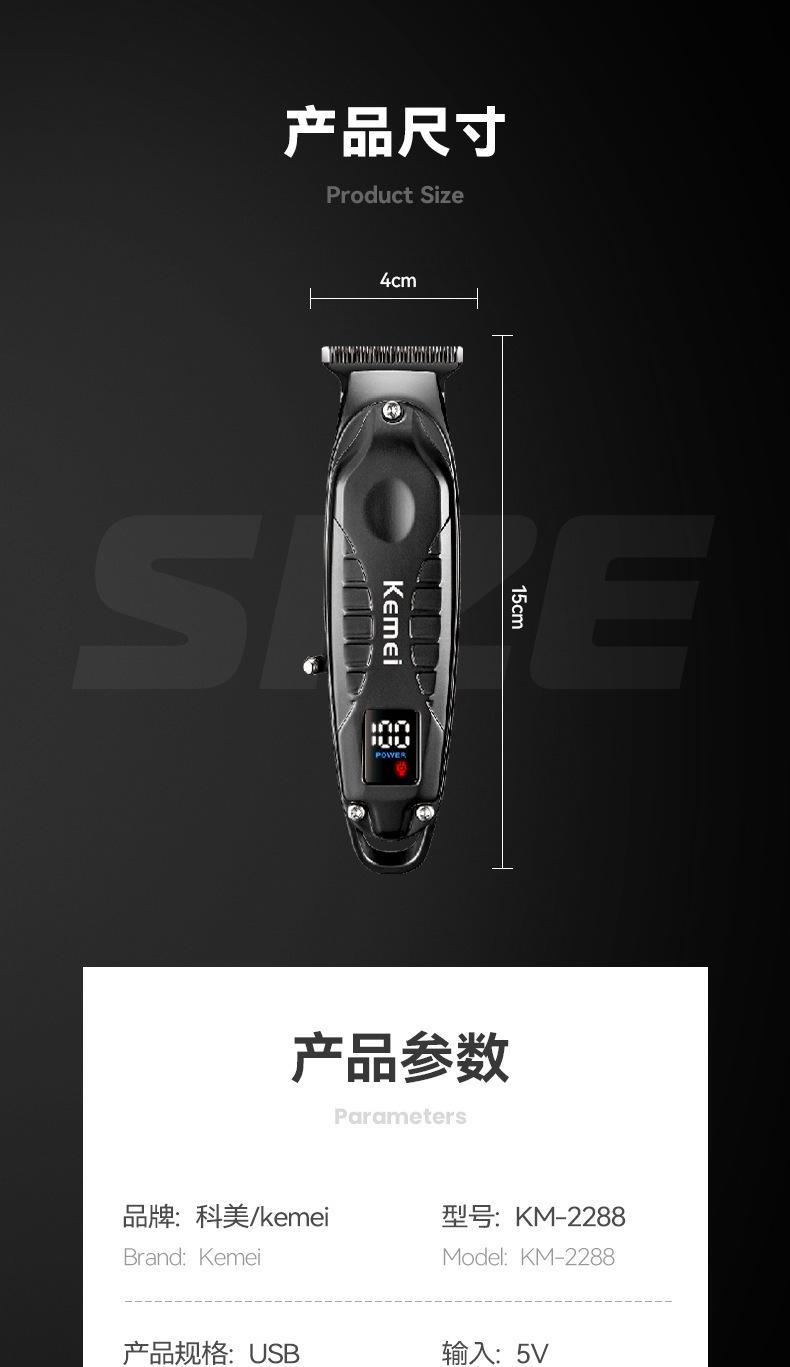Cortadora de pelo Kemei/Kemei KM-2288, nueva, antideslizante, con pantalla digital LED LCD, eléctrica para peluquerías y uso doméstico.