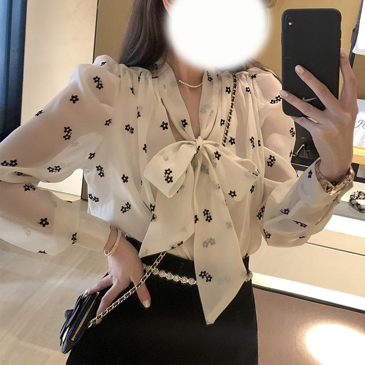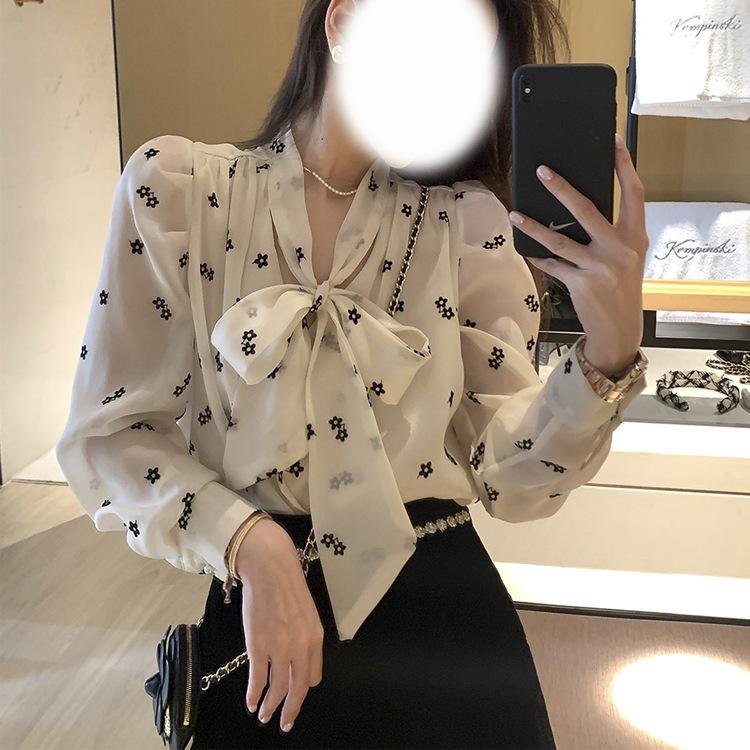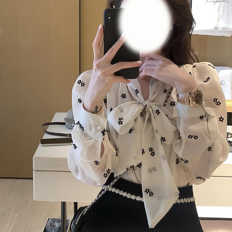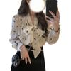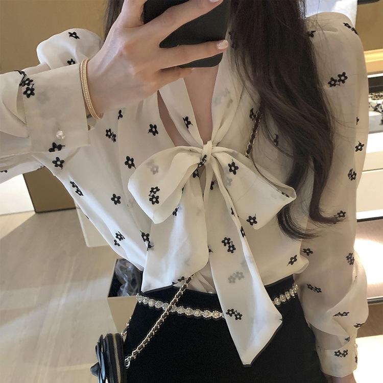 2025 Primavera Nuevo Nicho Francés Cuello en V Chifón Camisa Manga Larga Corta Estilo Coreano Suave Top Moda Femenina