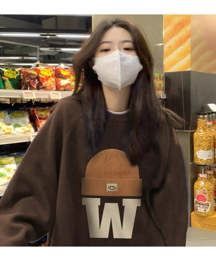 Ropa de mujer, sudadera retro americana de cuello redondo para mujer