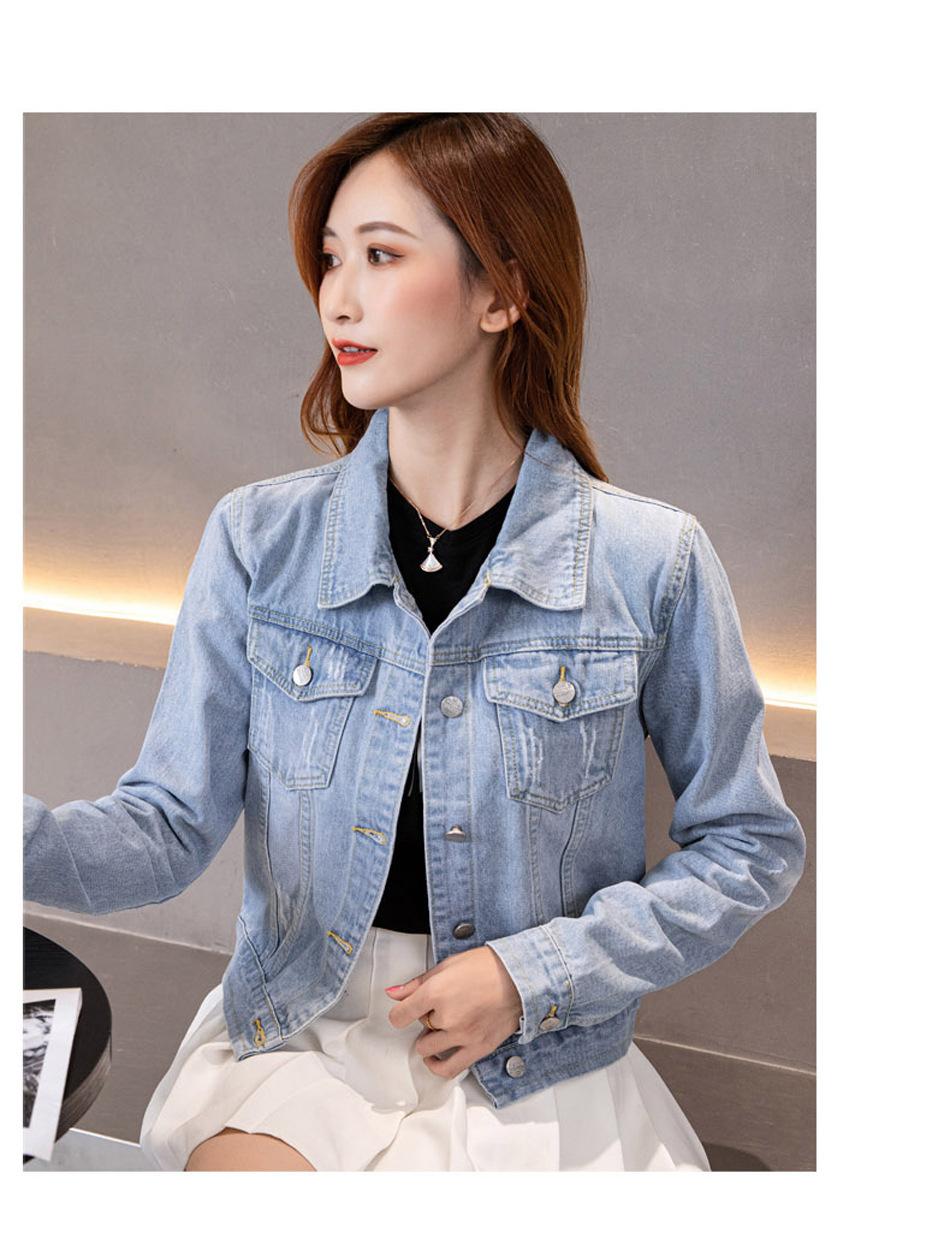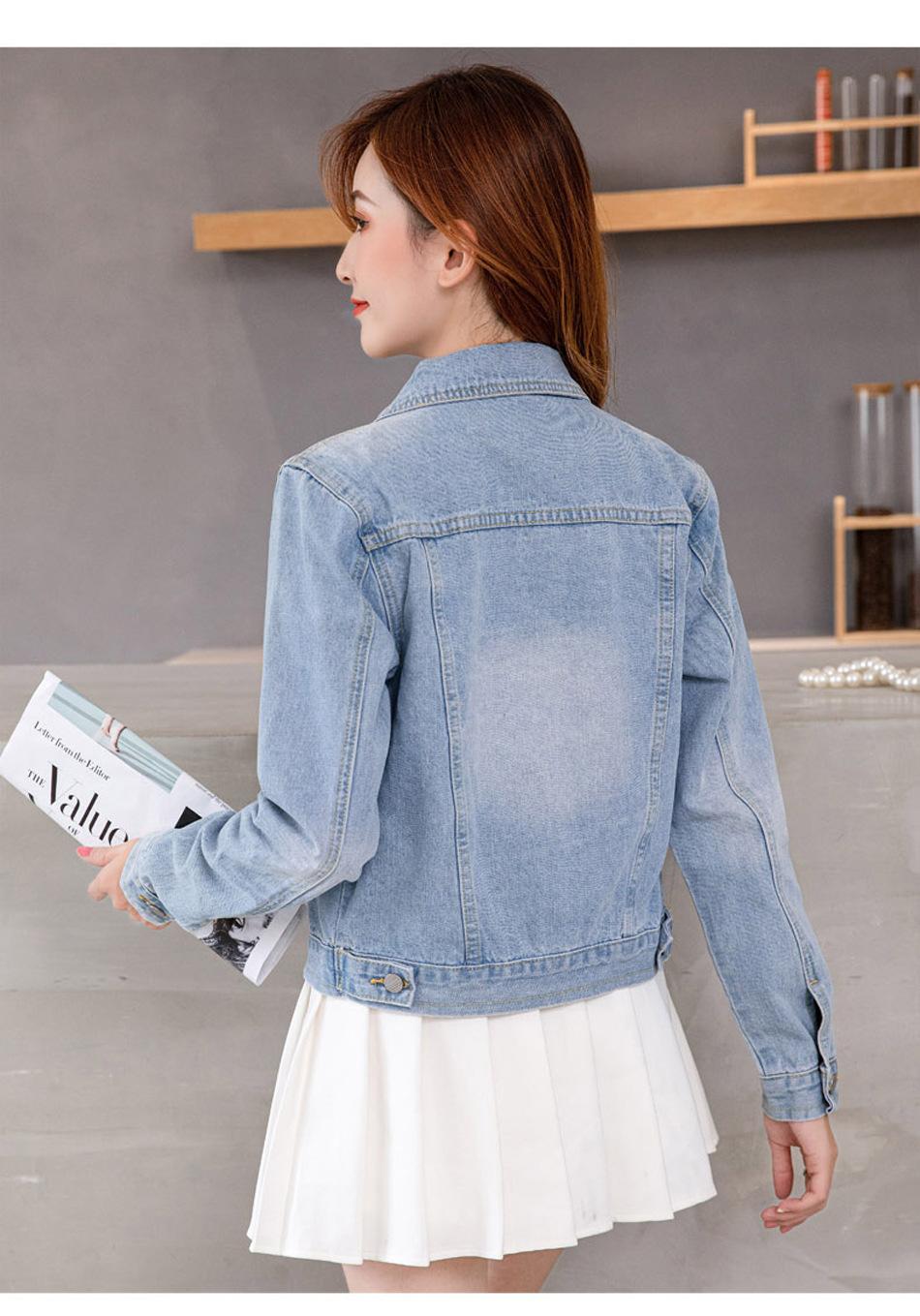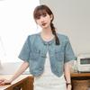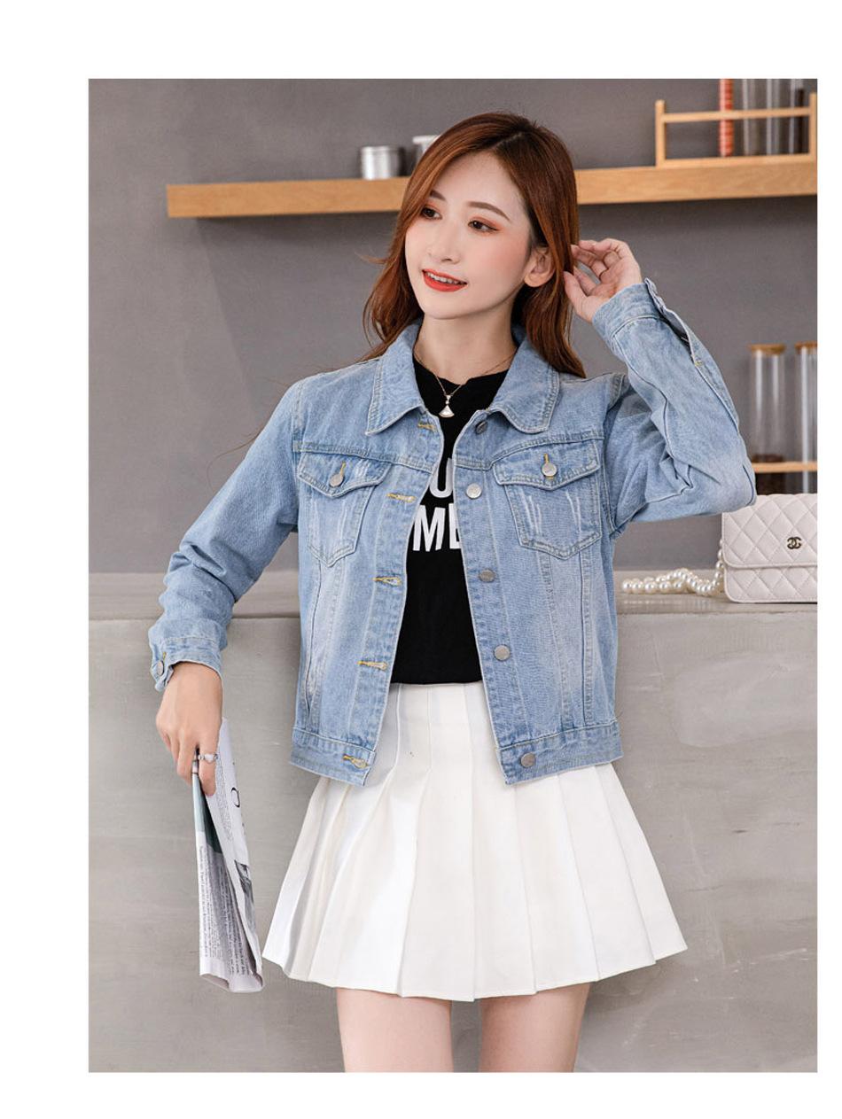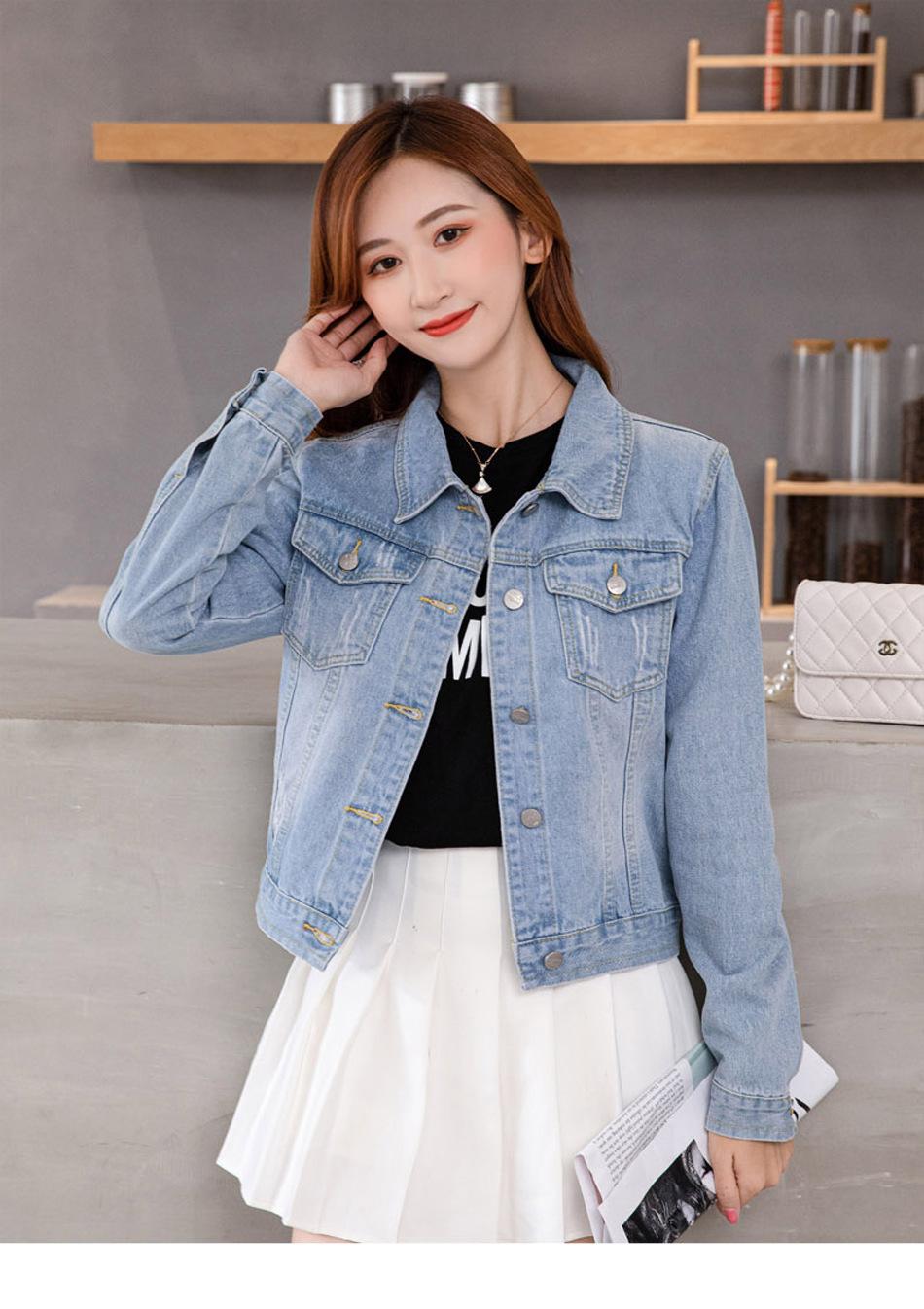 Foto Real de Chaqueta de Mezclilla para Mujer Primavera y Otoño 2024 Nueva Preppy Casual Talla Grande Estilo Hong Kong Chaqueta de Trabajo Top Corto