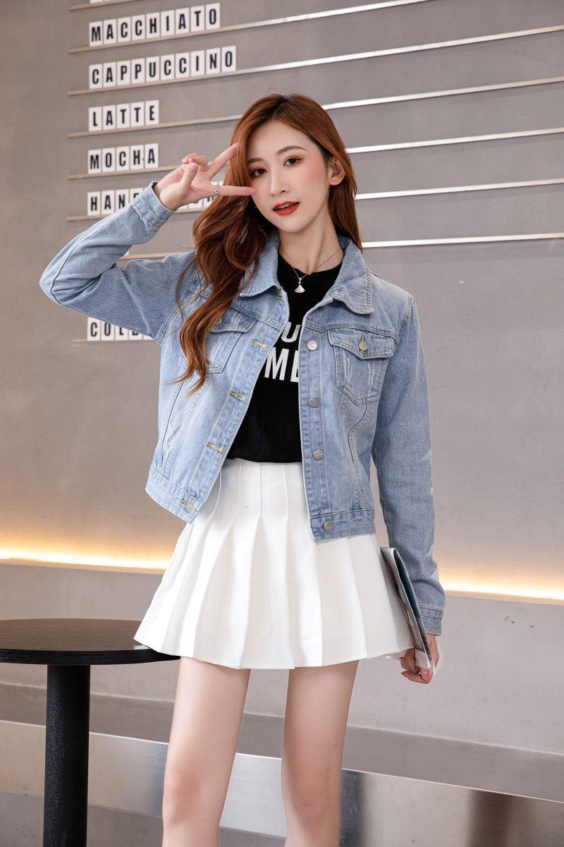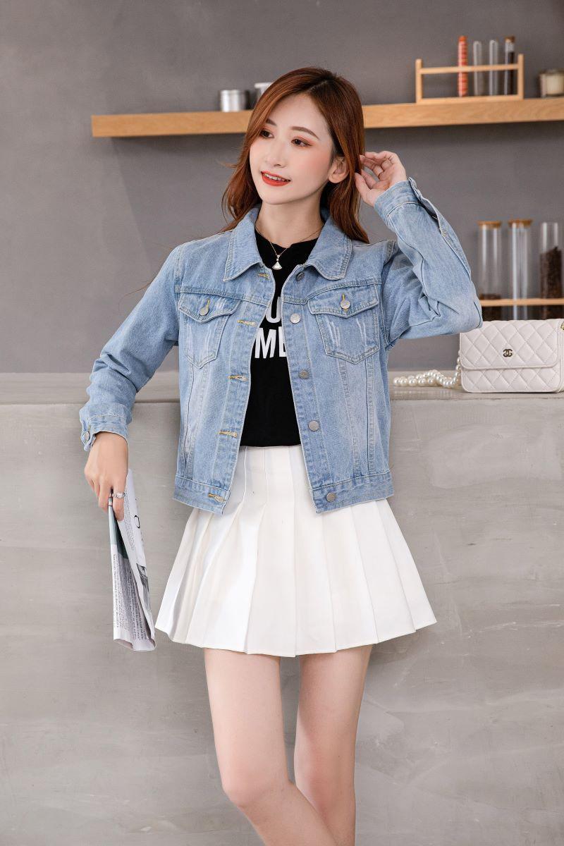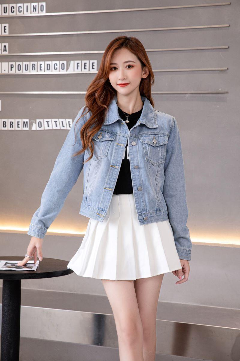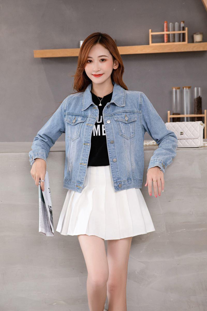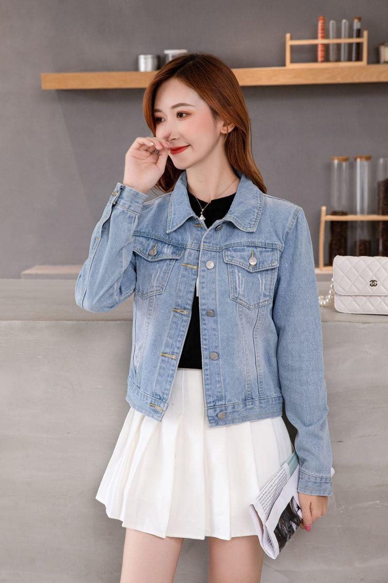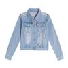 Foto Real de Chaqueta de Mezclilla para Mujer Primavera y Otoño 2024 Nueva Preppy Casual Talla Grande Estilo Hong Kong Chaqueta de Trabajo Top Corto