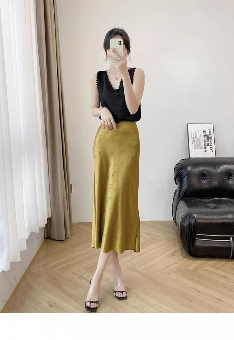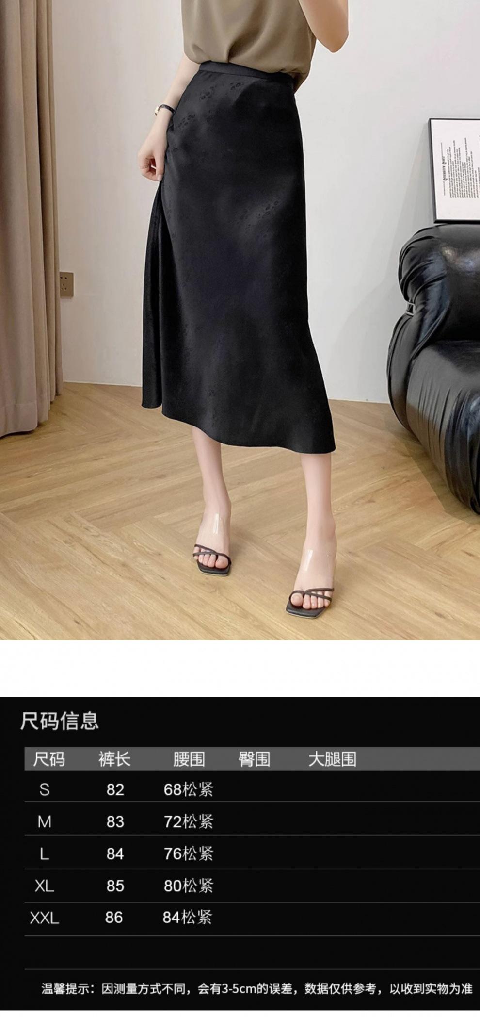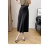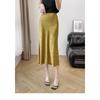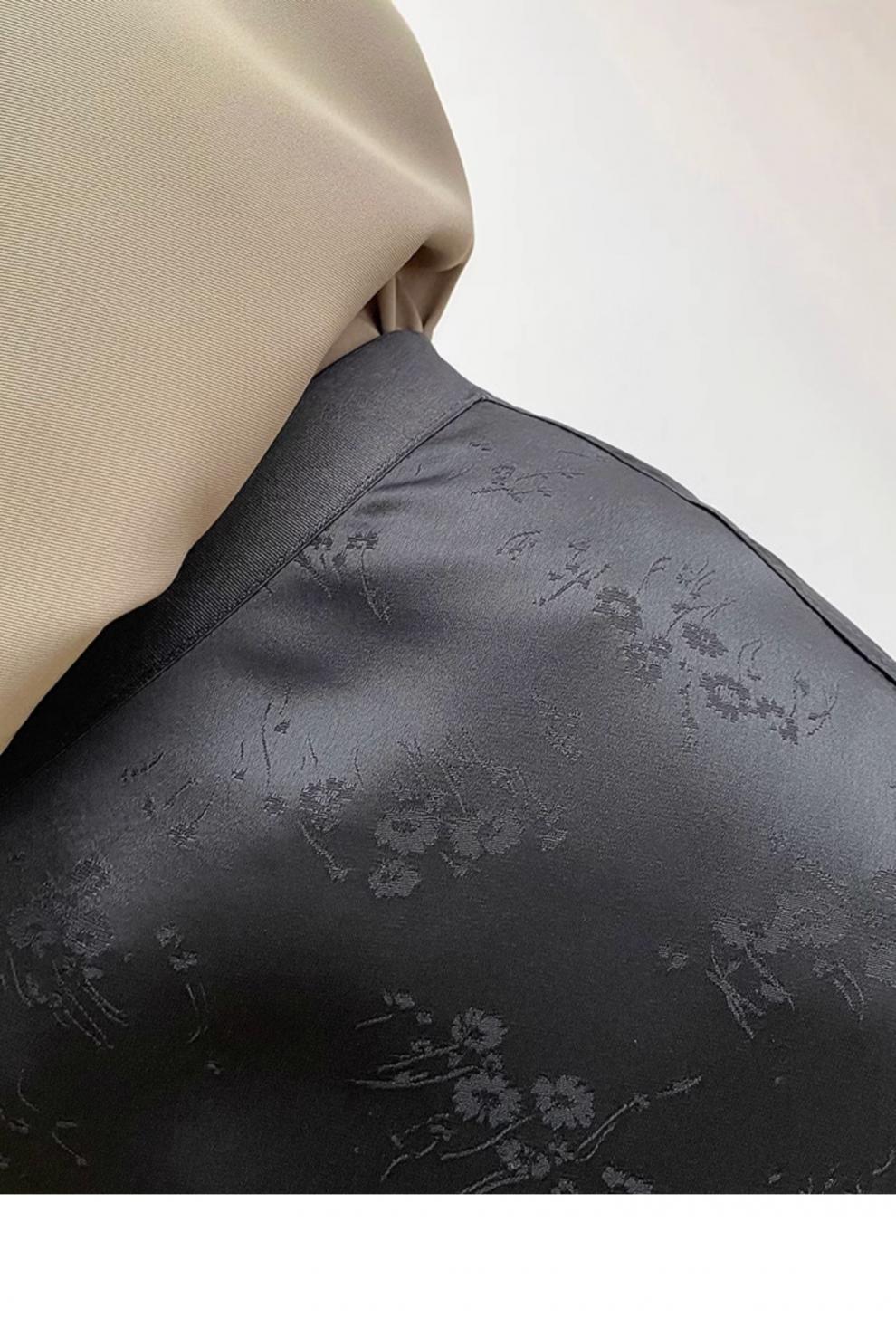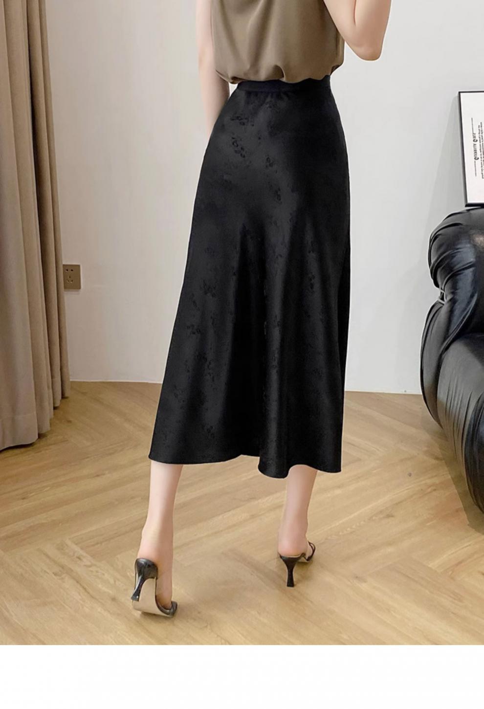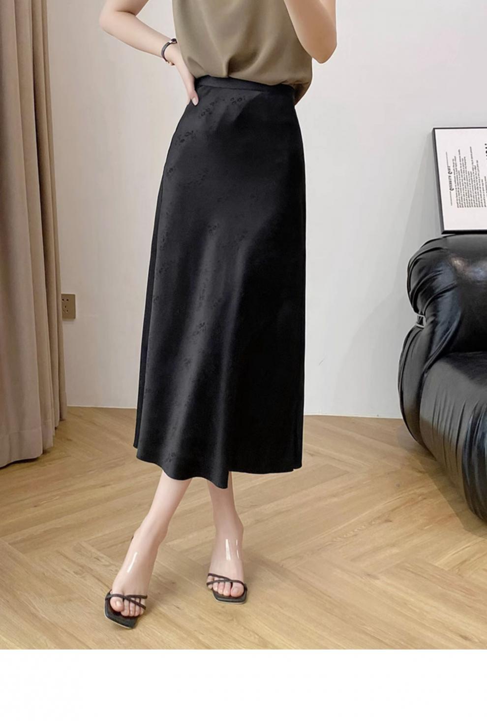 Falda Larga Acampanada de Satén Jacquard Retro con Abertura 2025 Nueva Falda Negra de Acetato con Cintura Elástica para Mujer Verano