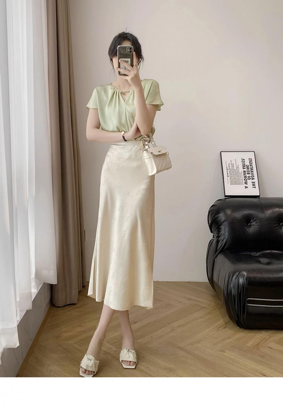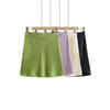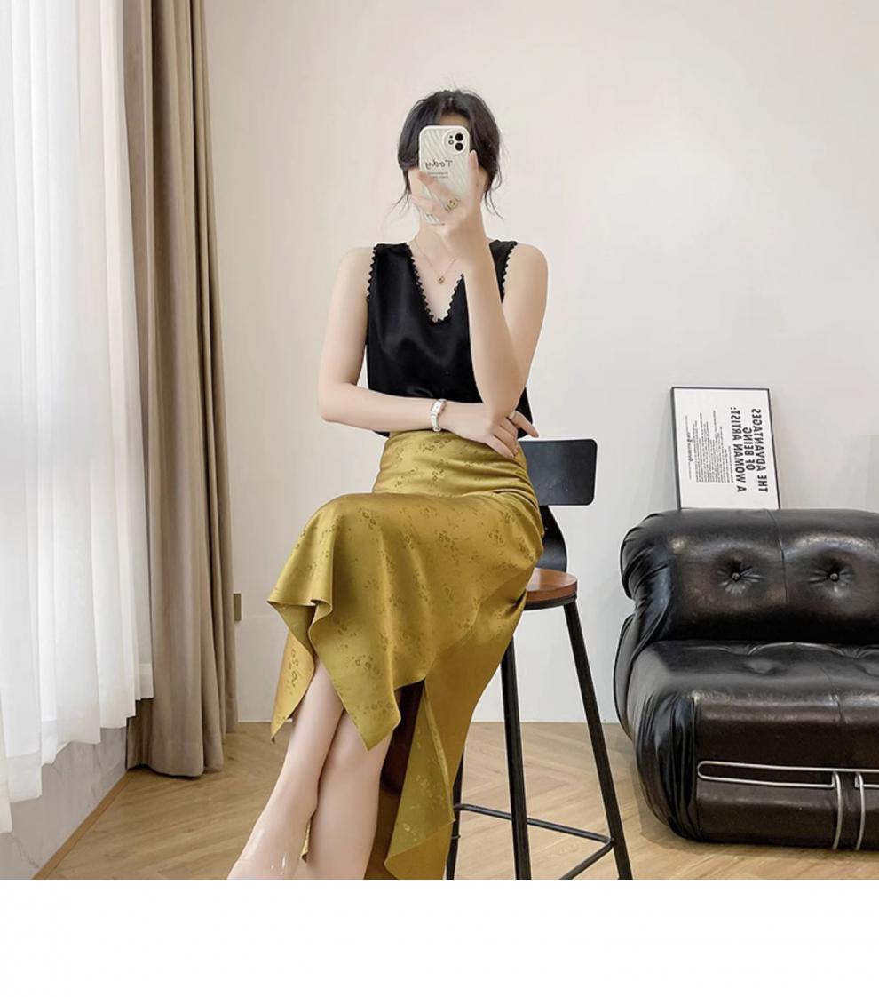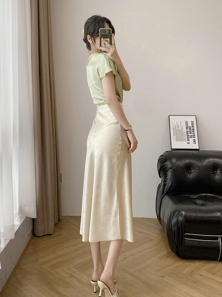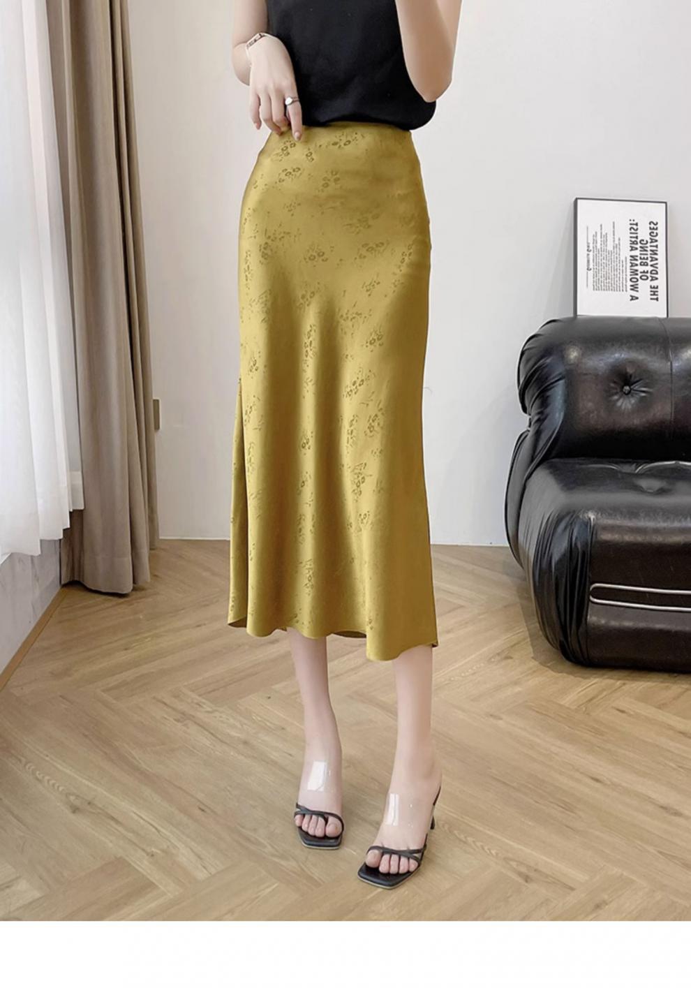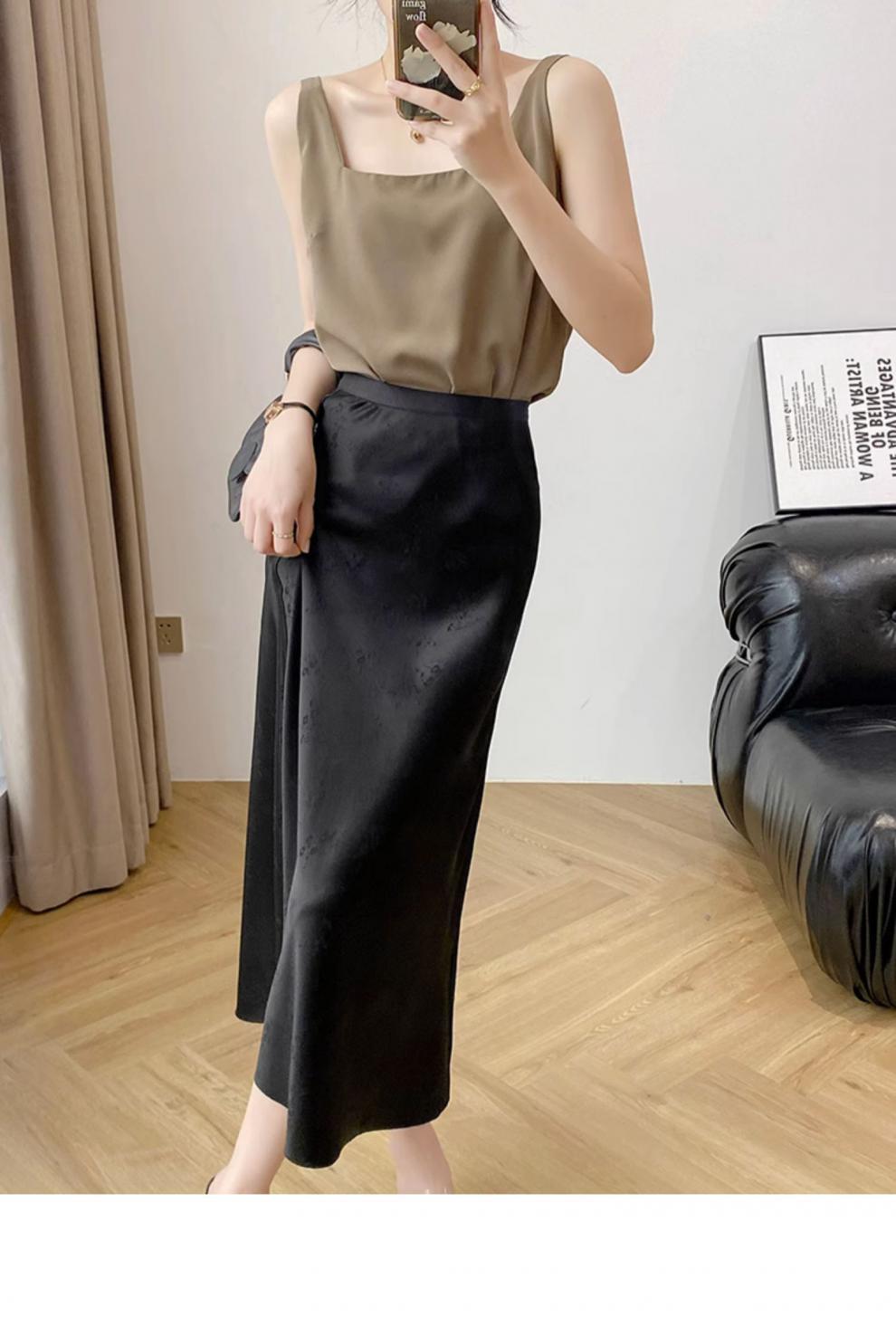Falda Larga Acampanada de Satén Jacquard Retro con Abertura 2025 Nueva Falda Negra de Acetato con Cintura Elástica para Mujer Verano