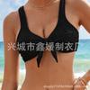 Otoño 2025 Nuevo Traje de Baño Bikini para Mujer Color Sólido Tela Especial Bikini de Moda