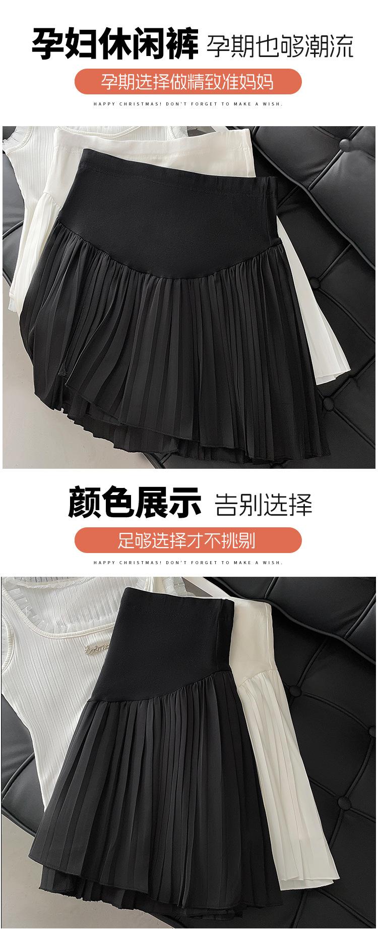 Falda de mujer embarazada de primavera y otoño, falda de línea A con soporte abdominal, falda de mujer embarazada de media longitud, falda plisada, vestido de mujer embarazada de otoño e invierno, vestido de verano
