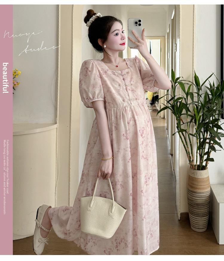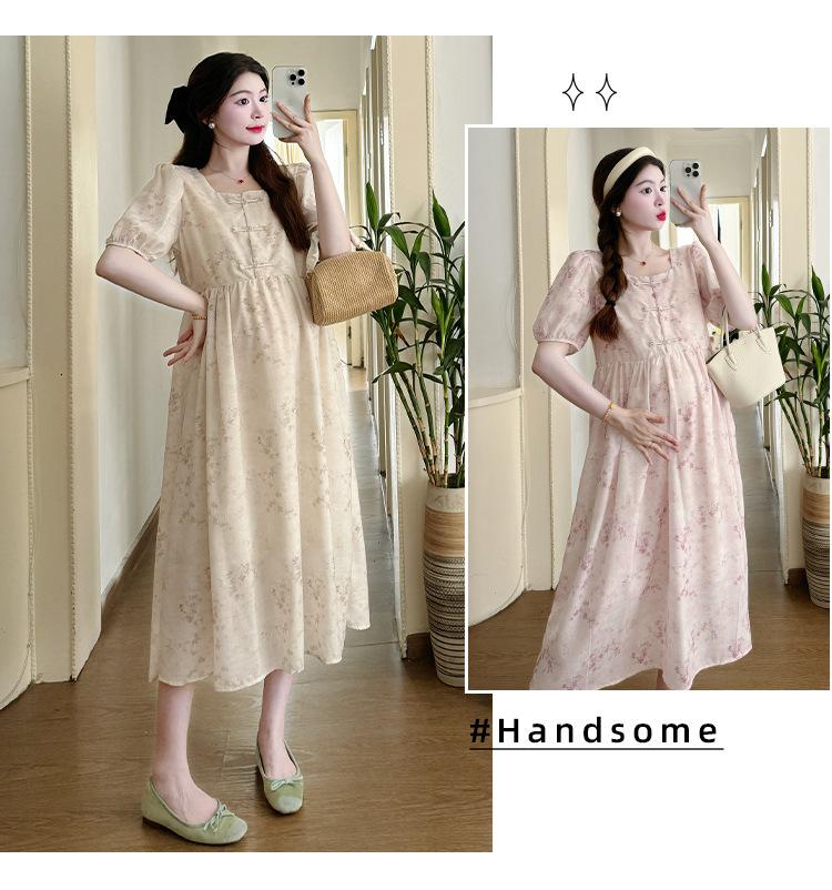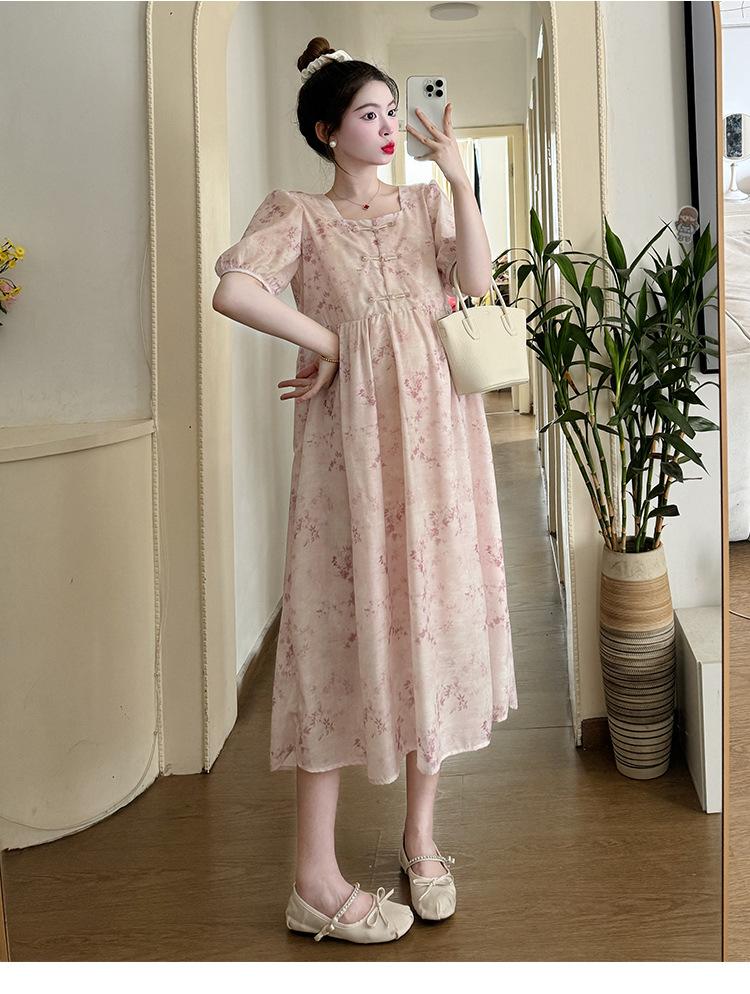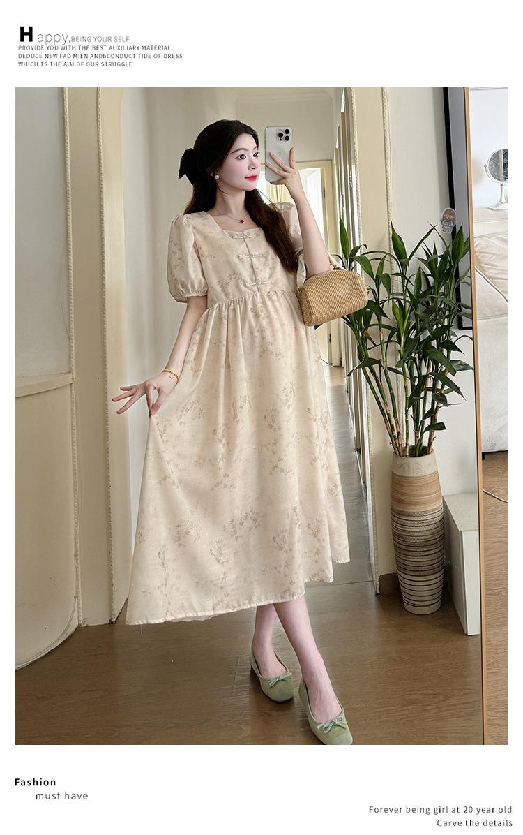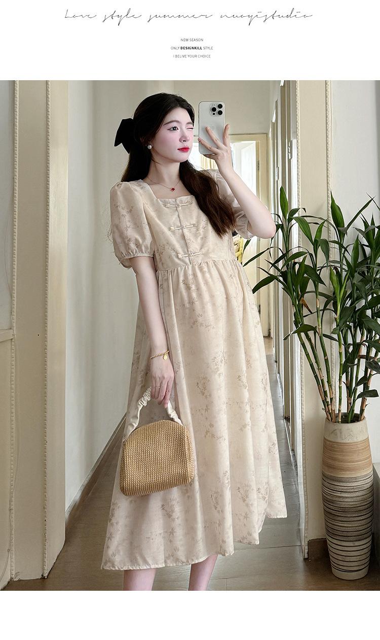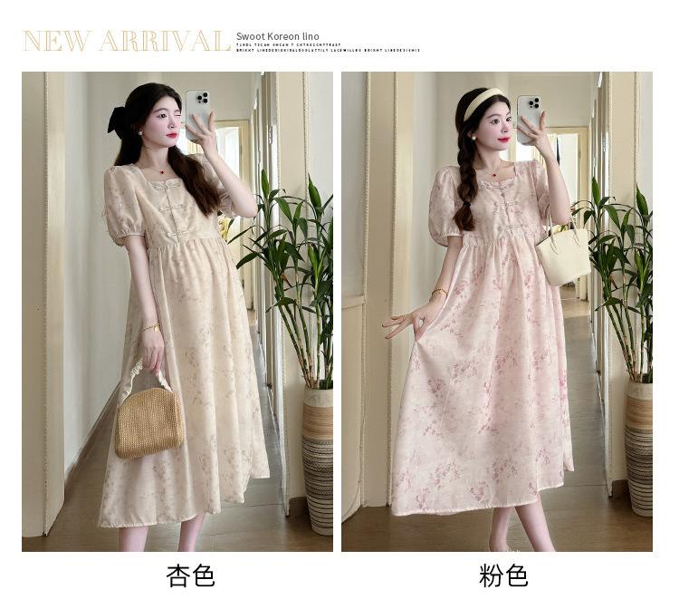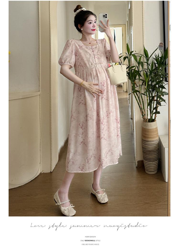 Vestido de Maternidad de Verano 2024 Nuevo Retro Chino Modificado Holgado Talla Grande para Mujeres Embarazadas
