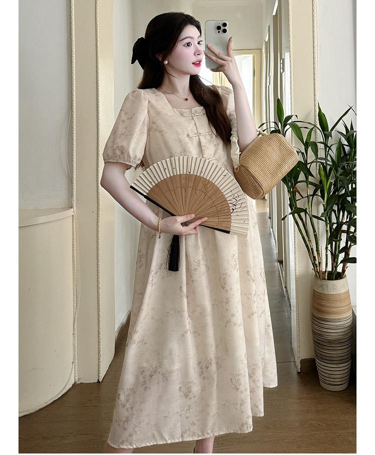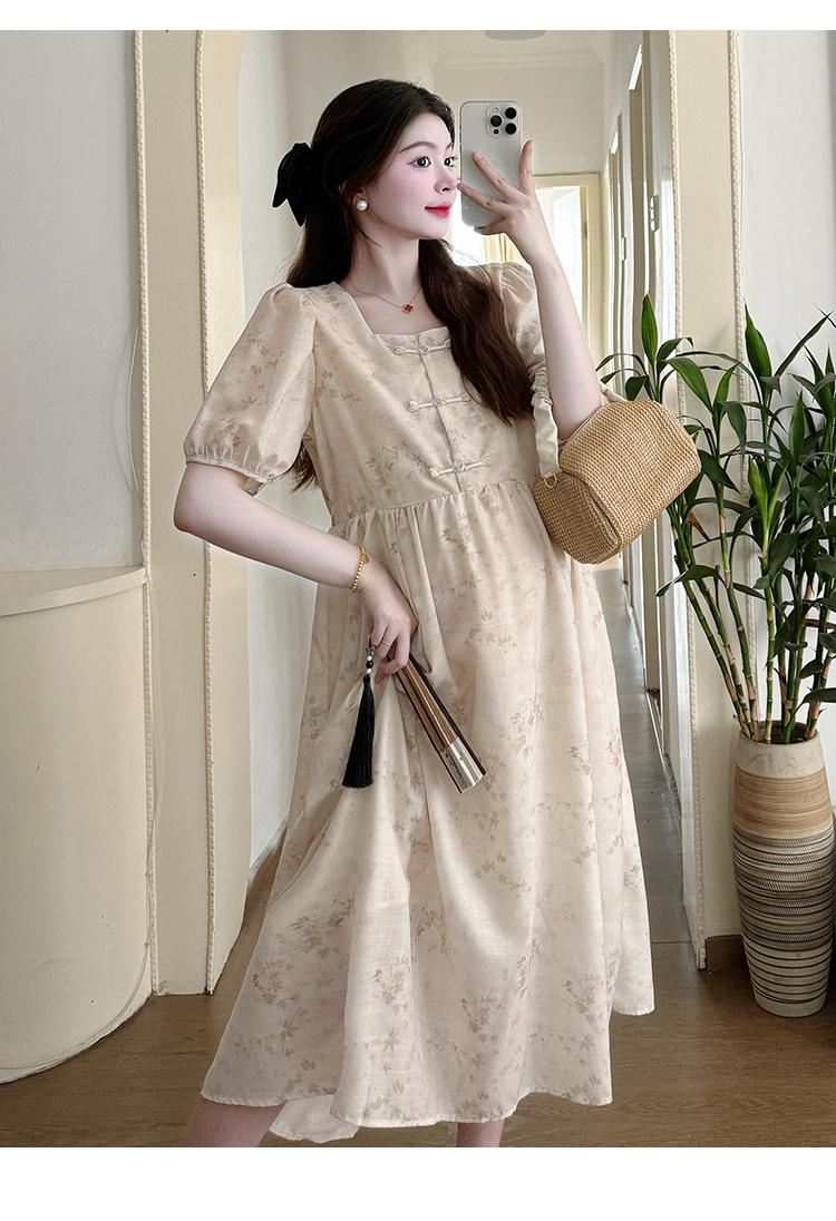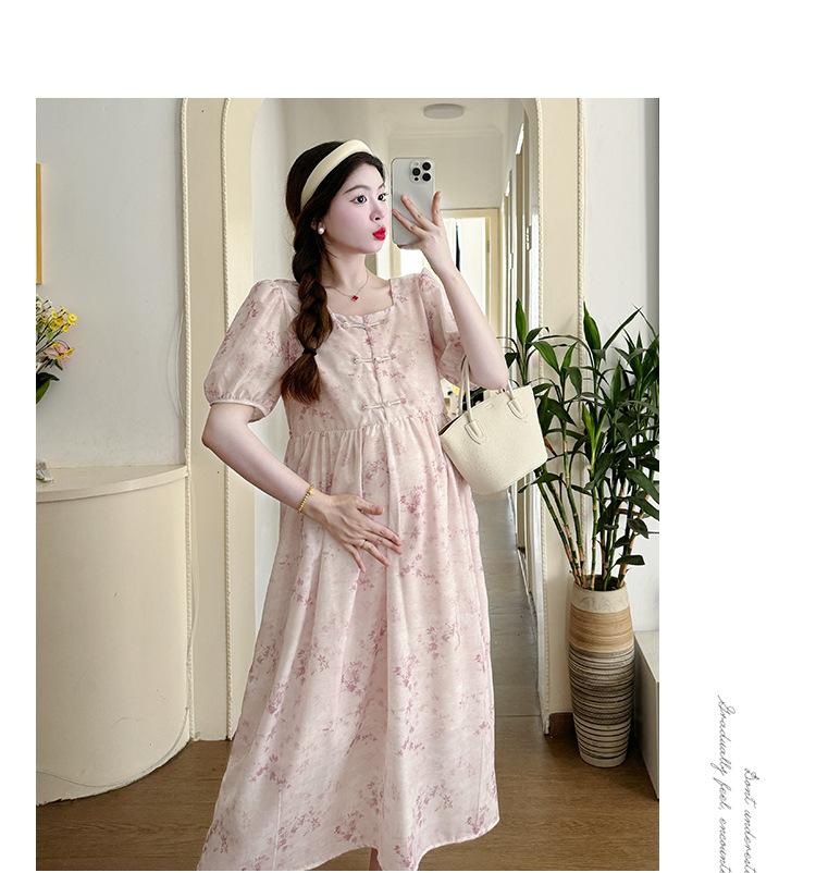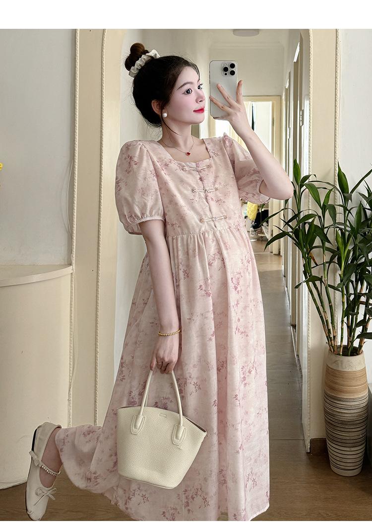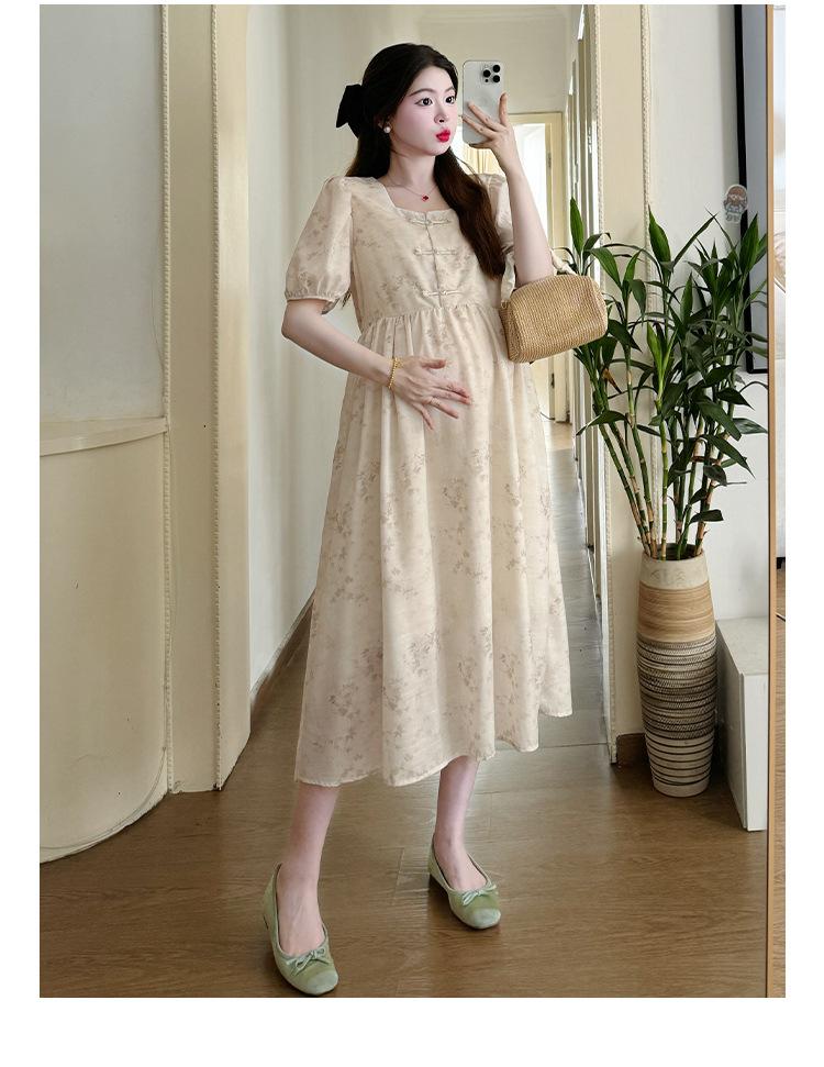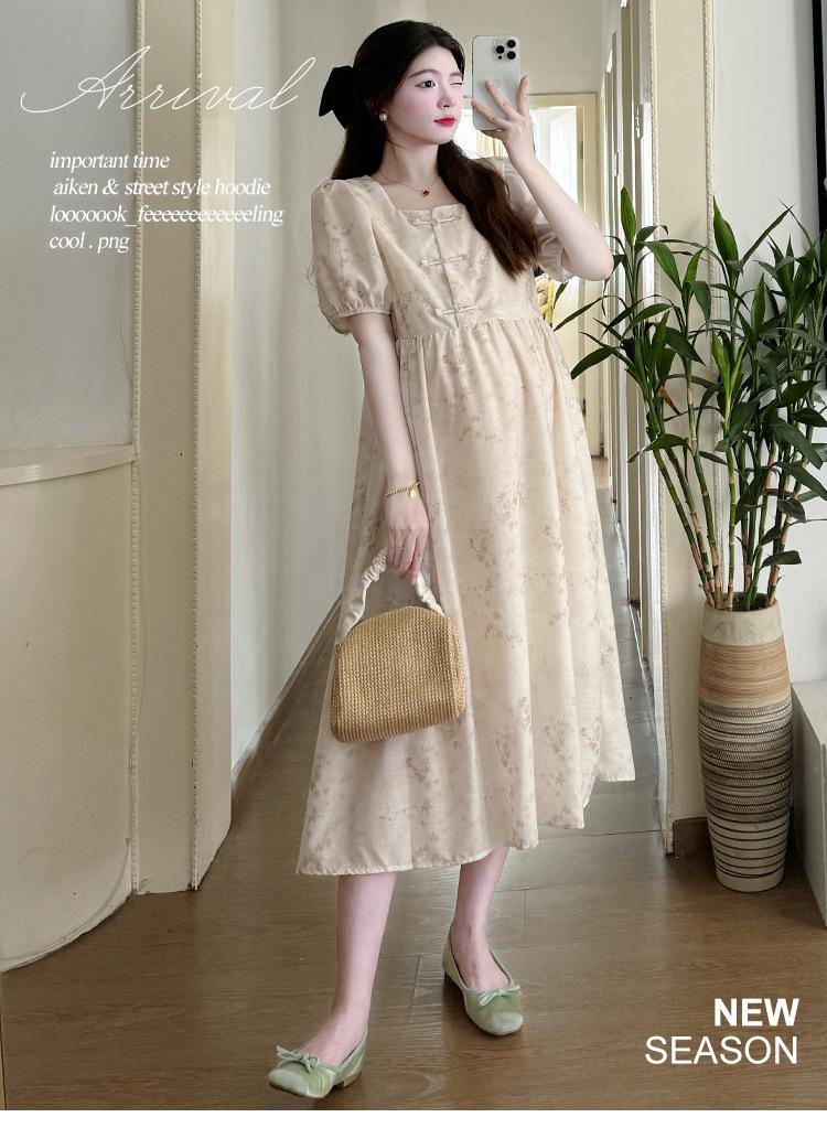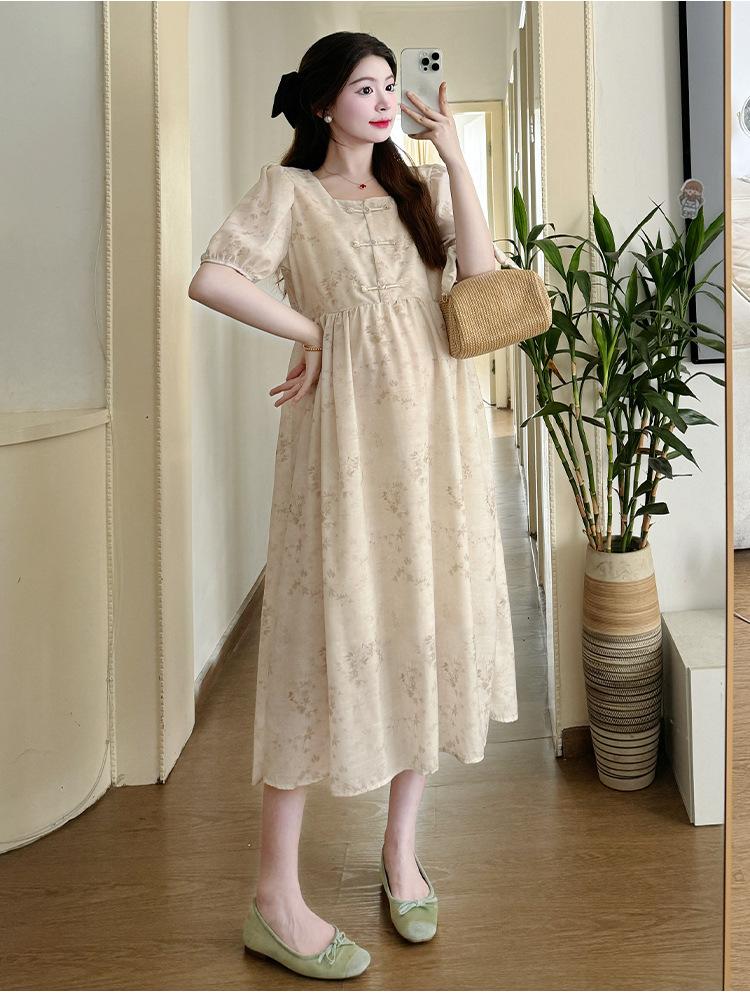 Vestido de Maternidad de Verano 2024 Nuevo Retro Chino Modificado Holgado Talla Grande para Mujeres Embarazadas