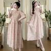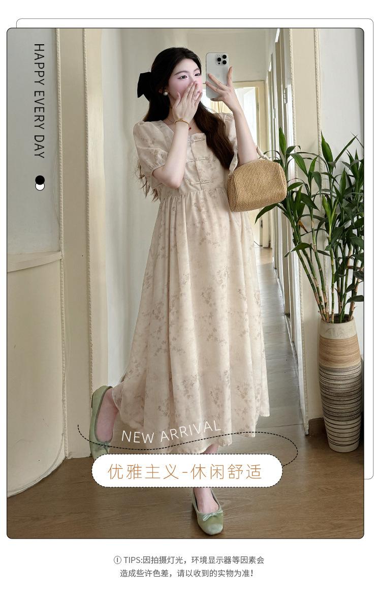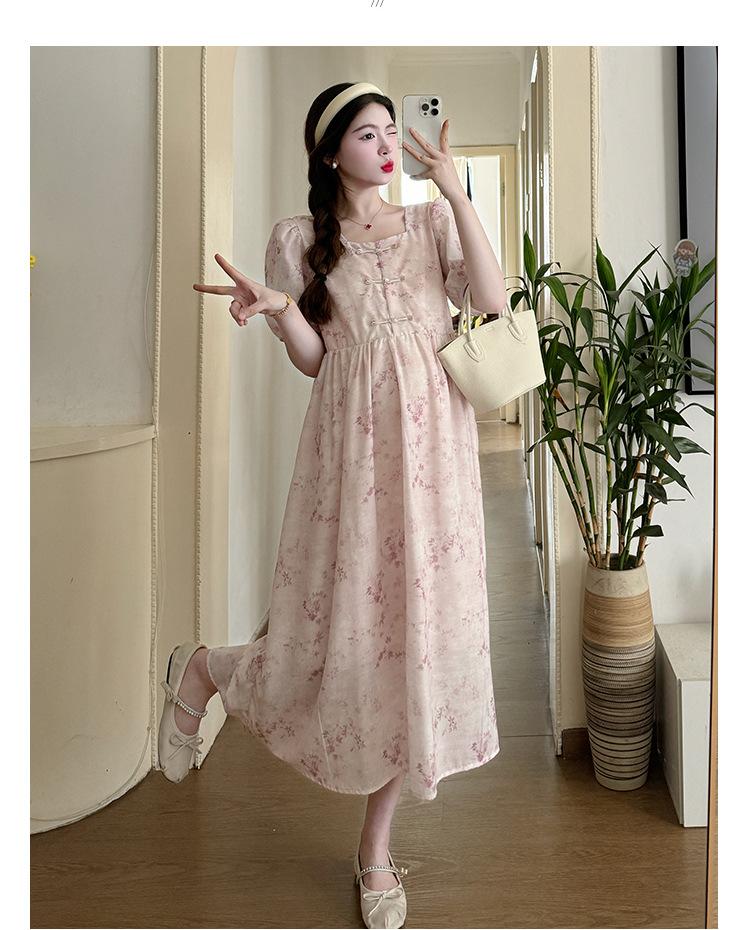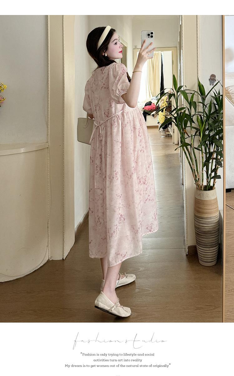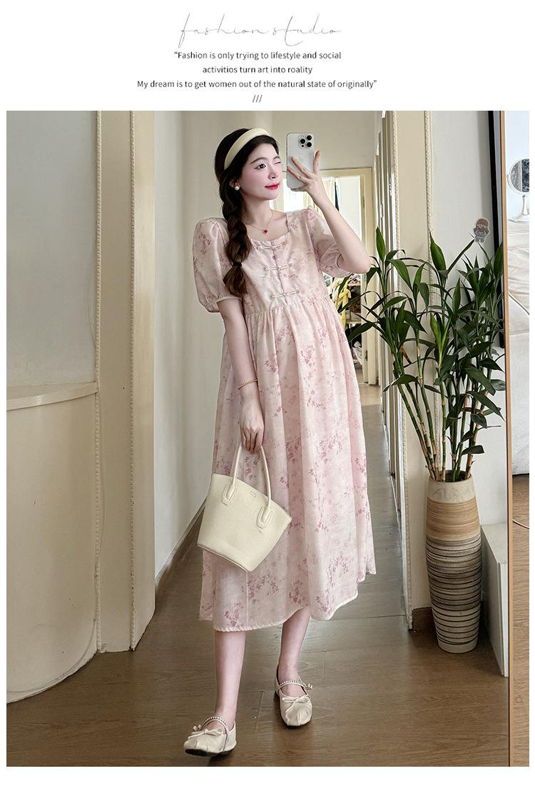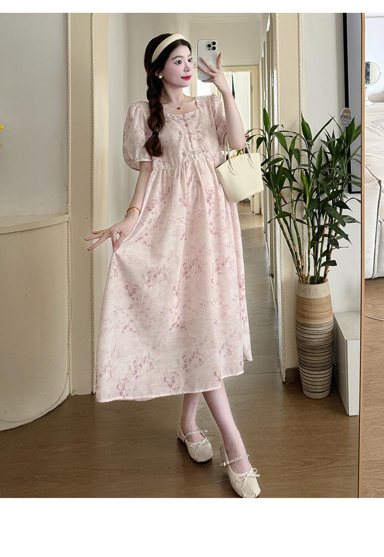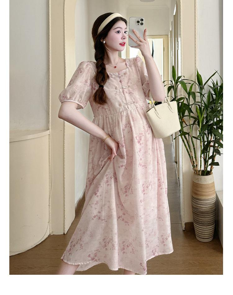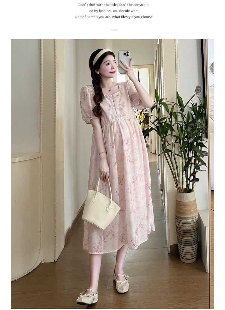 Vestido de Maternidad de Verano 2024 Nuevo Retro Chino Modificado Holgado Talla Grande para Mujeres Embarazadas