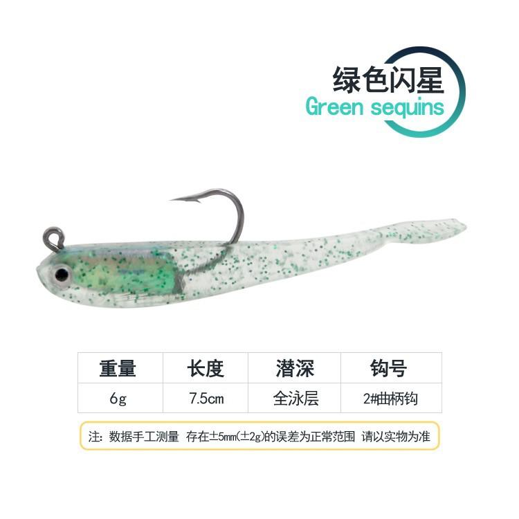 6g7.5cm pack lead fork tail green flash Star (5 pcs)
