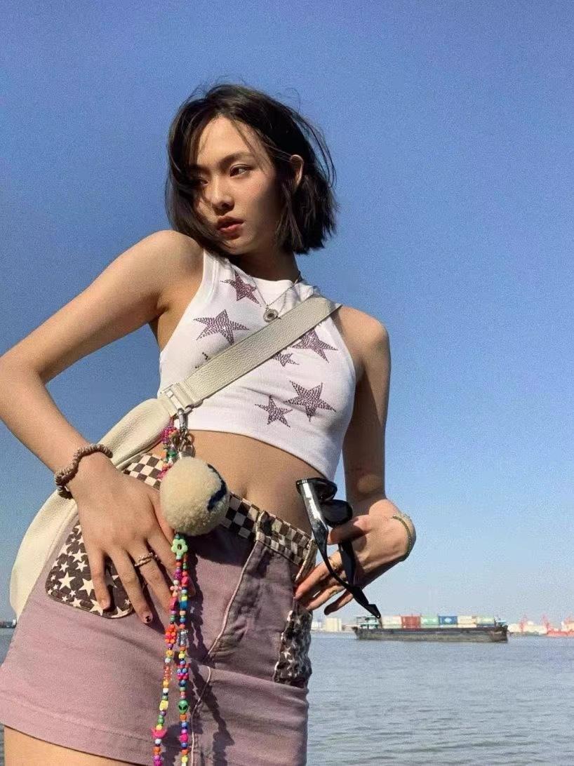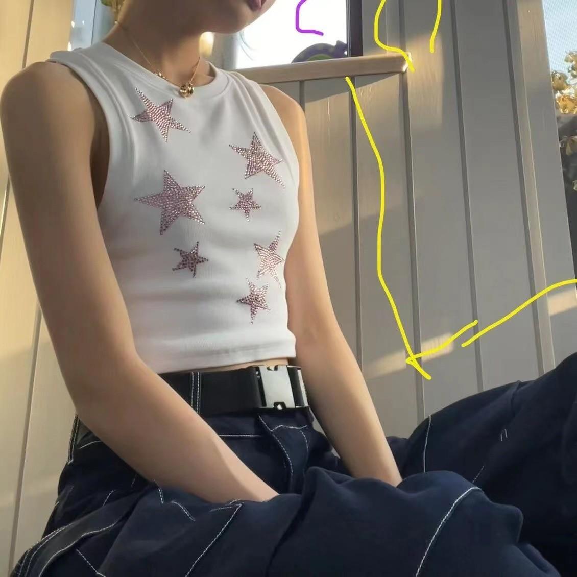 Chaleco Casual Callejero Europeo y Americano 2024 Top sin Mangas con Estampado de Pedrería de Estrella de Cinco Puntas Chaleco de Verano para Mujer