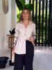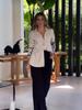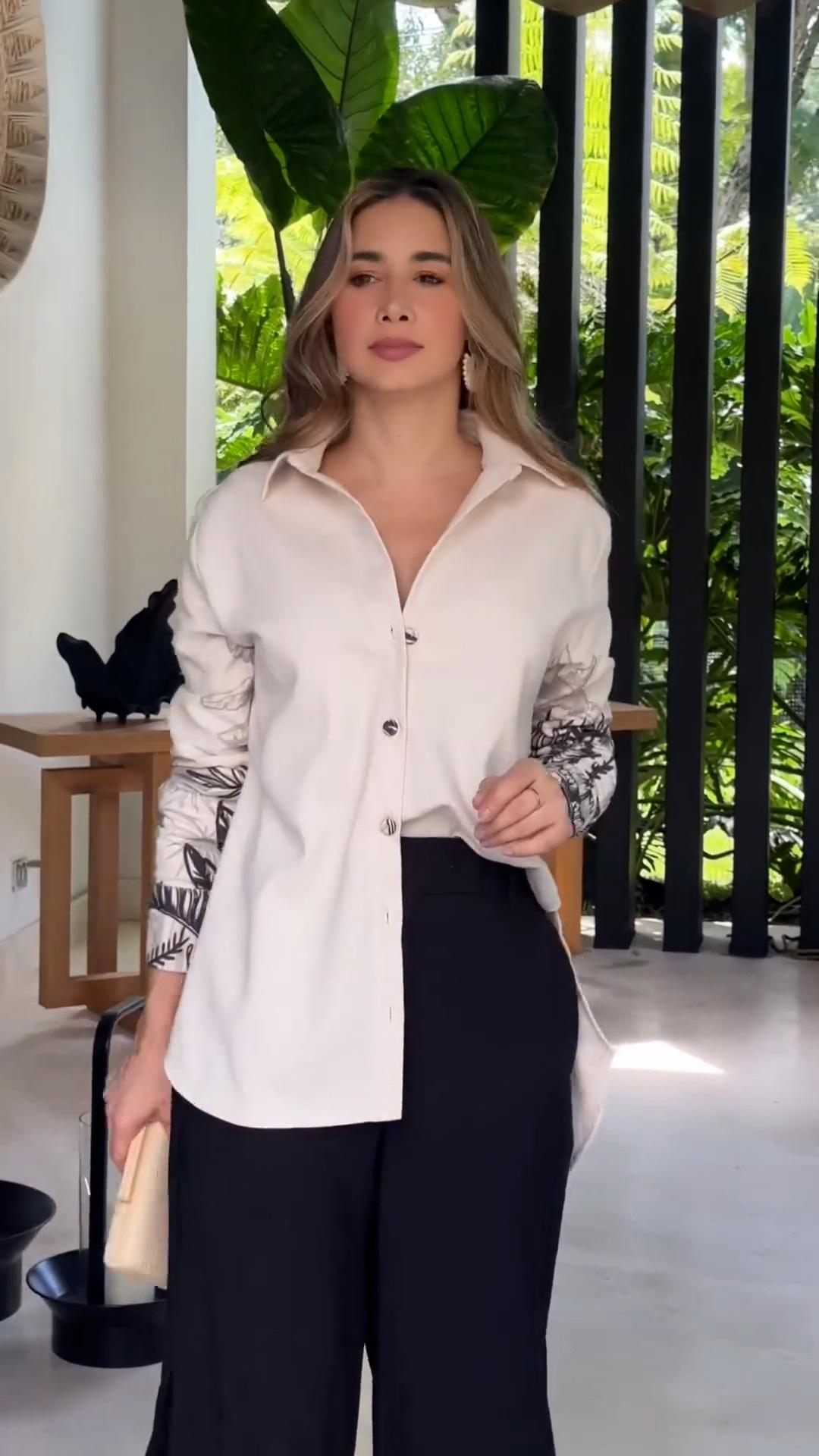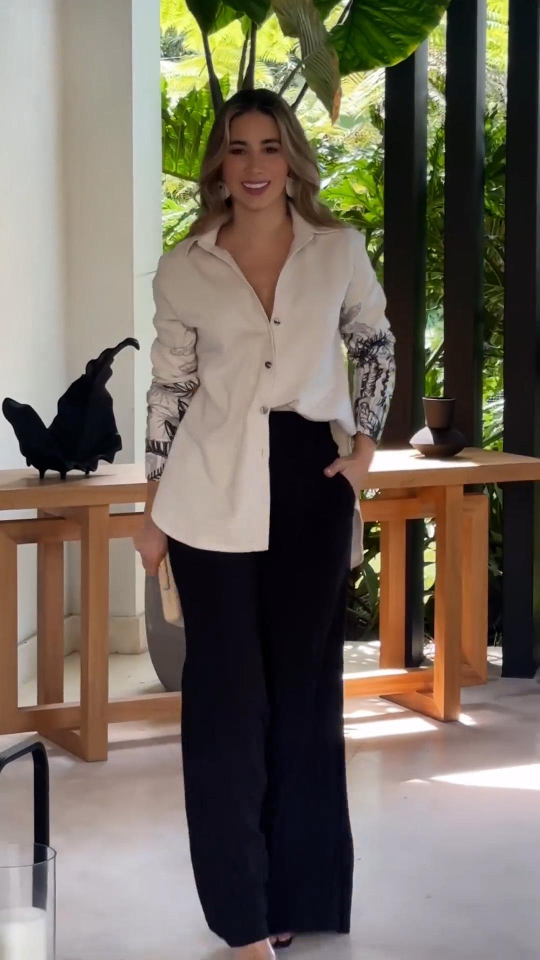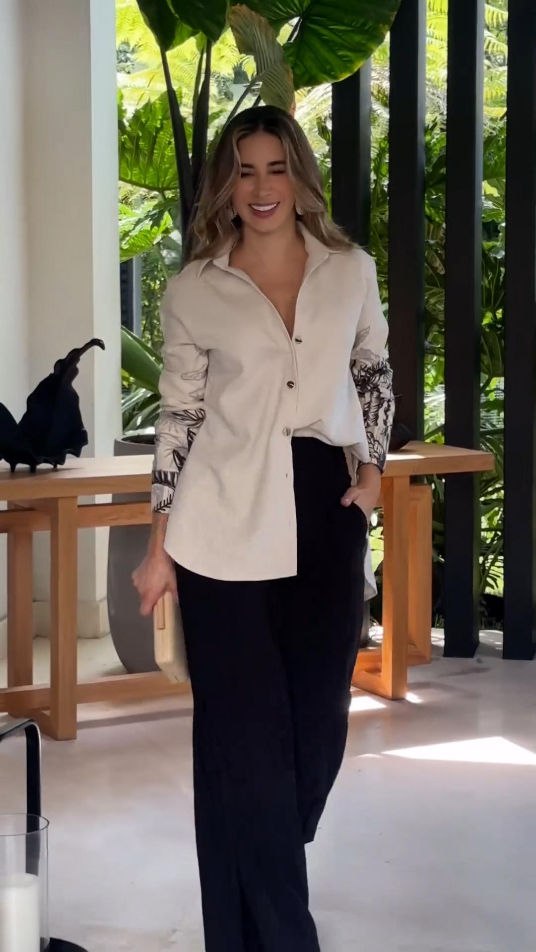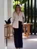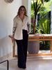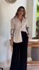 Nuevo Otoño 2023 Europeo y Americano Amazon Camisa Blanca Irregular Top Pantalones con Abertura Conjunto de Dos Piezas