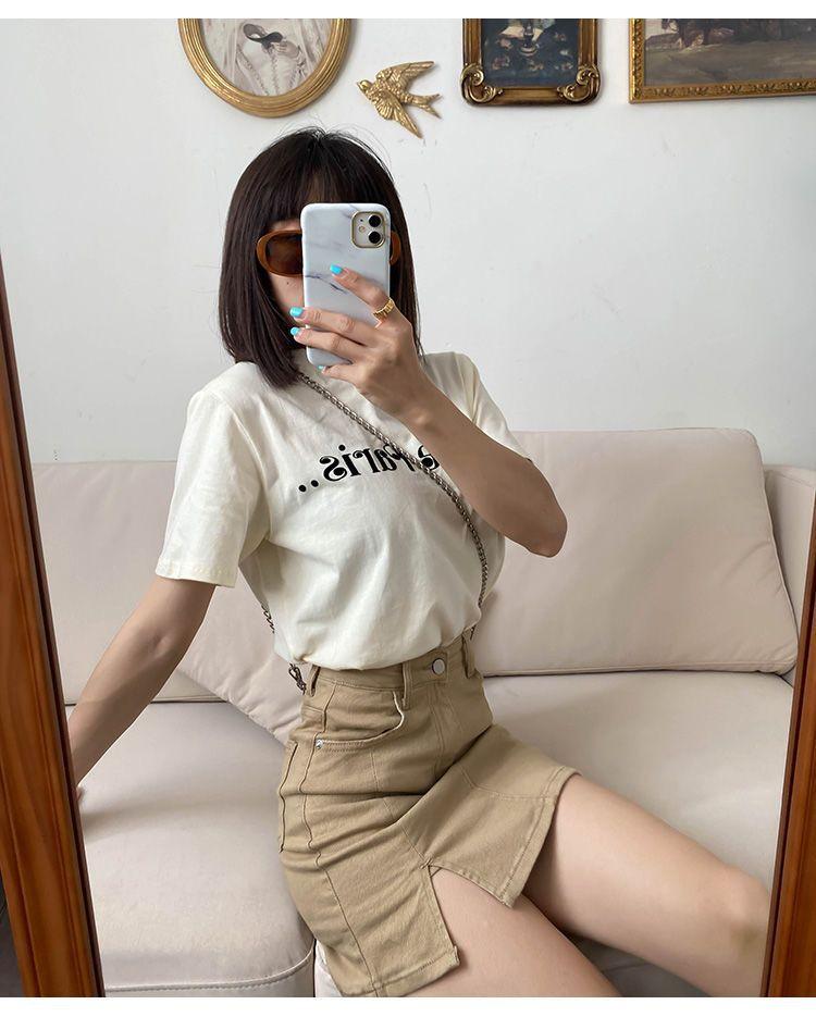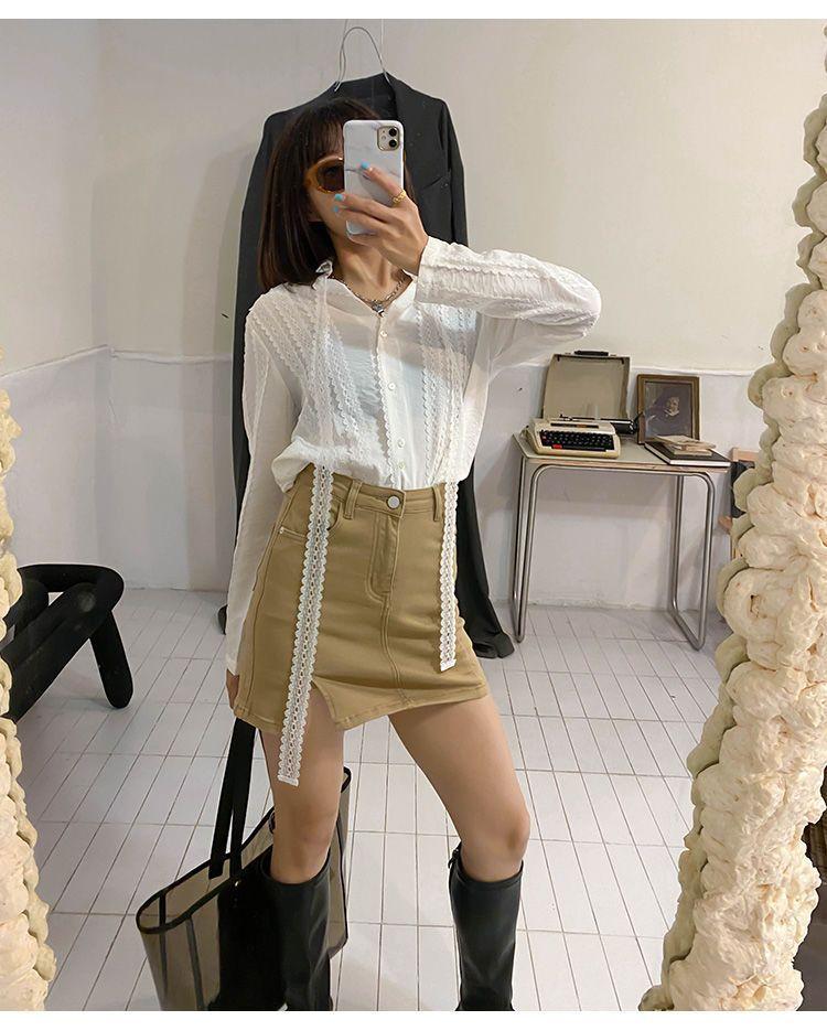 Khaki [Denim Split Skirt]]