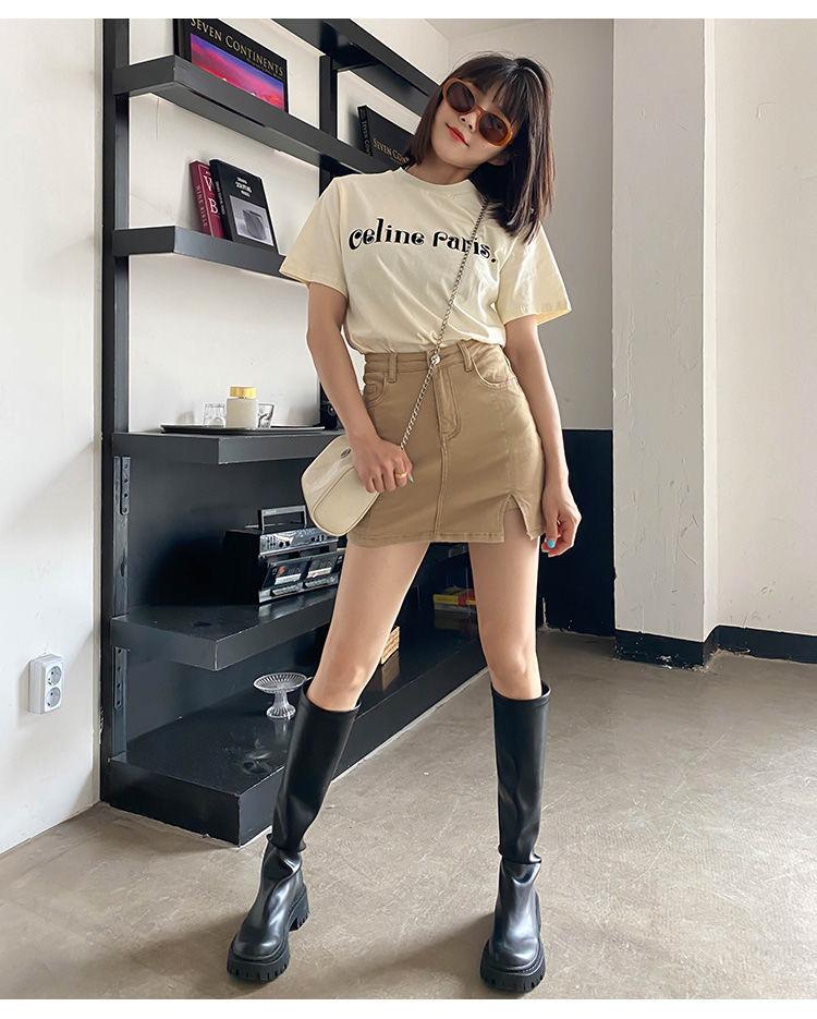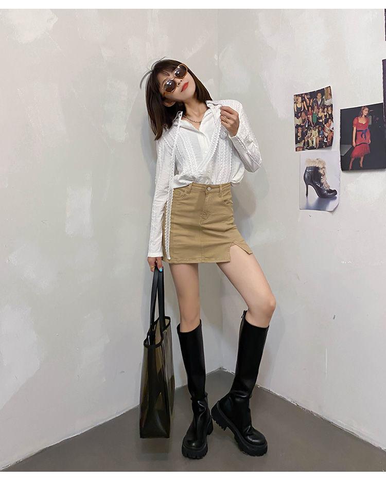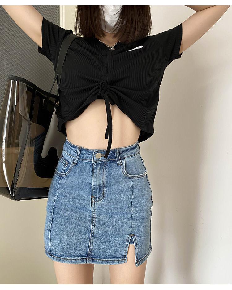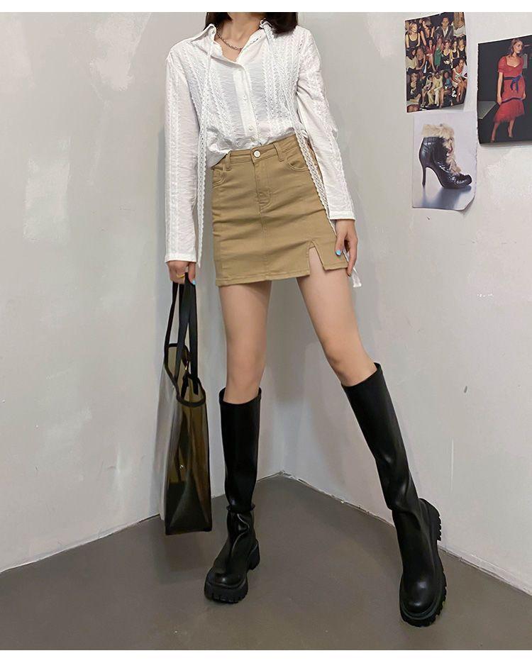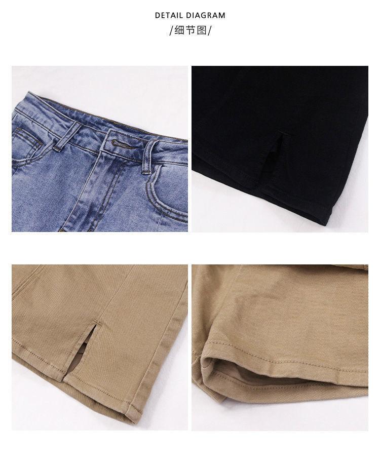 Khaki [Denim Split Skirt]], Black cowboy split skirt], Blue [Denim Split Skirt]], Gray [Denim Split Skirt]]