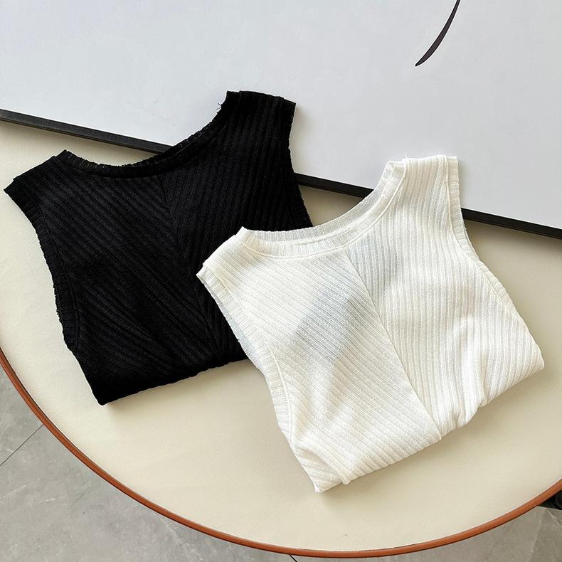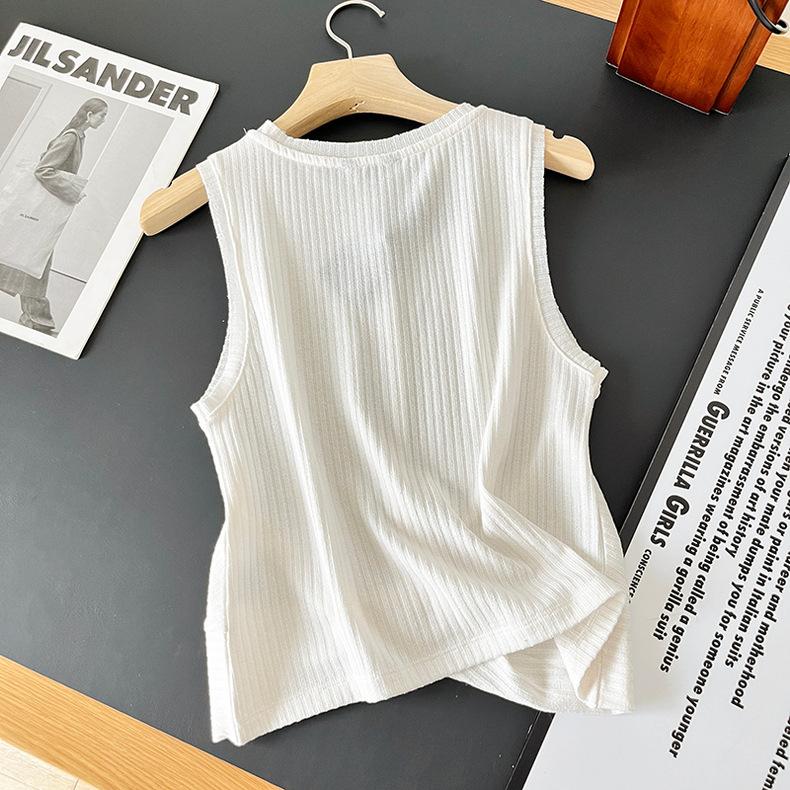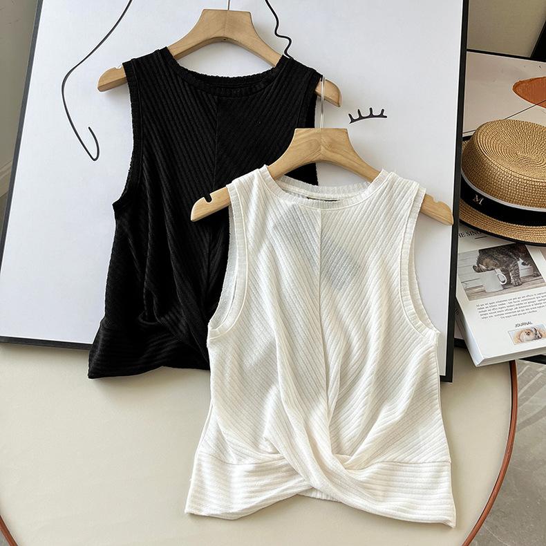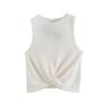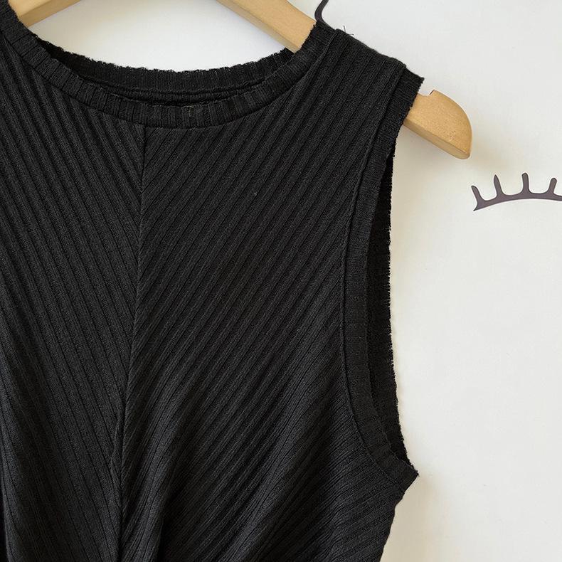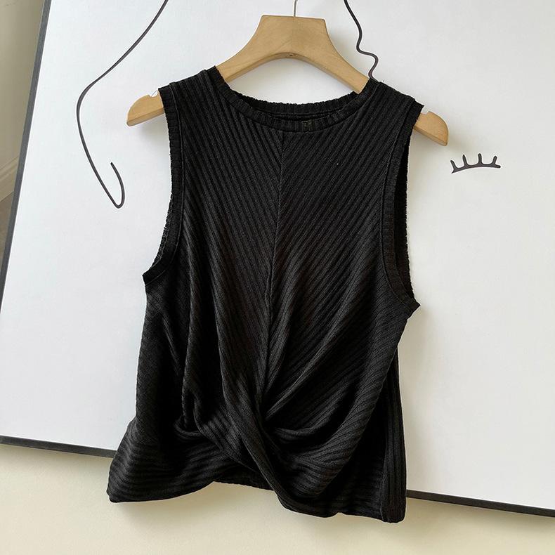 Top Corto Ligero de Lino Plisado de Cuello Redondo sin Mangas Estilo Europeo y Americano 2024 Verano Nuevo Camiseta Chaleco de Color Puro para Mujer