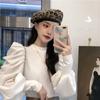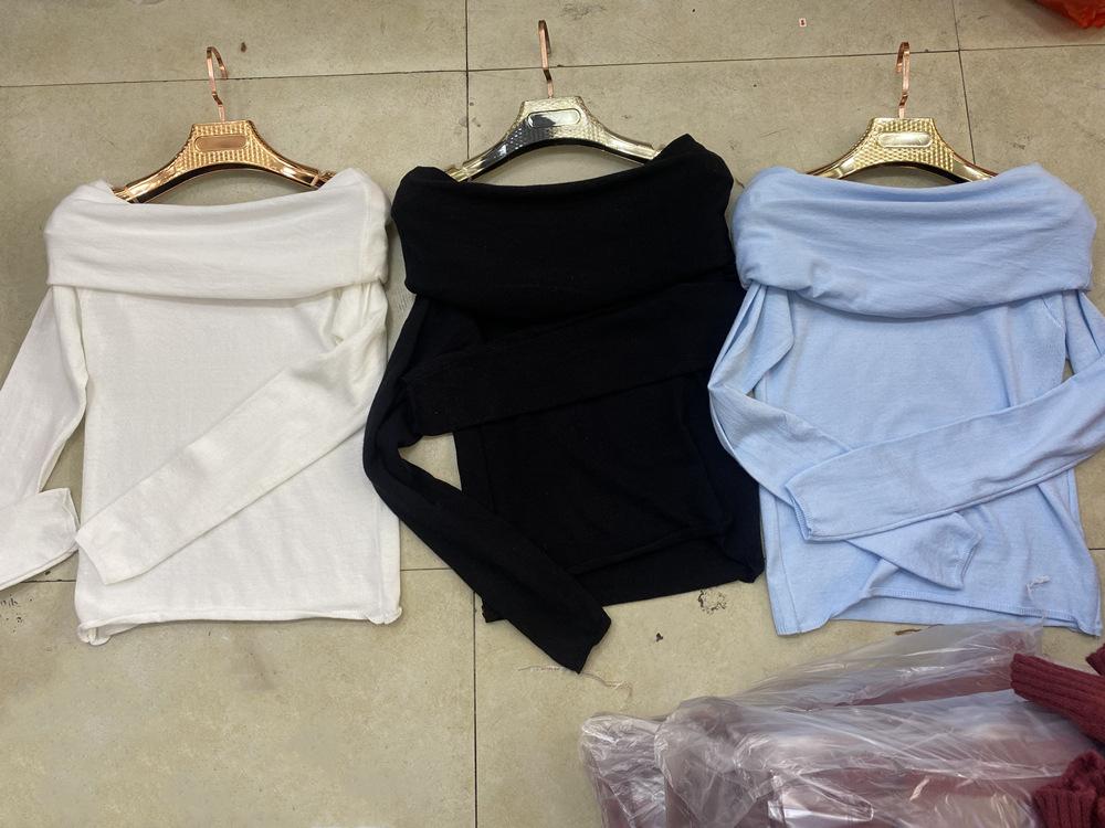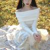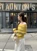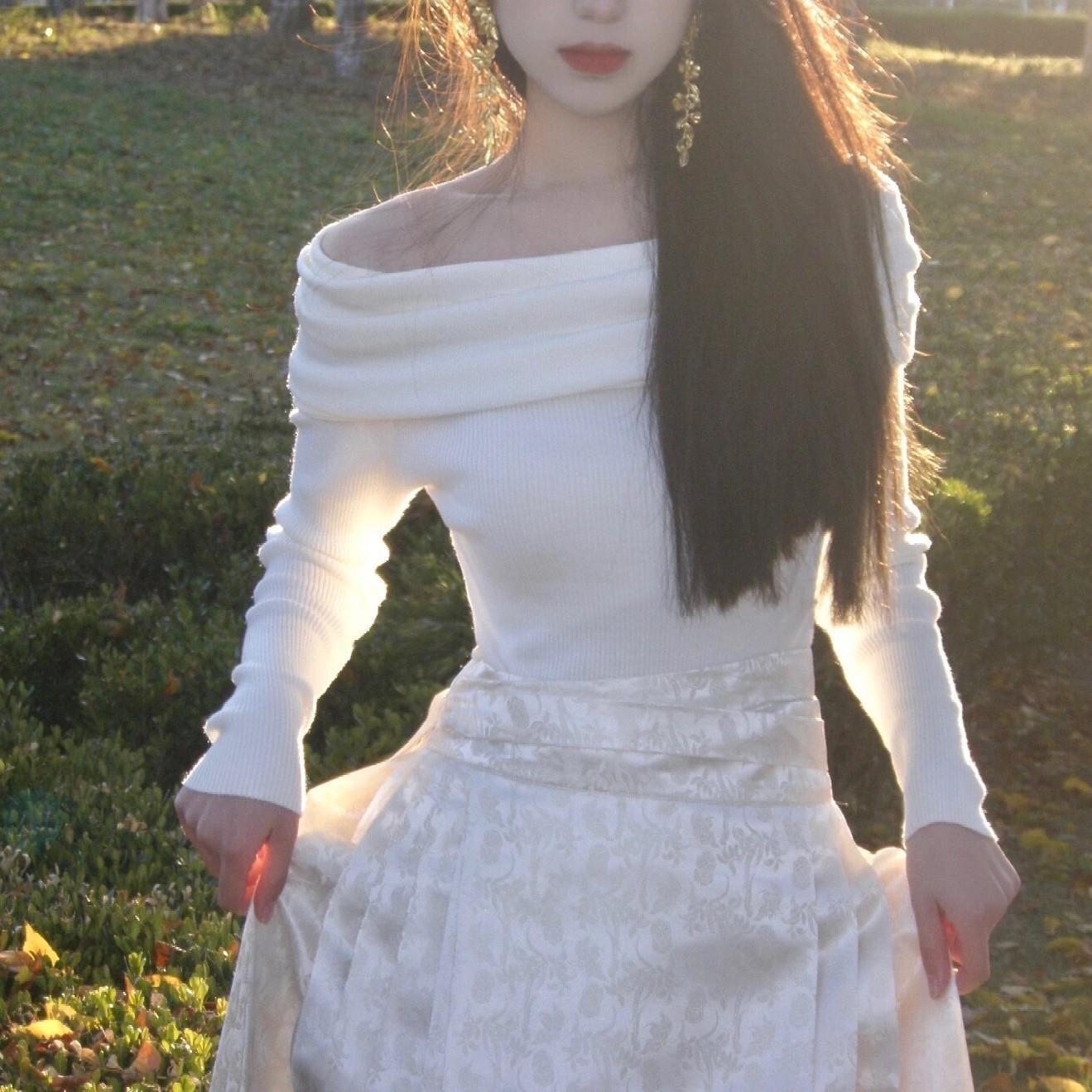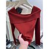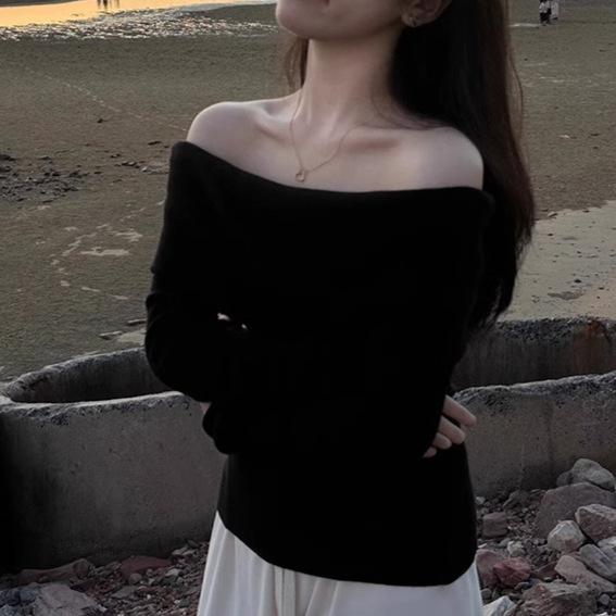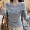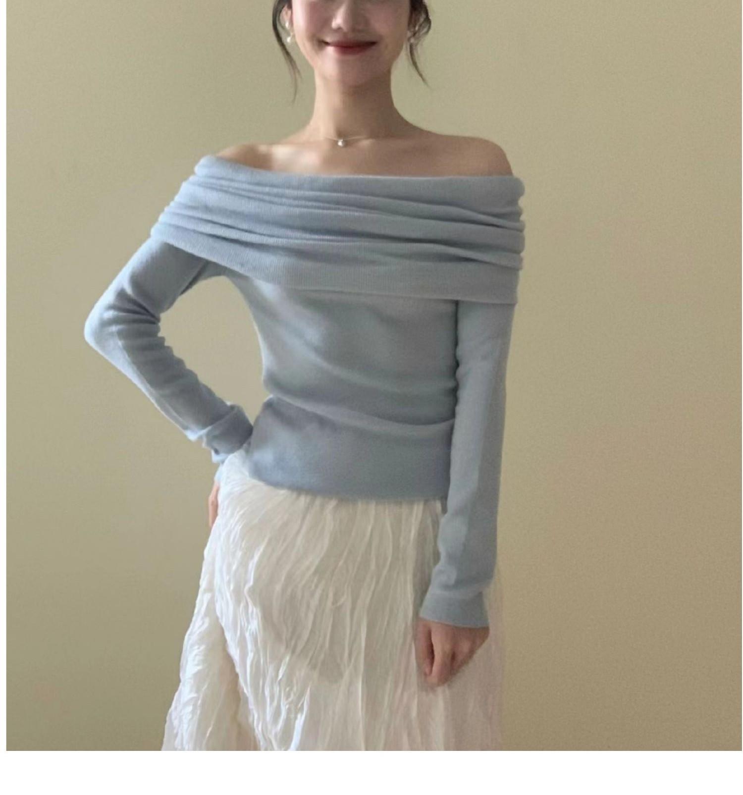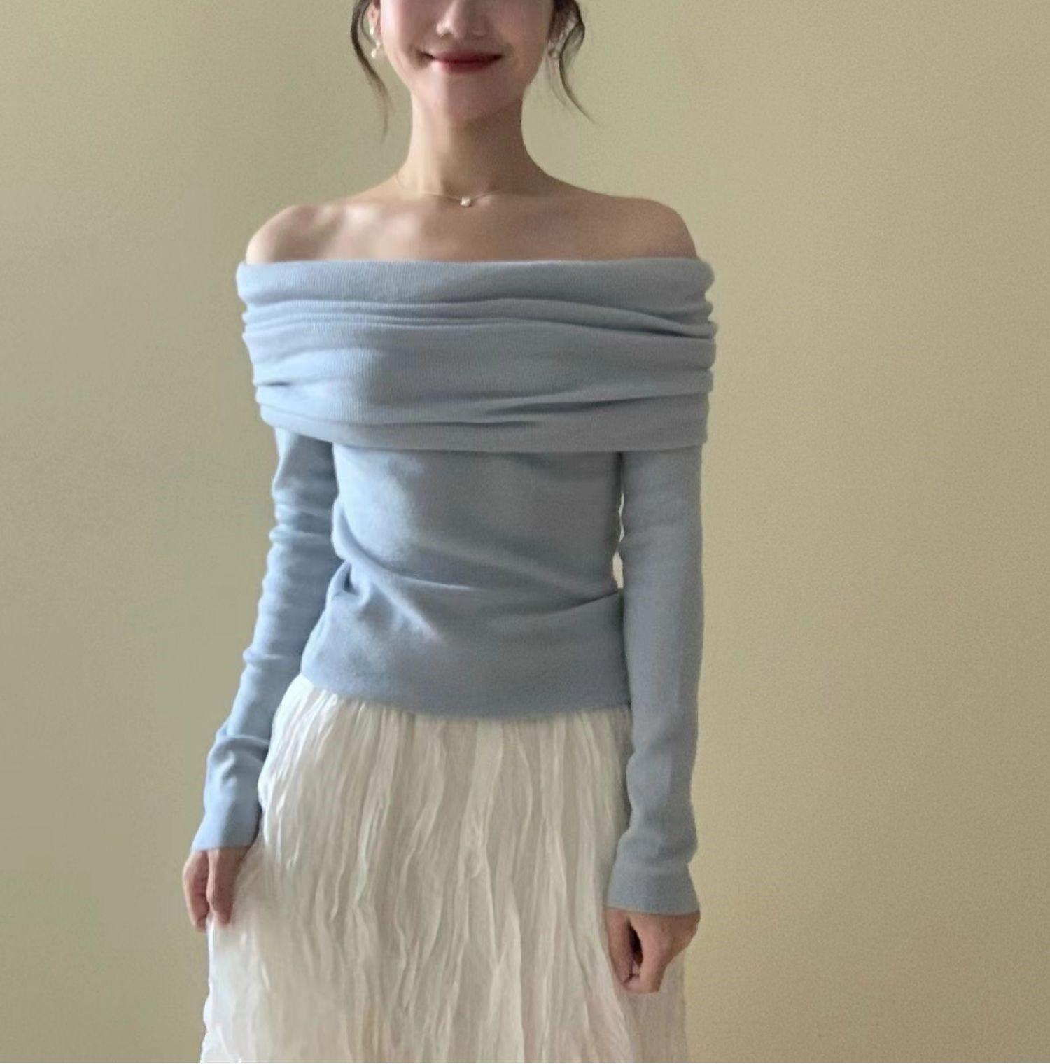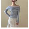Suéter de punto para mujer estilo francés con hombros descubiertos en azul fresco, primavera 2024, nueva moda informal para mujer.