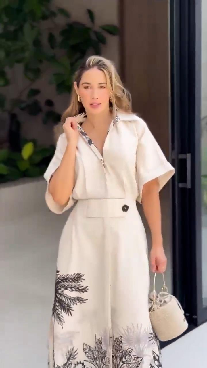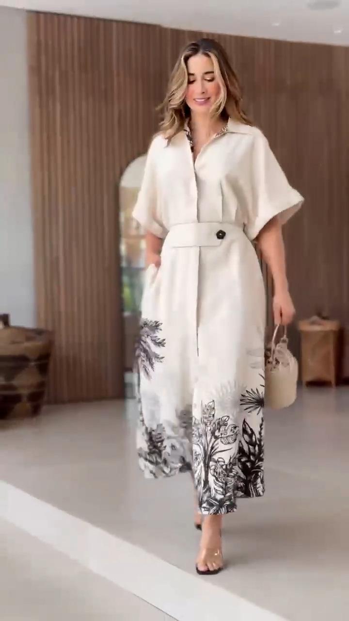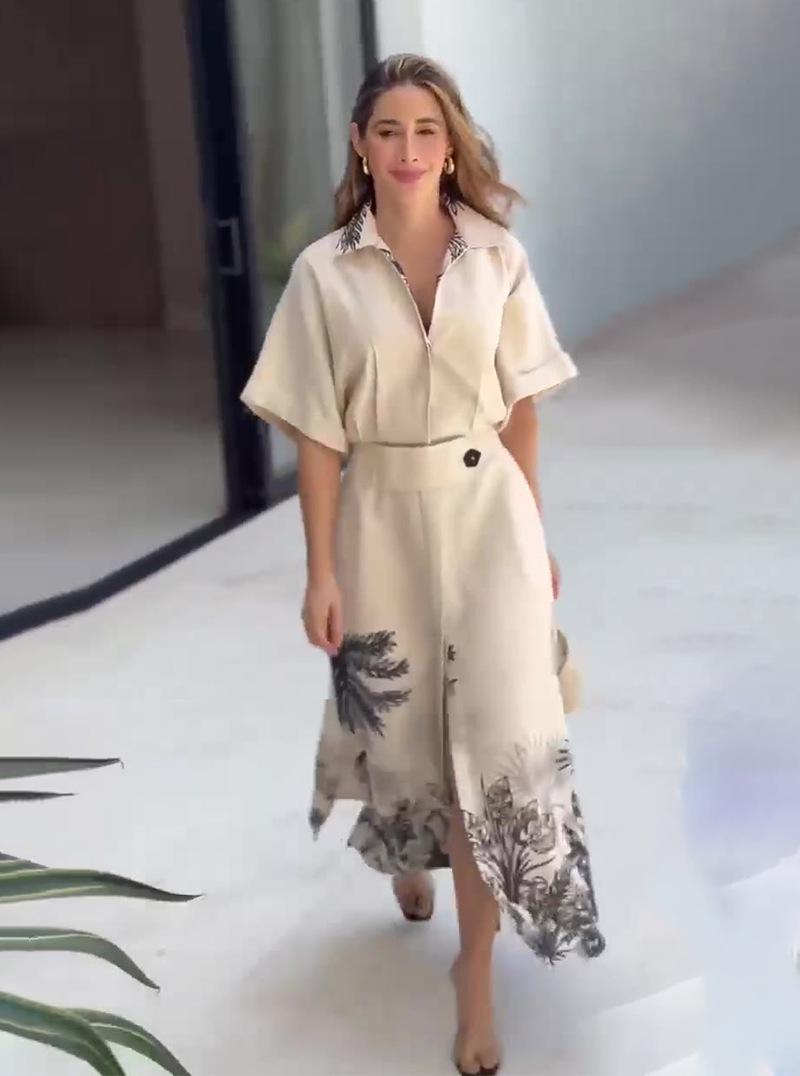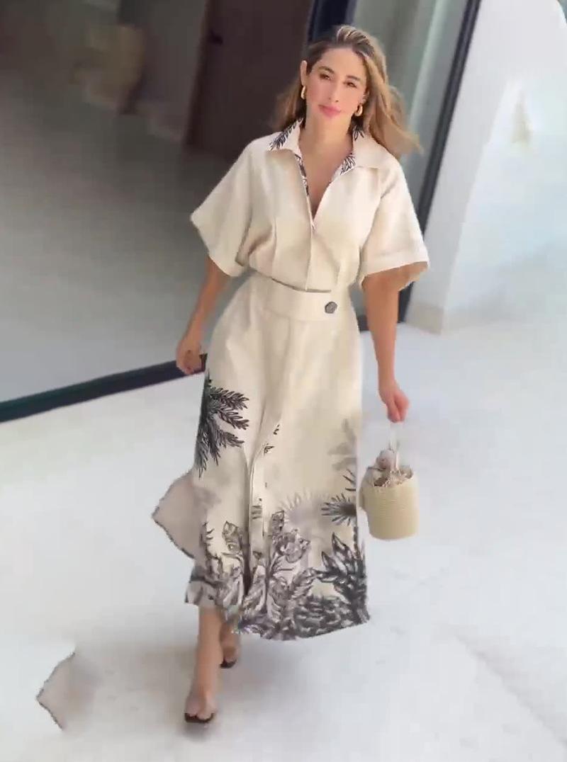 2024 Nuevo Estilo de Verano Europeo y Americano Amazon Transfronterizo Temperamento Posicionamiento Vestido de Manga Corta Estampado
