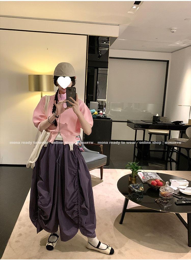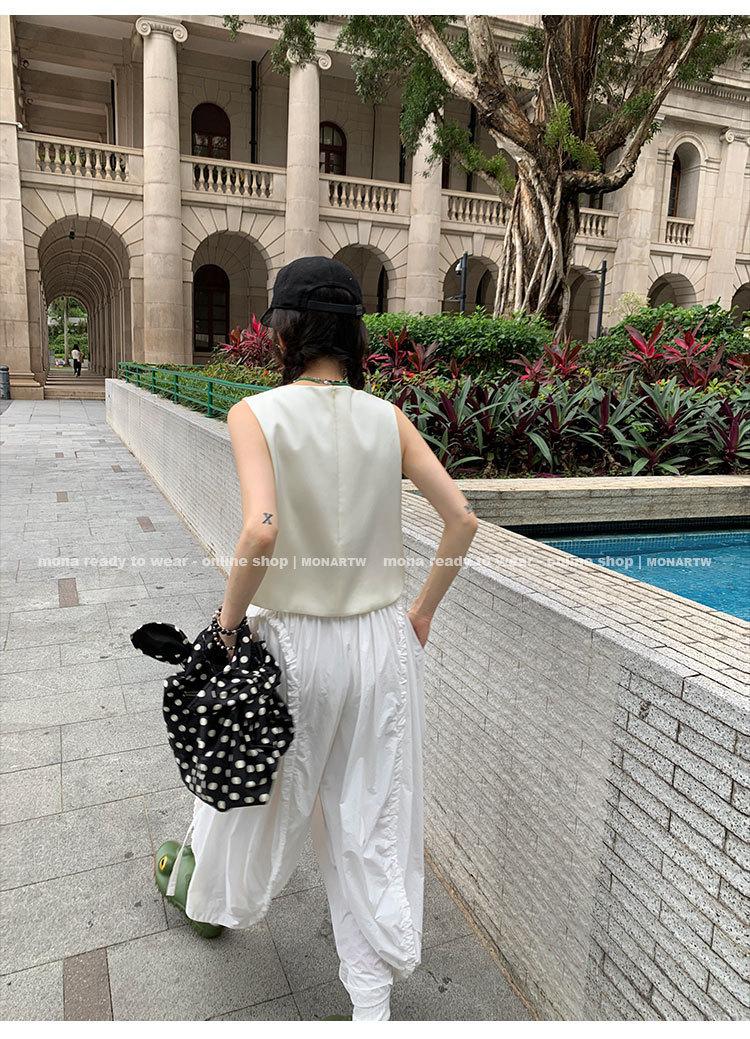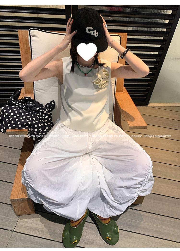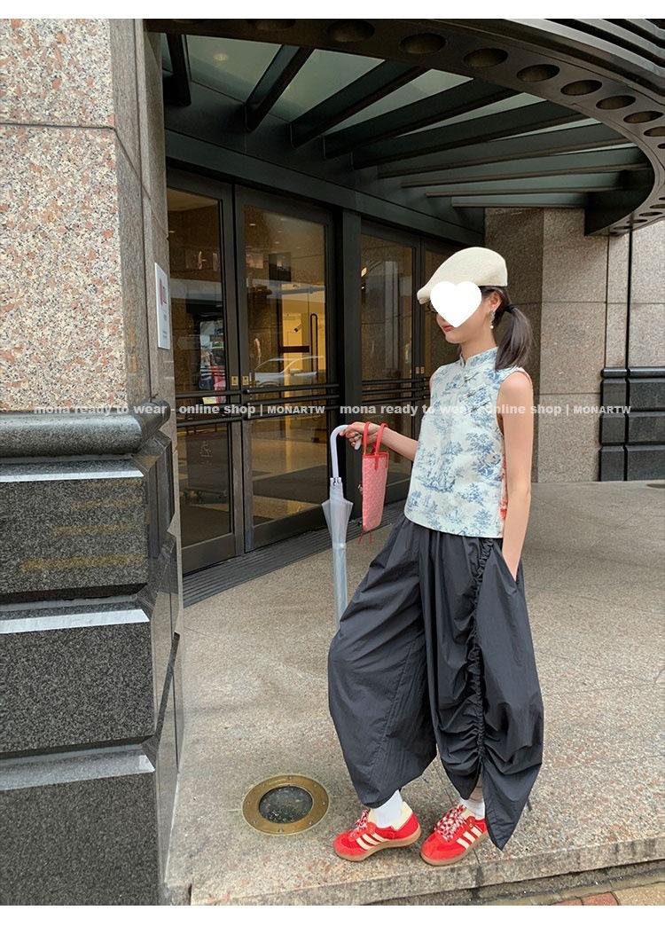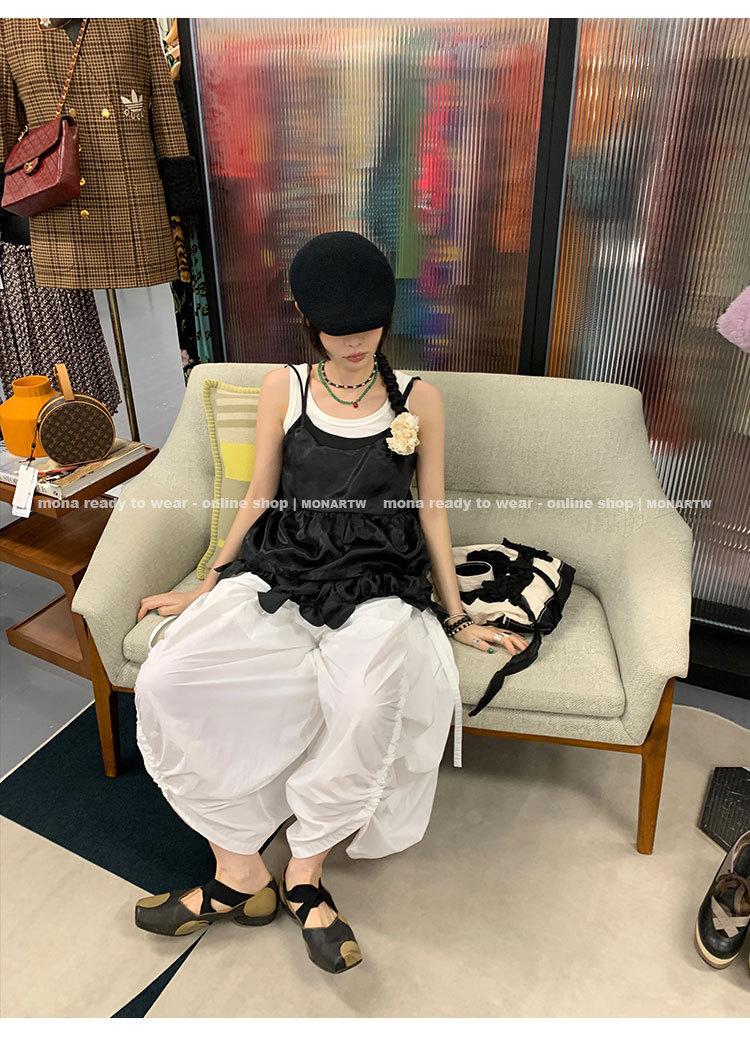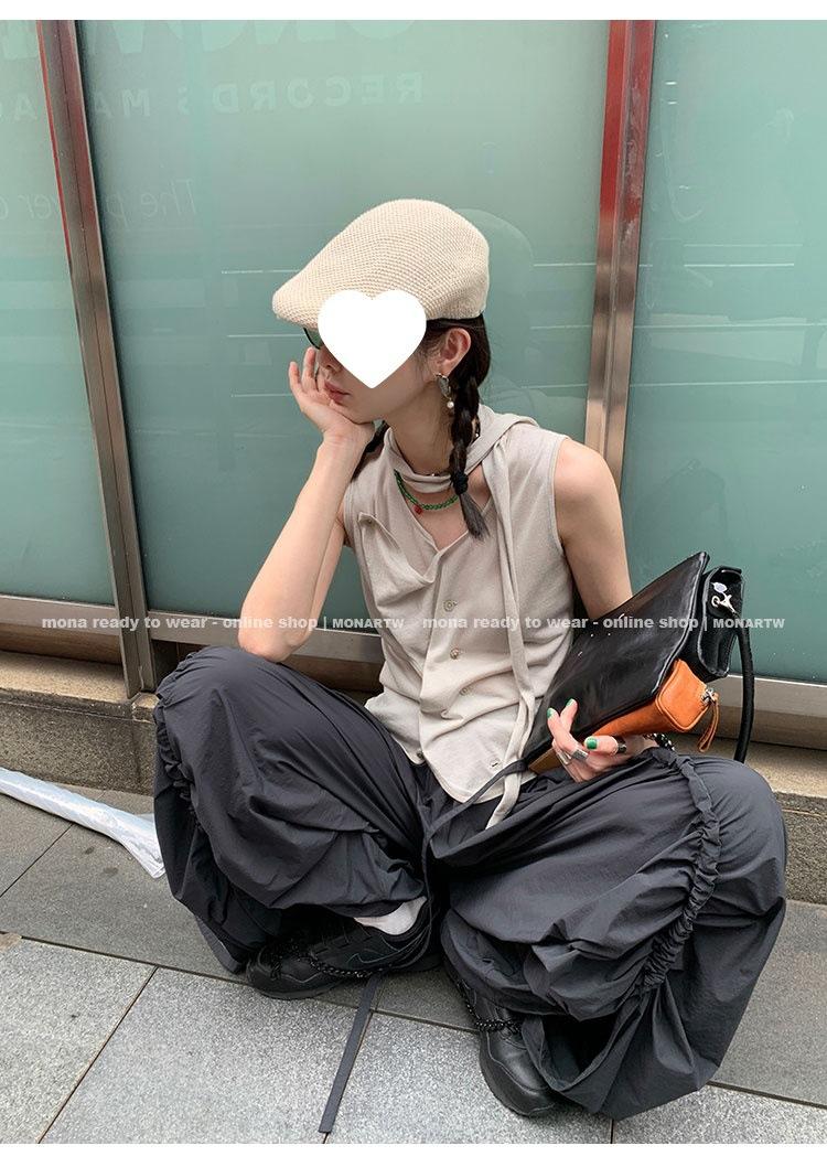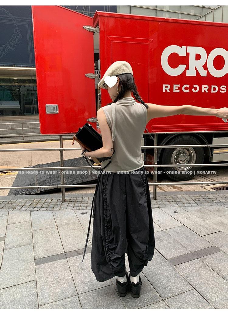 Los canales crean un acabado decorativo en las piernas, con cordones en la cintura para ajustar