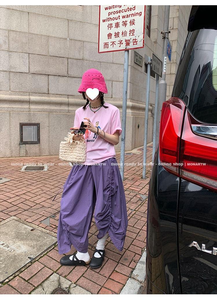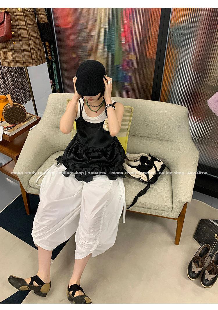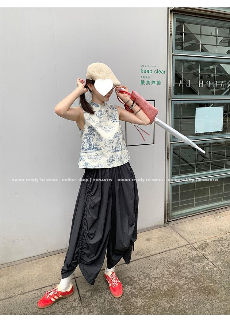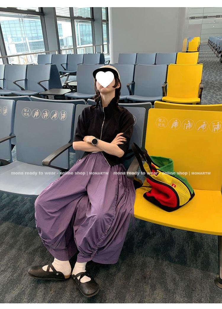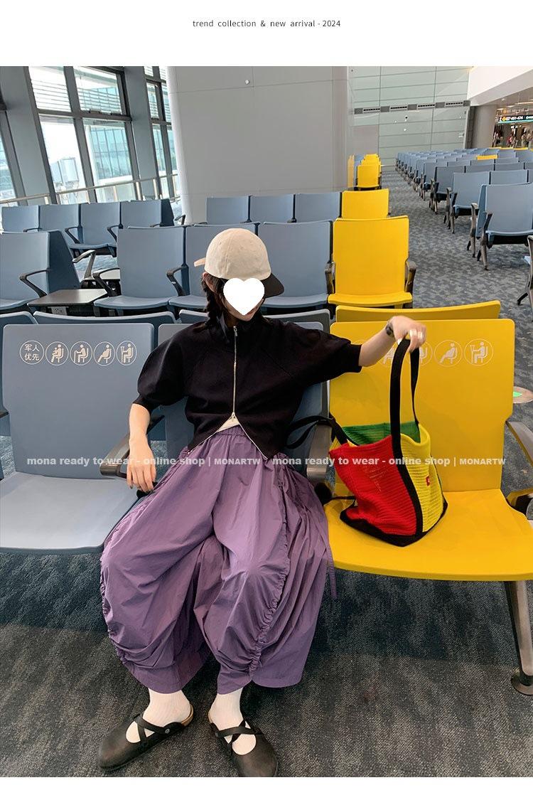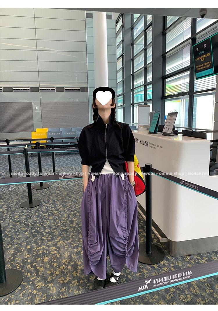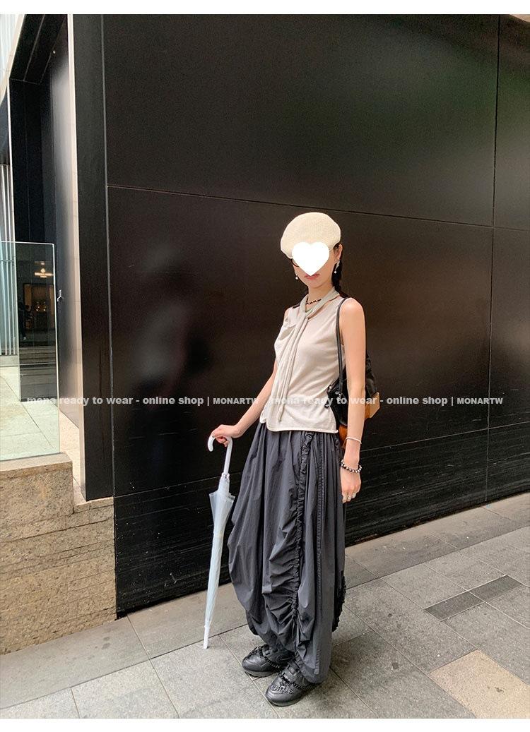 Los canales crean un acabado decorativo en las piernas, con cordones en la cintura para ajustar