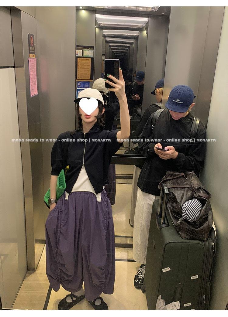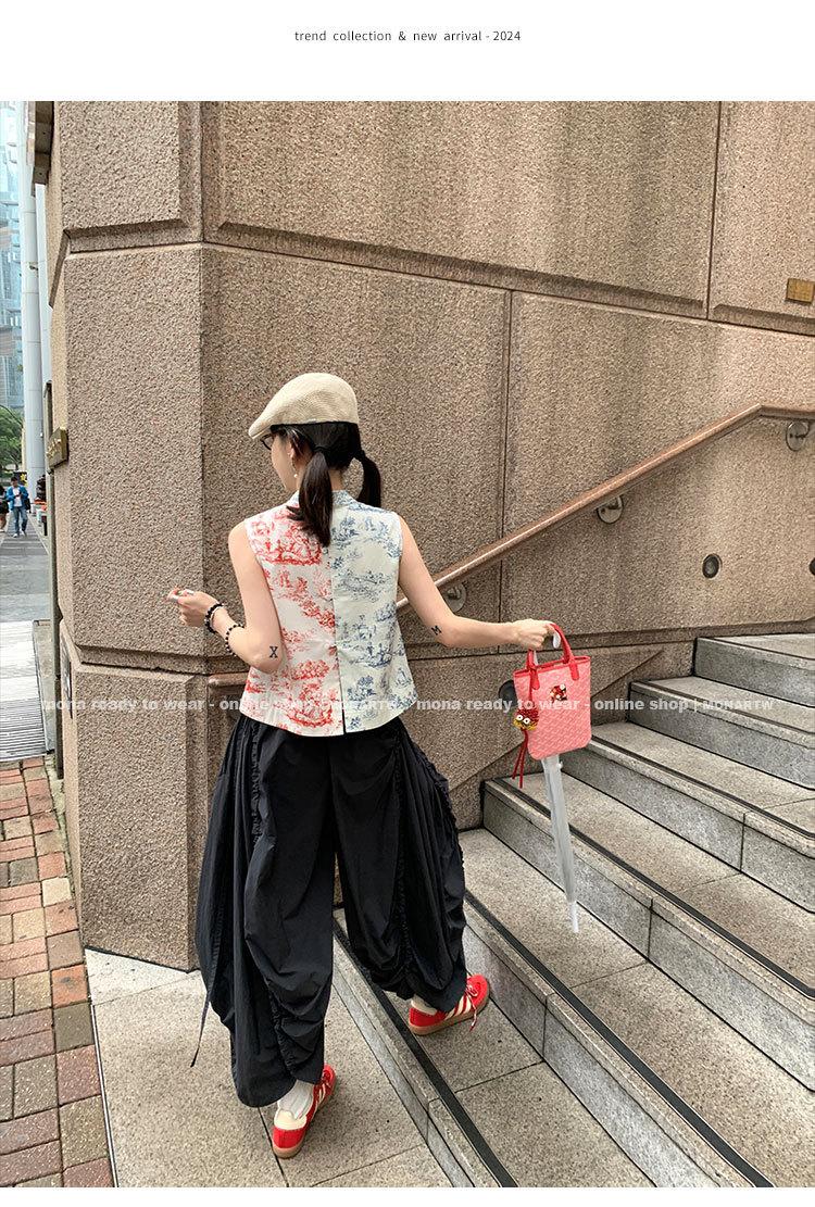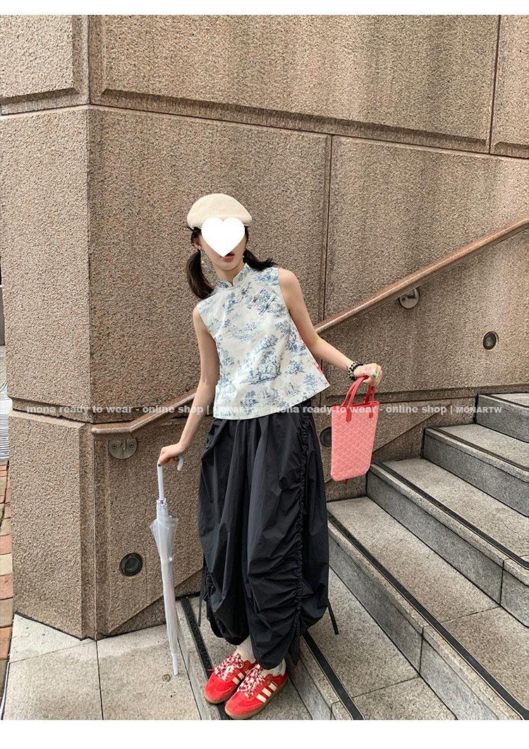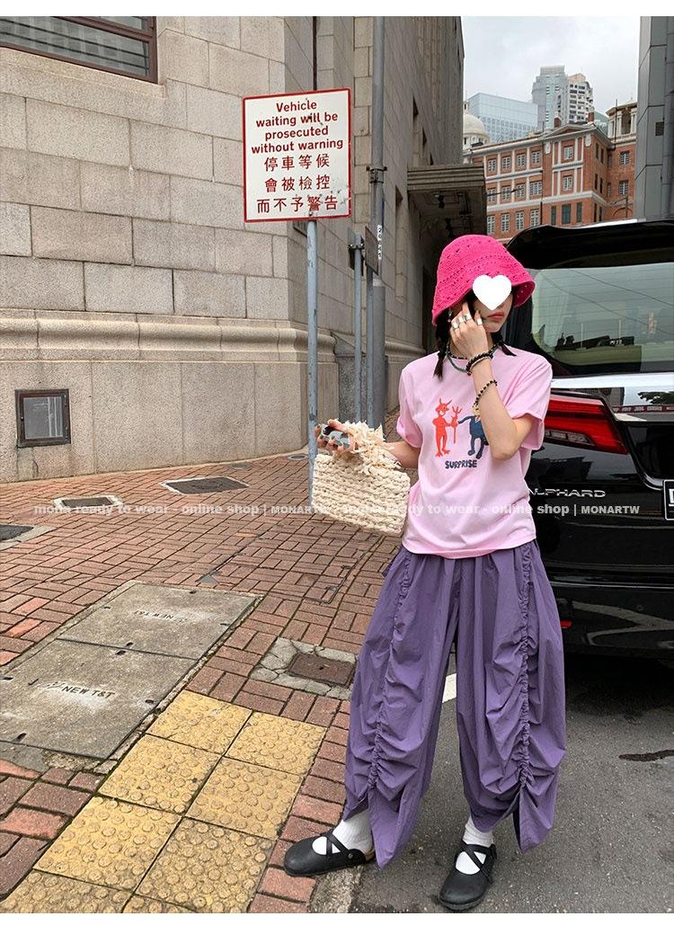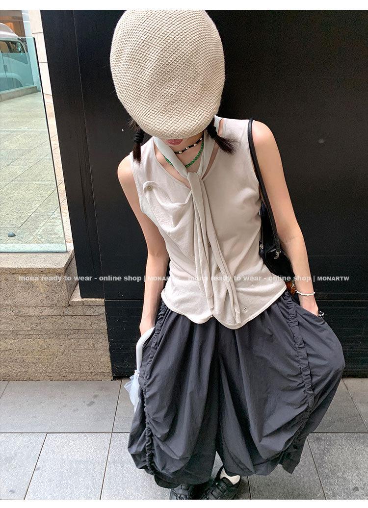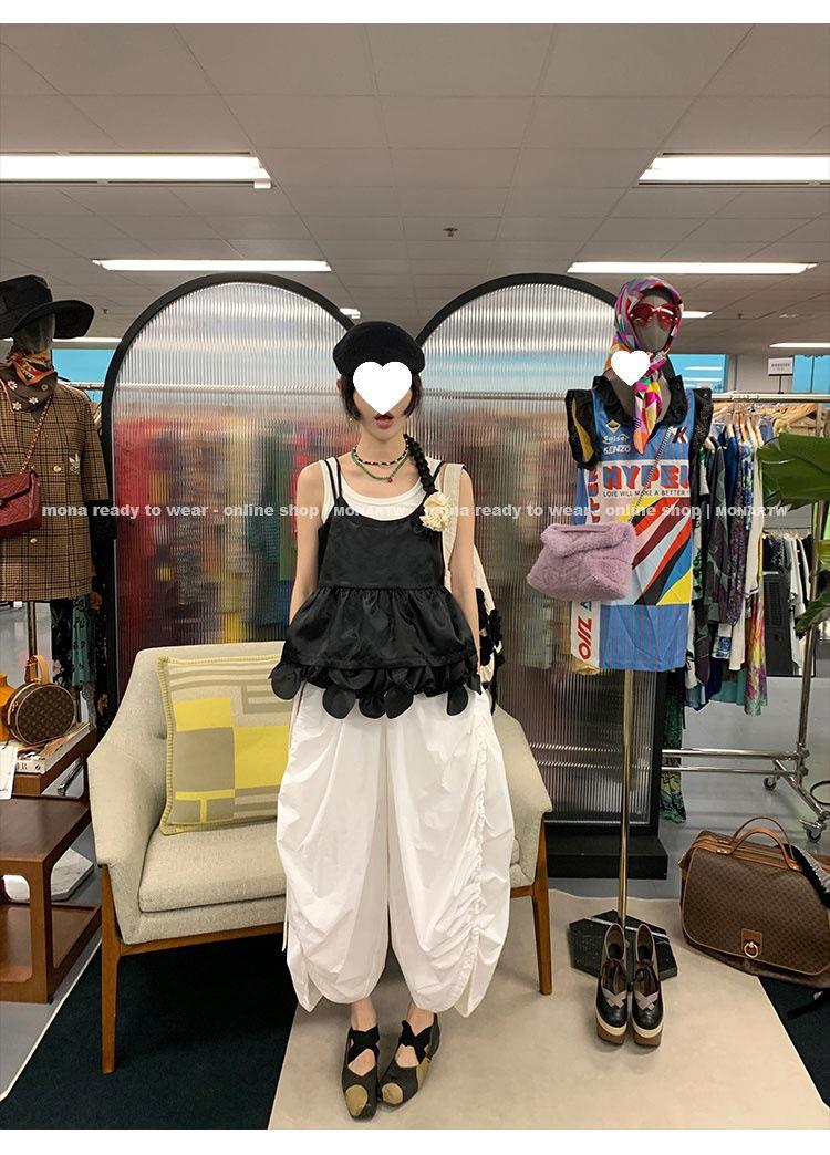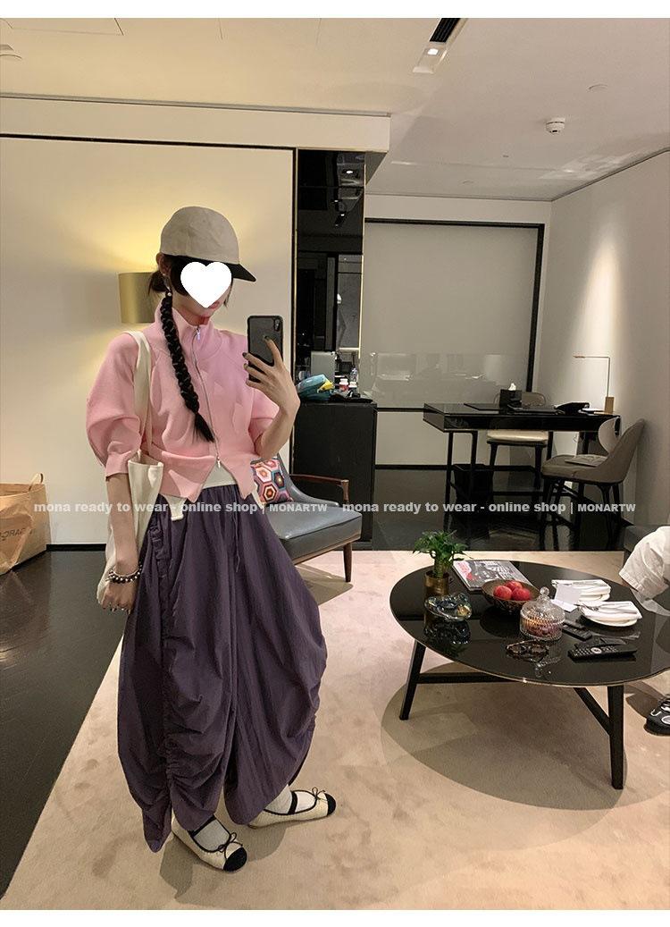 Los canales crean un acabado decorativo en las piernas, con cordones en la cintura para ajustar