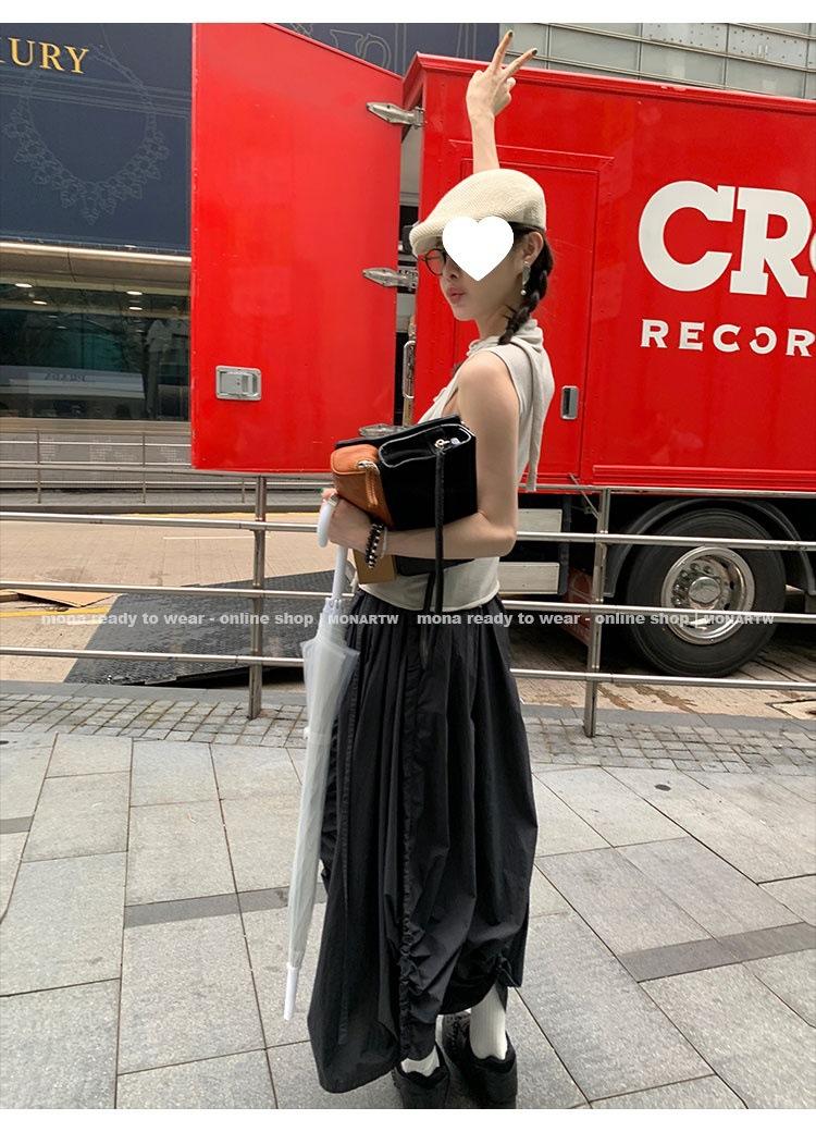 Los cordones crean un efecto decorativo en los lados, y el dobladillo se abre en forma de espiga cuando se aprietan los cordones.