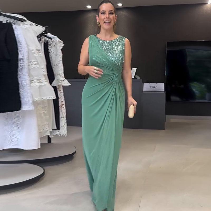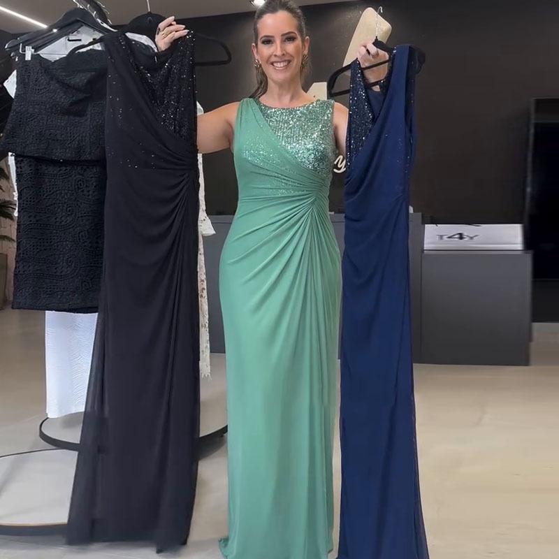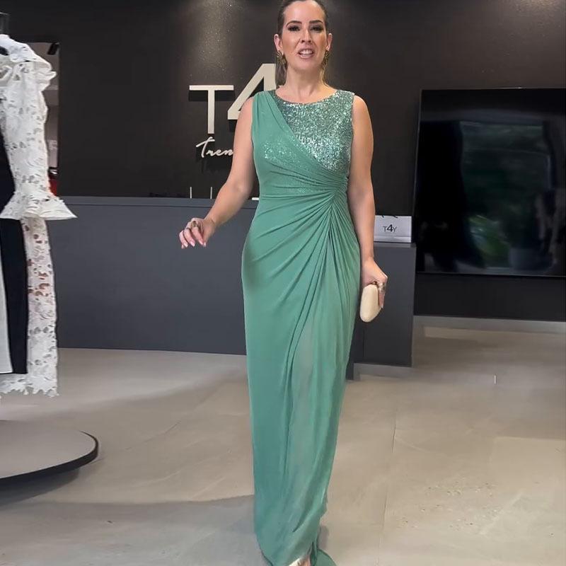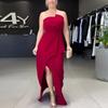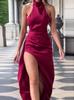 Nuevo Otoño 2024 Europeo y Americano Amazon Vestido Suave Sin Mangas Espalda Descubierta Vestido con Abertura Falda Larga